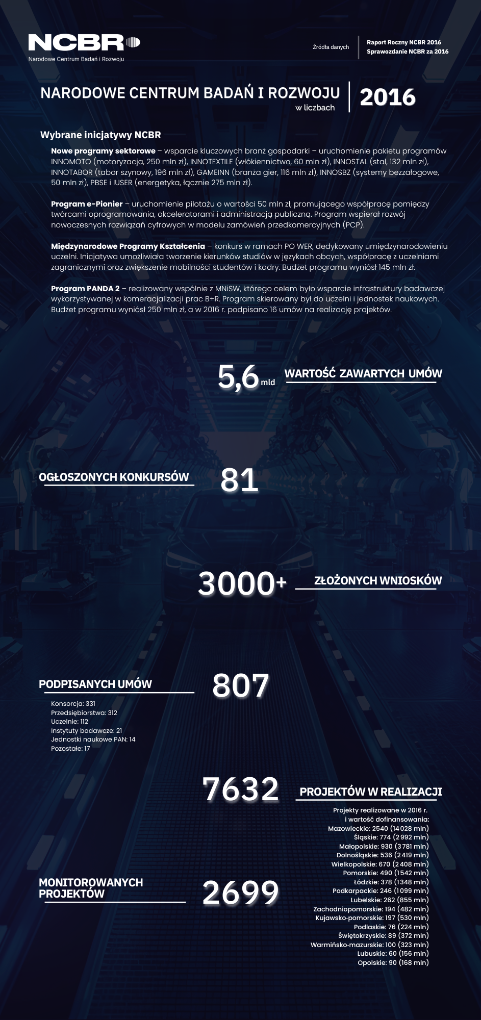 Źródła danych: Raport Roczny NCBR za 2016, Sprawozdanie NCBR za 2016 (www.gov.pl/web/ncbr)