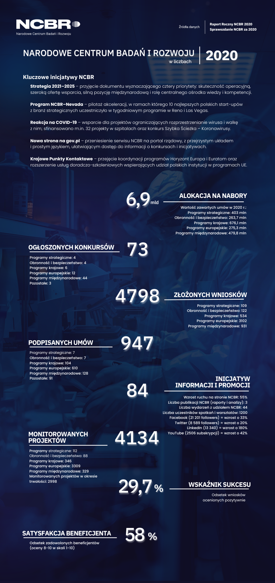 Źródła danych: Raport Roczny NCBR za 2020, Sprawozdanie NCBR za 2020 (www.gov.pl/web/ncbr)