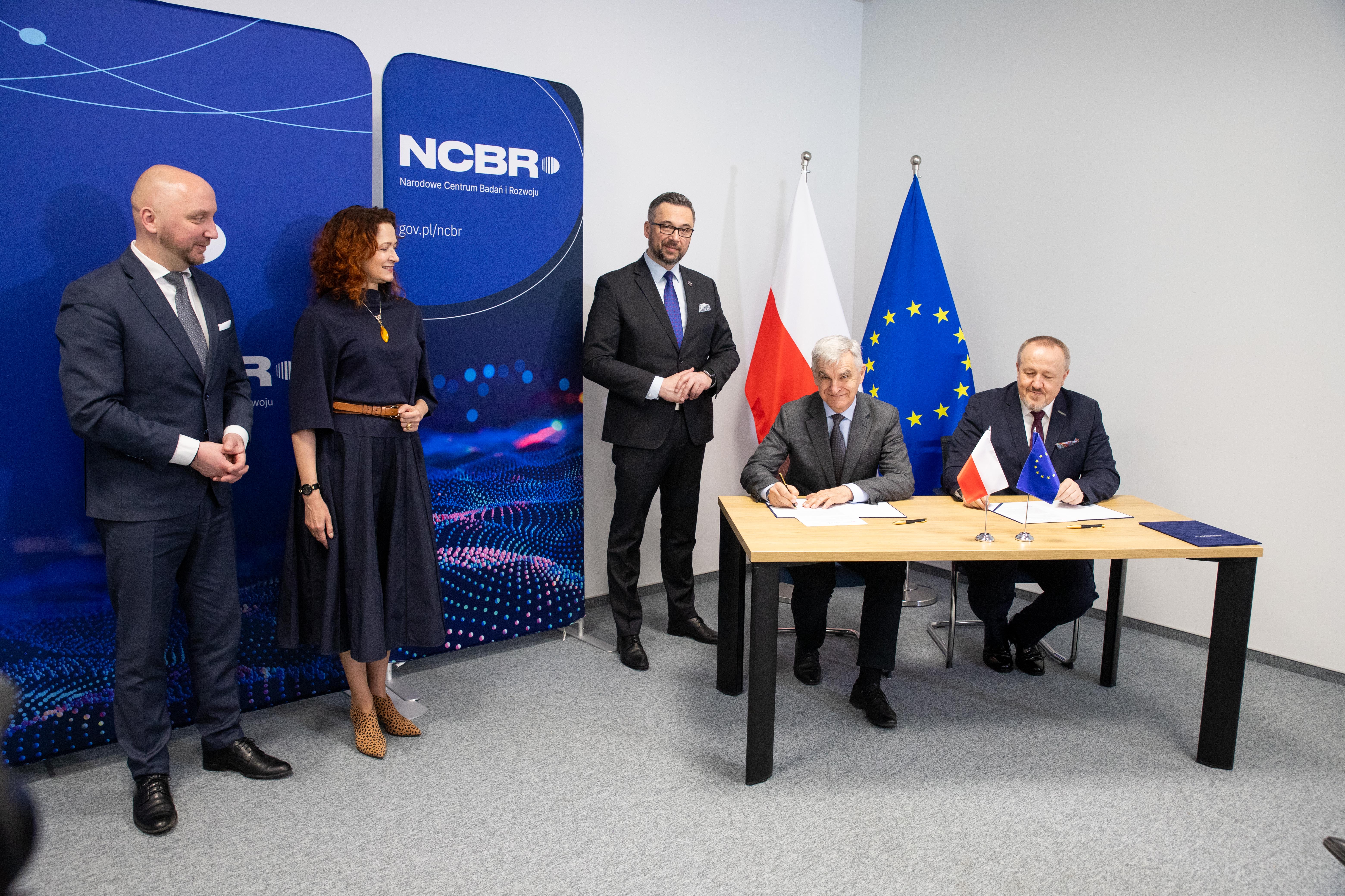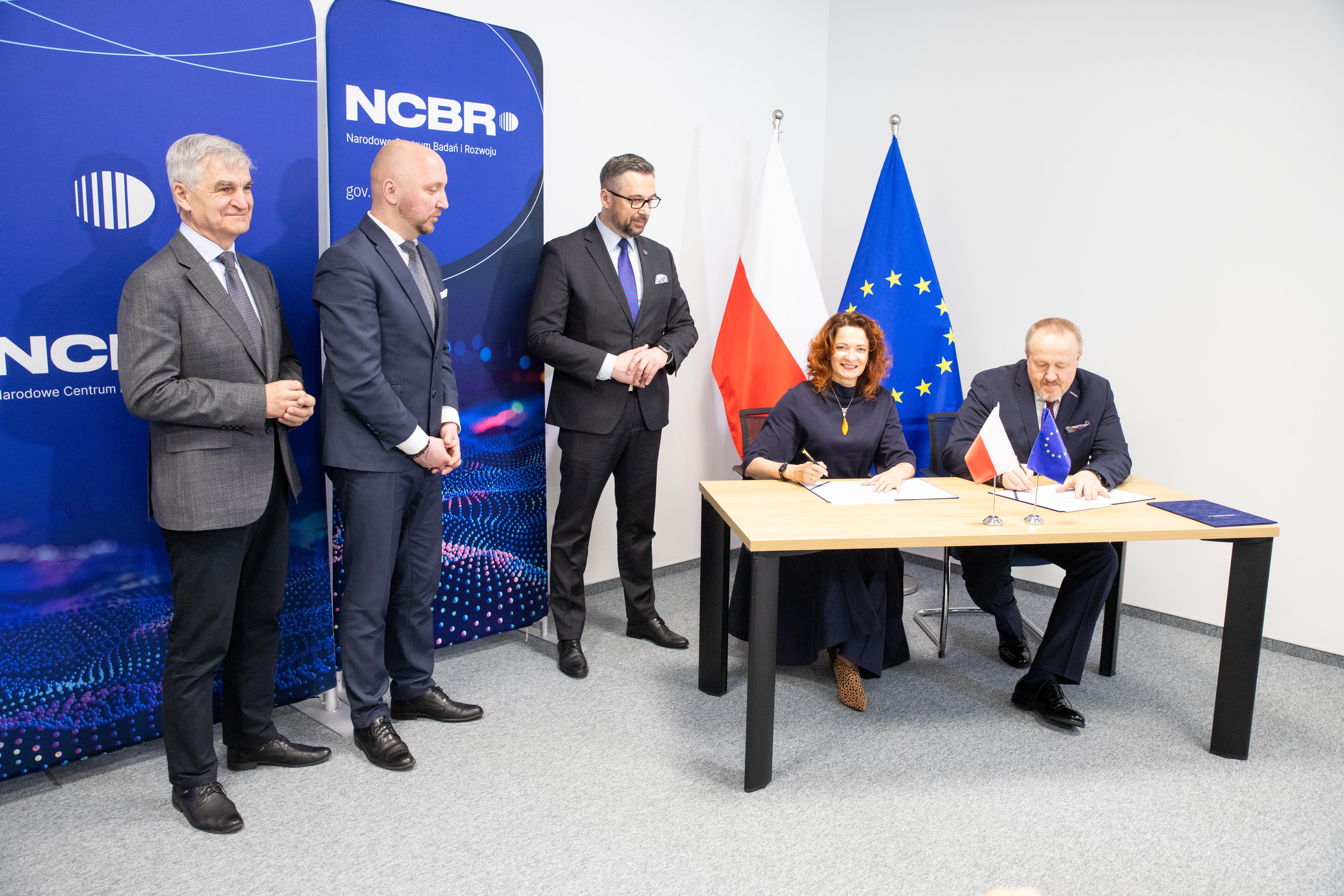 W Warszawie, w świetle kamer, odbyła się uroczystość symbolicznego podpisania umów o dofinansowanie dwóch pierwszych projektów. Obowiązywanie umów potwierdził w ten sposób prof. dr hab. inż. Jerzy Małachowski, dyrektor NCBR, a ze strony konsorcjów podpisy złożyli: prof. dr hab. inż. Marek Pawełczyk, rektor Politechniki Śląskiej (projekt „Plan oraz pilotaż działań wspierających rozwój kompetencji i kadr dla sektora jądrowego w Polsce”) oraz marszałek Województwa Podlaskiego Łukasz Prokorym, członek zarządu Województwa Podlaskiego Bogdan Dyjuk i rektor Politechniki Białostockiej dr hab. inż. Marta Kosior-Kazberuk, prof. PB (projekt „Ramy i kierunki implementacji koncepcji inteligentnej wsi «smart village» w krajowej i regionalnych politykach rozwojowych”).