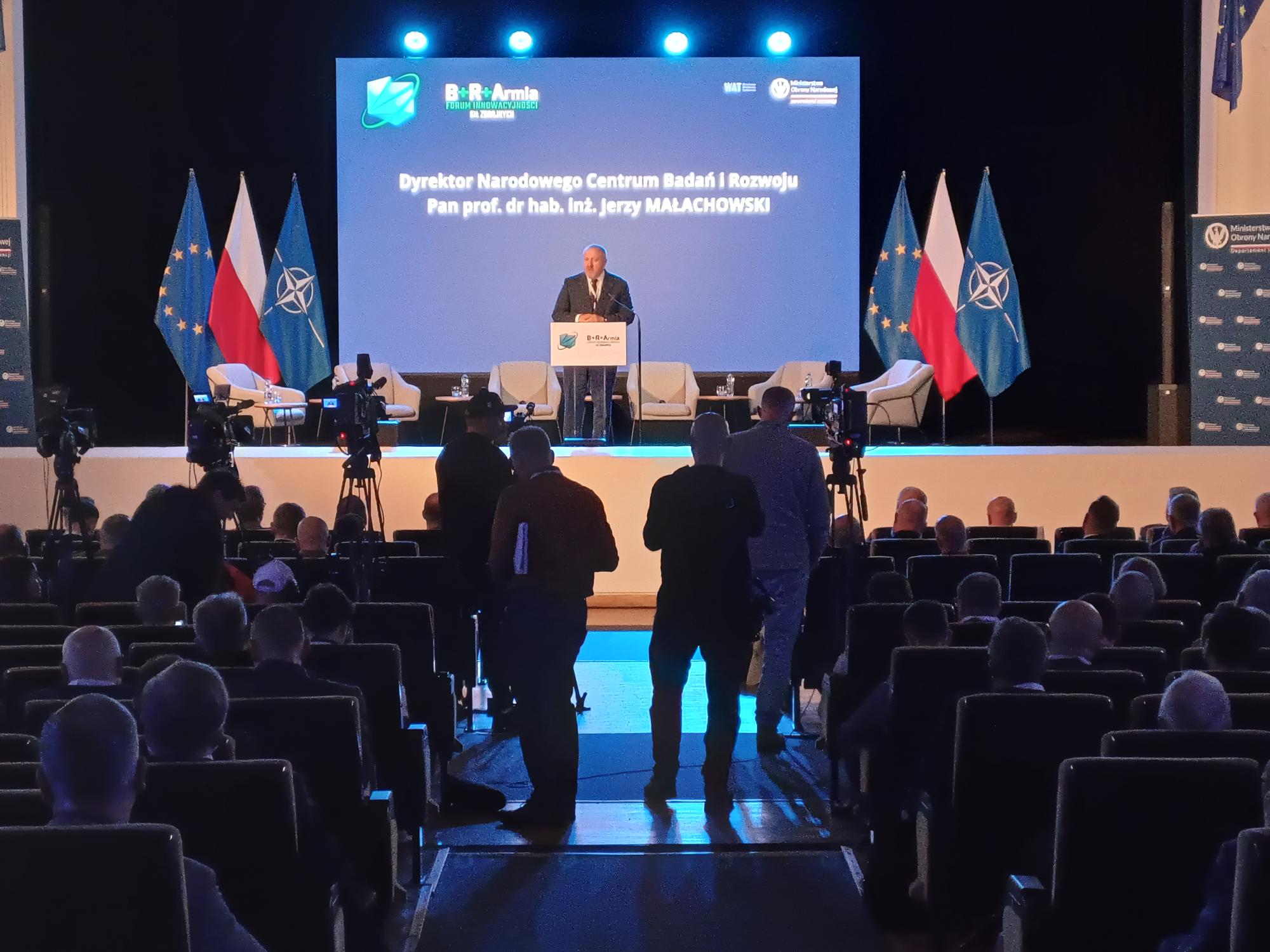 Jak sprawić, żeby rola rodzimych technologii służących zapewnianiu bezpieczeństwa i obronności rosła znacząco i w szybkim tempie? - debatowali uczestnicy 5. Forum Innowacyjności Sił Zbrojnych B+R+Armia, które odbyło się we wtorek w Wojskowej Akademii Technicznej. W zorganizowanym przez uczelnię we współpracy z Ministerstwem Obrony Narodowej wydarzeniu wziął udział dyrektor Narodowego Centrum Badań i Rozwoju prof. dr hab. inż. Jerzy Małachowski.