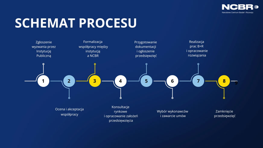 Instytucje publiczne, zgłosiły do NCBR konkretną, niezaspokojoną potrzebę, tzw. wyzwanie badawcze. NCBR we współpracy z instytucją przekłada to wyzwanie na przedsięwzięcie badawczo-rozwojowe i zleca jego realizację wykonawcom z rynku - firmom, instytutom badawczym, uczelniom, konsorcjom. W efekcie powstają innowacyjne rozwiązania „szyte na miarę”, które można przetestować i w dalszym kroku wdrożyć na szerszą skalę.