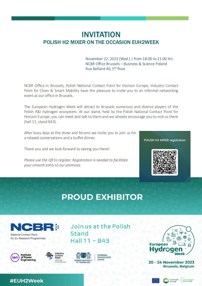 Wydarzenie odbyło się w brukselskiej siedzibie NCBR, przy okazji targów European Hydrogen Week (EH2W), jednej z największych europejskich imprez wodorowych – uczestnikami byli polscy i międzynarodowi interesariusze z obszaru wodoru, nie zabrakło też przedstawicieli partnerstwa Clean Hydrogen Partnership finansującego badawcze projekty wodorowe czy polskich władz samorządowych – co jest szczególnie ważne w kontekście starań i ambicji niektórych województw, by stać się dojrzałymi dolinami wodorowymi.