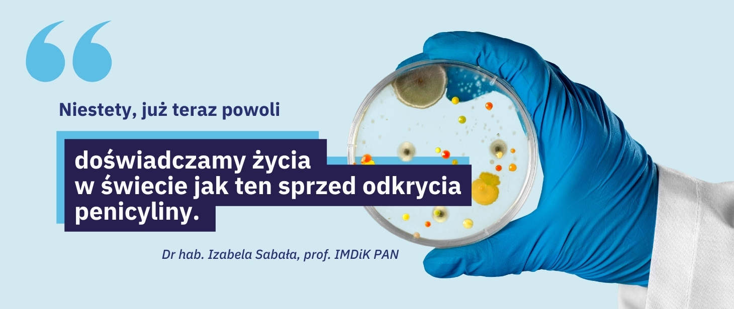 – Niestety, już teraz powoli doświadczamy życia w świecie jak ten sprzed odkrycia penicyliny. Coraz więcej groźnych bakterii nie reaguje na dostępne antybiotyki – zwraca uwagę prof. Sabała. – W takich przypadkach lekarze nie mają czym leczyć pacjentów. Tak właśnie było przed wynalezieniem penicyliny.
