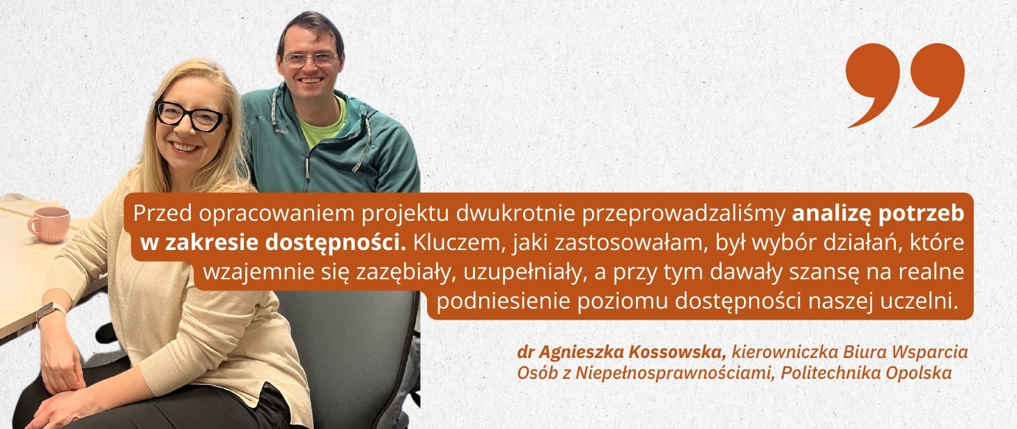 Jak podkreśla, te działania zostały docenione przez studentów oraz kadrę uczelni. I to te głosy stały motywacją do dalszych koniecznych – ale też kosztownych – zmian. Kiedy więc NCBR ogłosiło nabór „Uczelnie coraz bardziej dostępne”, zespół projektowy sformował się bardzo szybko.