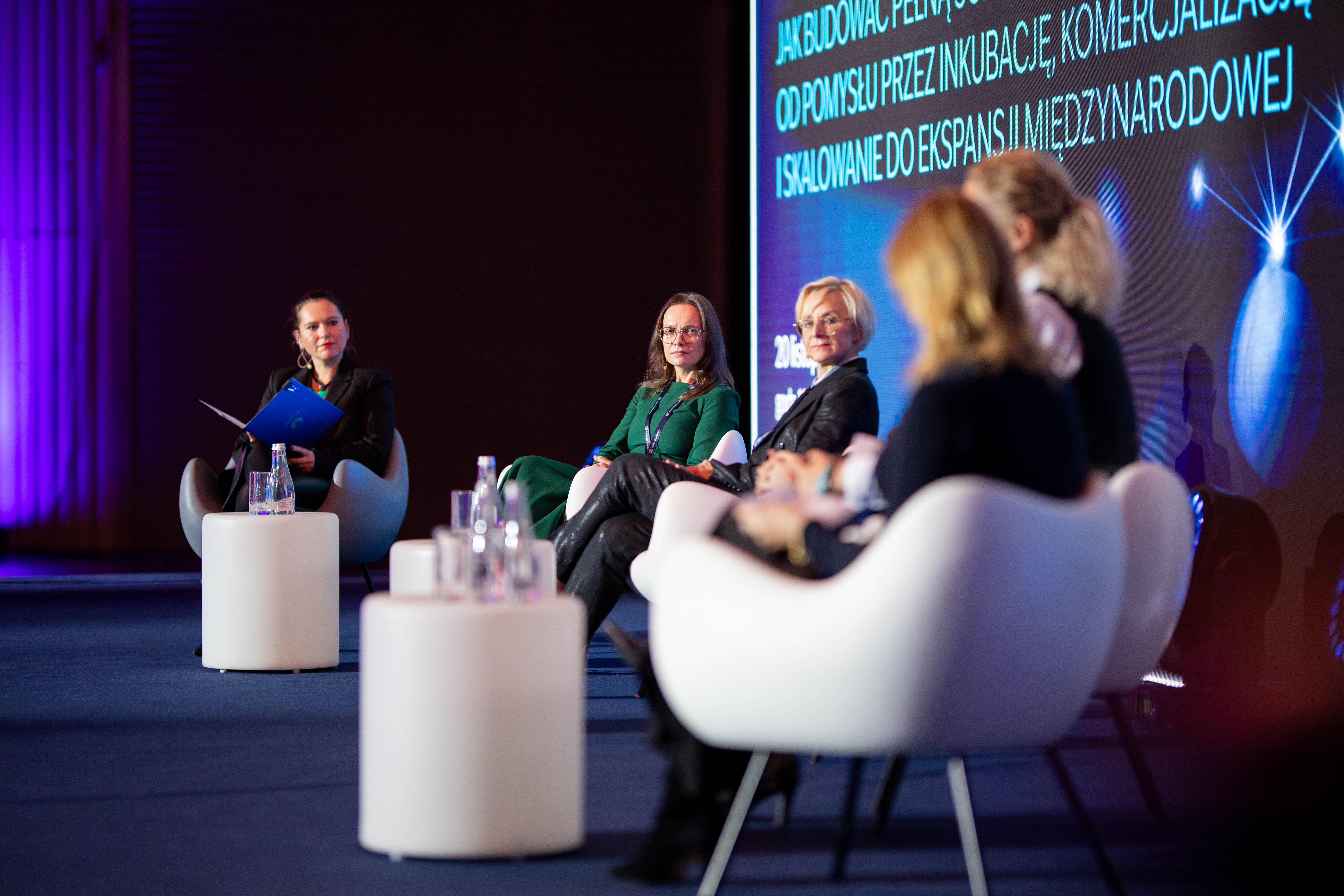 Ekspertki z sektora publicznego, prywatnego oraz pozarządowego rozmawiały o tym, jak skutecznie przejść drogę od innowacyjnego pomysłu po produktu/usługi obecnej na rynkach międzynarodowych. Dyskusja, moderowana przez Joannę Zdanowską, zastępcę dyrektora w Departamencie Strategii i Odporności Klimatycznej MKiŚ, dotyczyła synergii między nauką, biznesem a instytucjami publicznymi oraz narzędzi i programów wspierających kolejne etapy rozwoju innowacji: od identyfikacji i inkubacji, przez wsparcie komercjalizacji, aż po skalowanie i internacjonalizację. Panel przybliżył też konkretne mechanizmy wsparcia i pokazał przykłady sukcesów. Była również mowa o tym, jak budować trwałe partnerstwa między sektorem nauki i gospodarki.