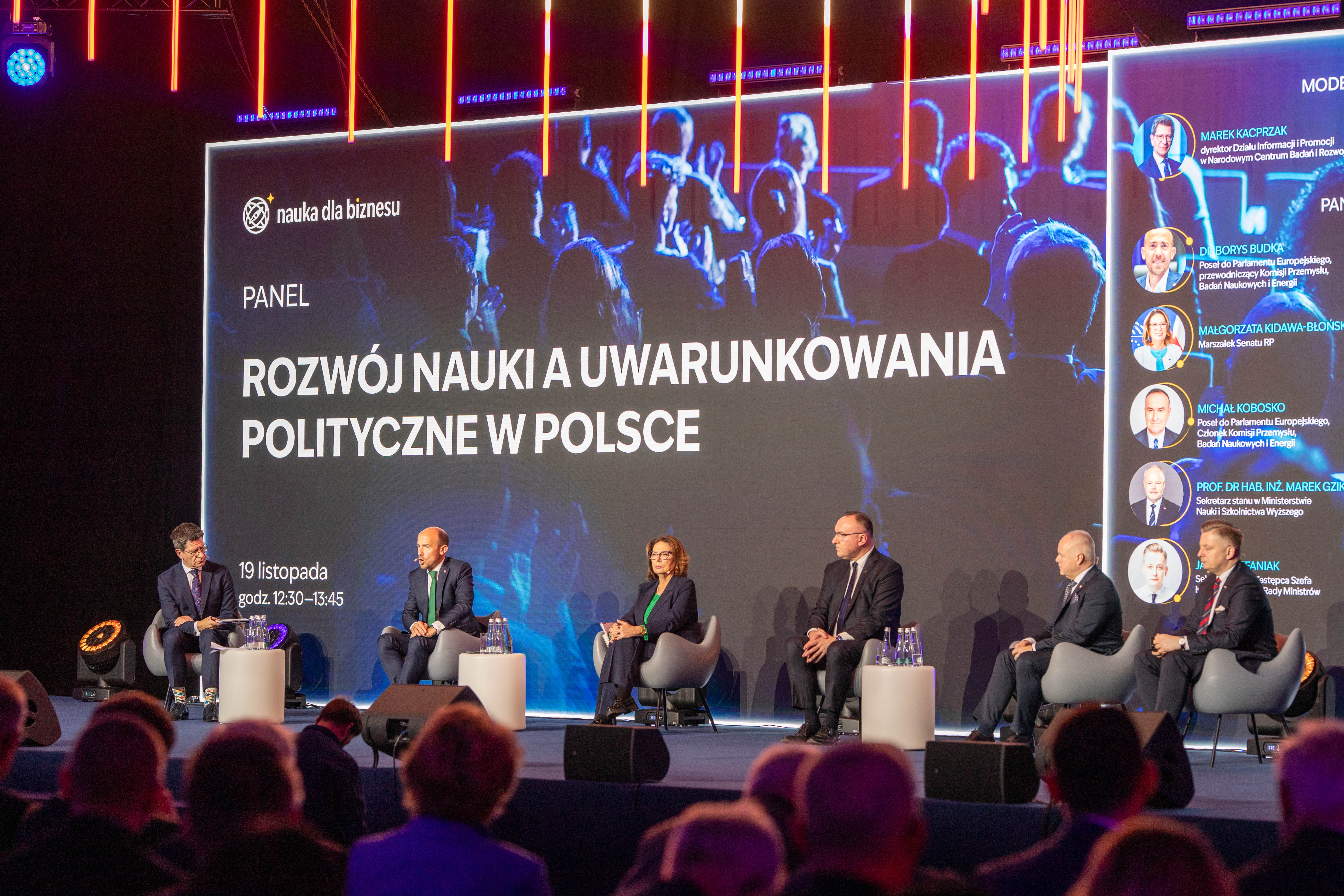 Słowa premiera oraz ministra nauki i szkolnictwa wyższego były często przywoływane podczas panelu otwarcia zatytułowanego „Rozwój nauki a uwarunkowania polityczne w Polsce”, który poprowadził Marek Kacprzak, dyrektor Działu Informacji i Promocji w NCBR. Przedstawiciele krajowych i europejskich instytucji odpowiedzialnych za politykę naukową i innowacji skupili się na stabilności regulacyjnej, suwerenności technologicznej oraz warunkach skutecznej internacjonalizacji polskich wynalazków.