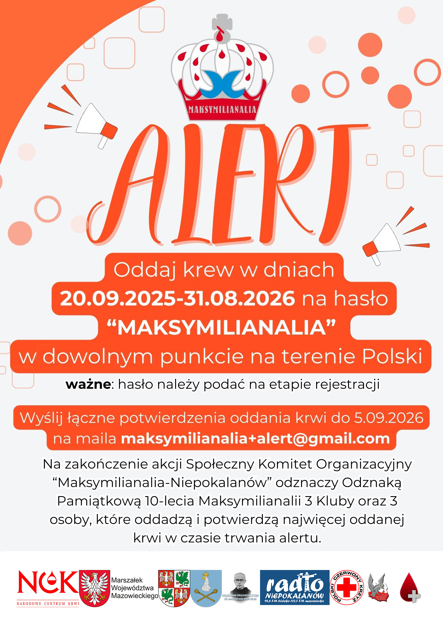 Społeczny Komitet Organizacyjny "Maksymilianalia-Niepokalanów" zaprasza do udziału w akcji na hasło "Maksymilianalia".