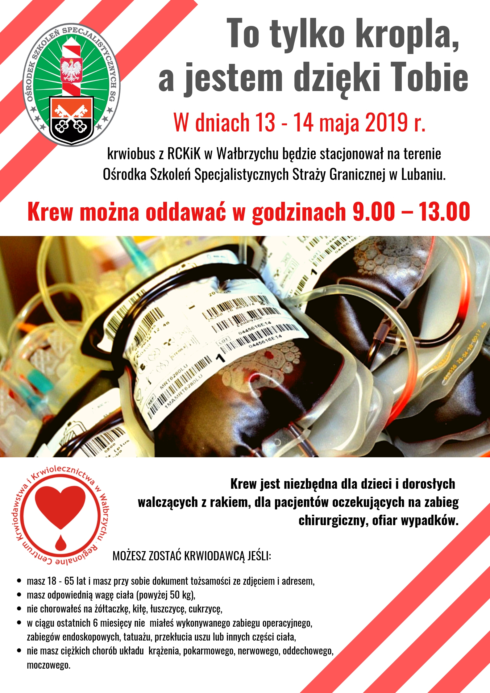 - 13 i 14 maja 2019 r. Ośrodek Szkoleń Specjalistycznych Straży Granicznej w Lubaniu w godz. 9:00-13:00.