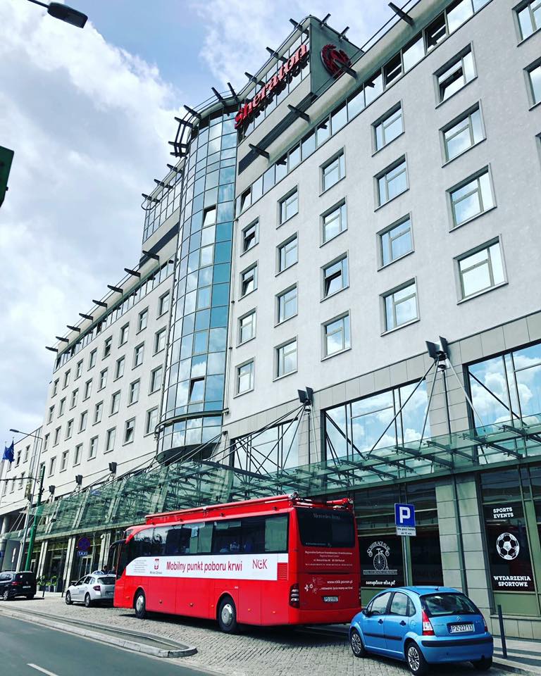 Krwiobus RCKiK w Poznaniu zaparkował tym razem w samym centrum Poznania na parkingu przed Hotelem Sheraton. Do oddania krwi zgłosiły się 42 osoby – pracownicy Hotelu i nie tylko!