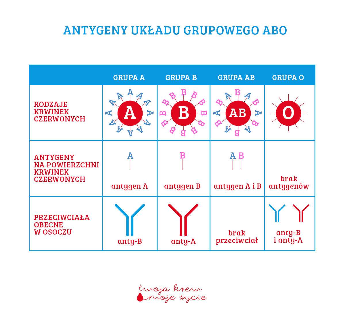 Na powierzchni czerwonych krwinek, występują pewne zestawy antygenów, czyli cząsteczek powodujących reakcję układu odpornościowego. Cząsteczki te maja przeważnie budowę białkową, a niektóre z nich są silnymi antygenami, tzn. wprowadzone do krwi osoby, która ich nie ma, powodują powstanie skierowanych przeciwko nim przeciwciał.