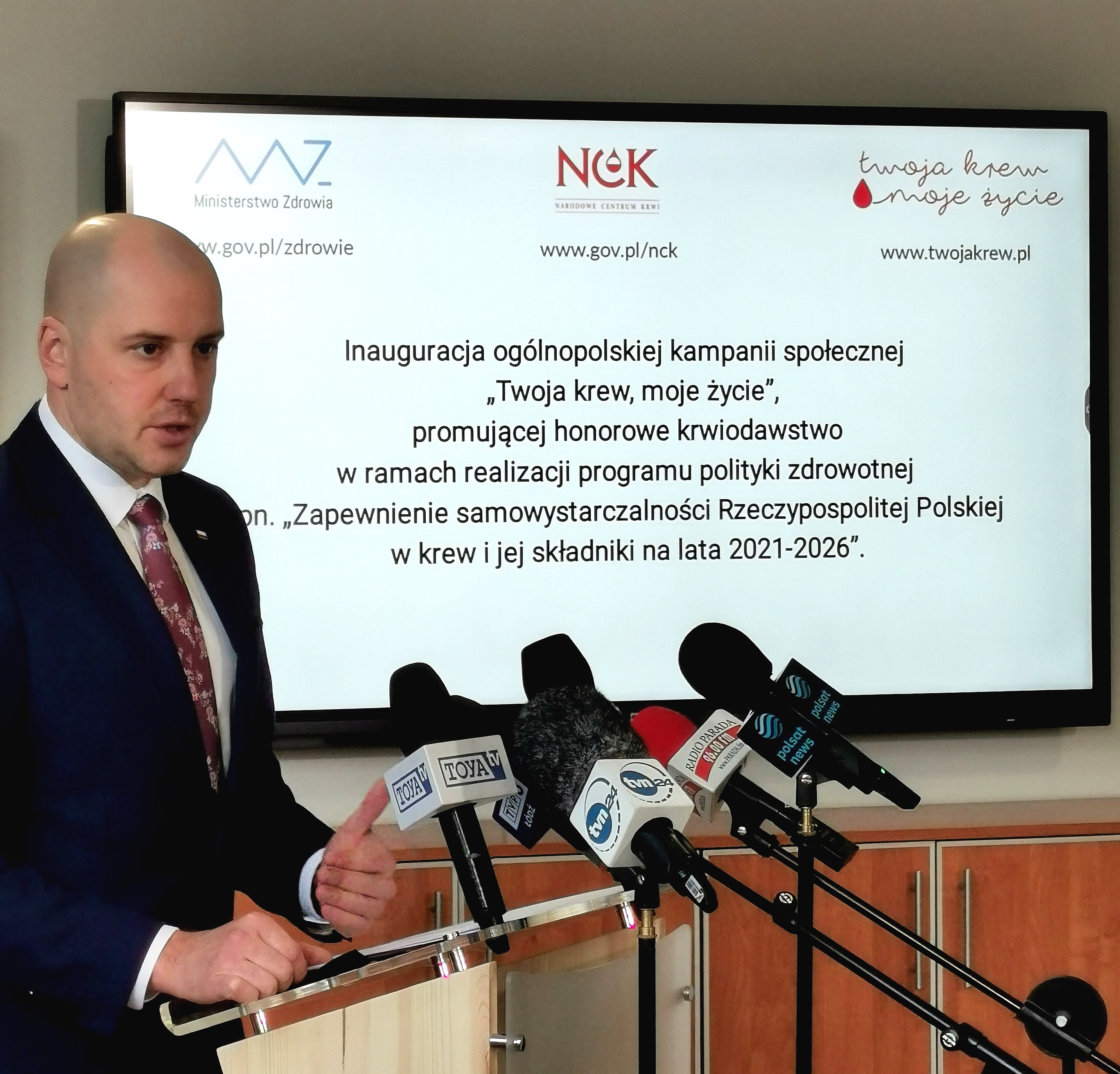 W dniu 3 grudnia 2021 r. Sławomir Gadomski, Podsekretarz Stanu w Ministerstwie Zdrowia zaprezentował nową odsłonę ogólnopolskiej kampanii społecznej promującej honorowe krwiodawstwo pn. „Twoja krew, moje życie”, która realizowana jest w oparciu o program polityki zdrowotnej pn. „Zapewnienie samowystarczalności Rzeczypospolitej Polskiej w krew i jej składniki na lata 2021-2026” finansowany przez Ministra Zdrowia. Realizatorami kampanii są Narodowe Centrum Krwi oraz 21 Regionalnych Centrów Krwiodawstwa i i Krwiolecznictwa.