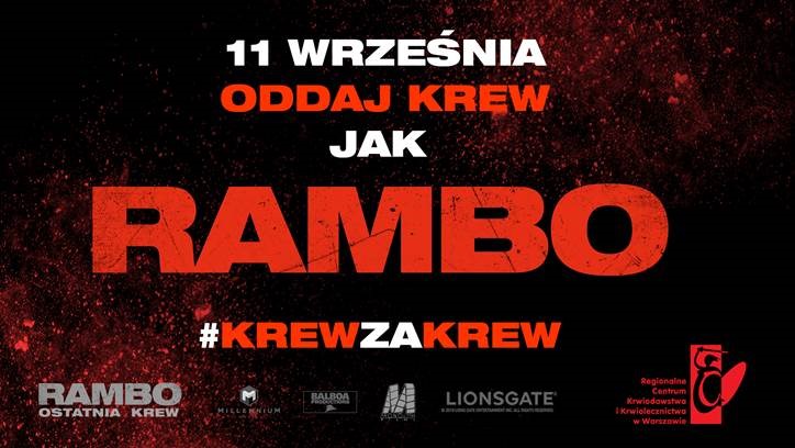 11 września w Warszawie (parking przy Pałacu Kultury i Nauki) wszyscy chętni będą mogli oddać krew i odebrać unikatowe gadżety z filmu „Rambo: Ostatnia krew”.