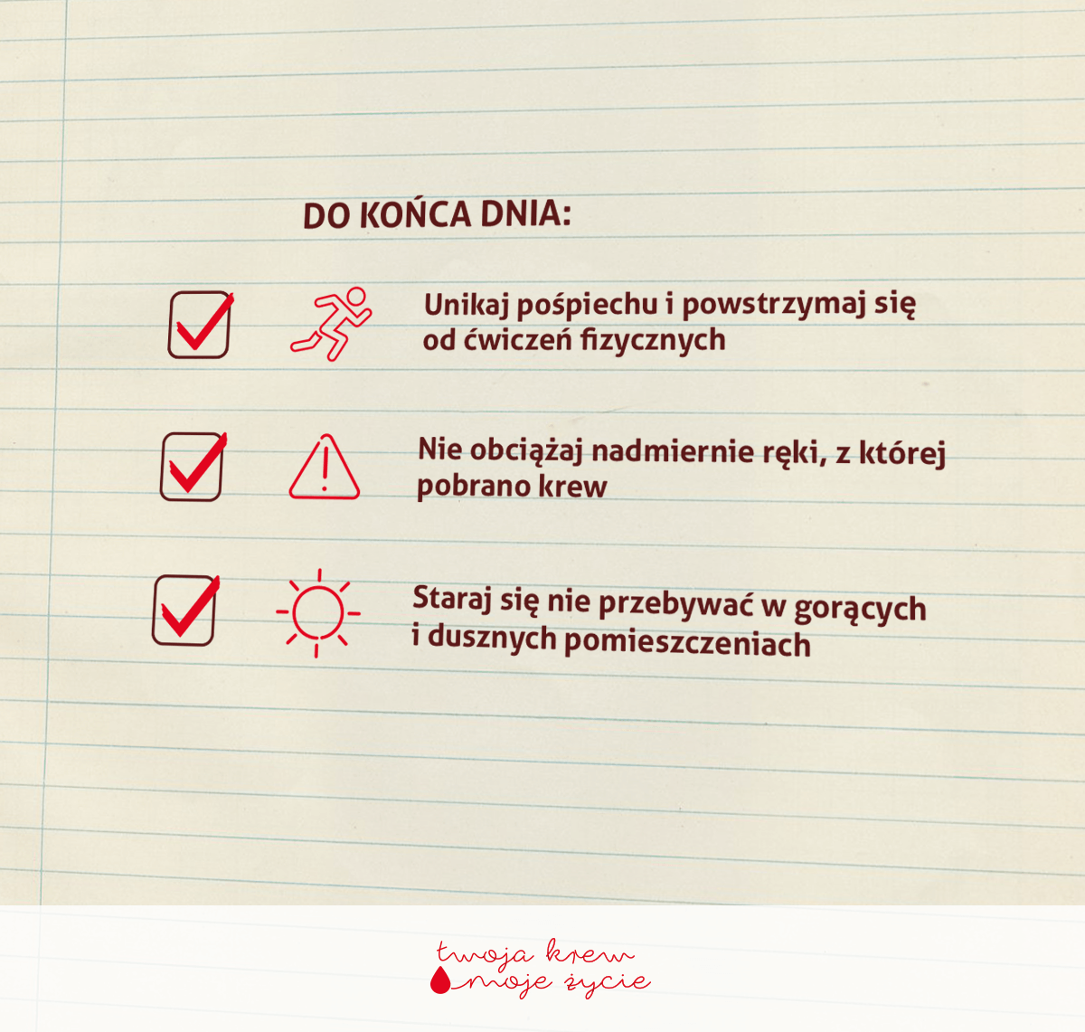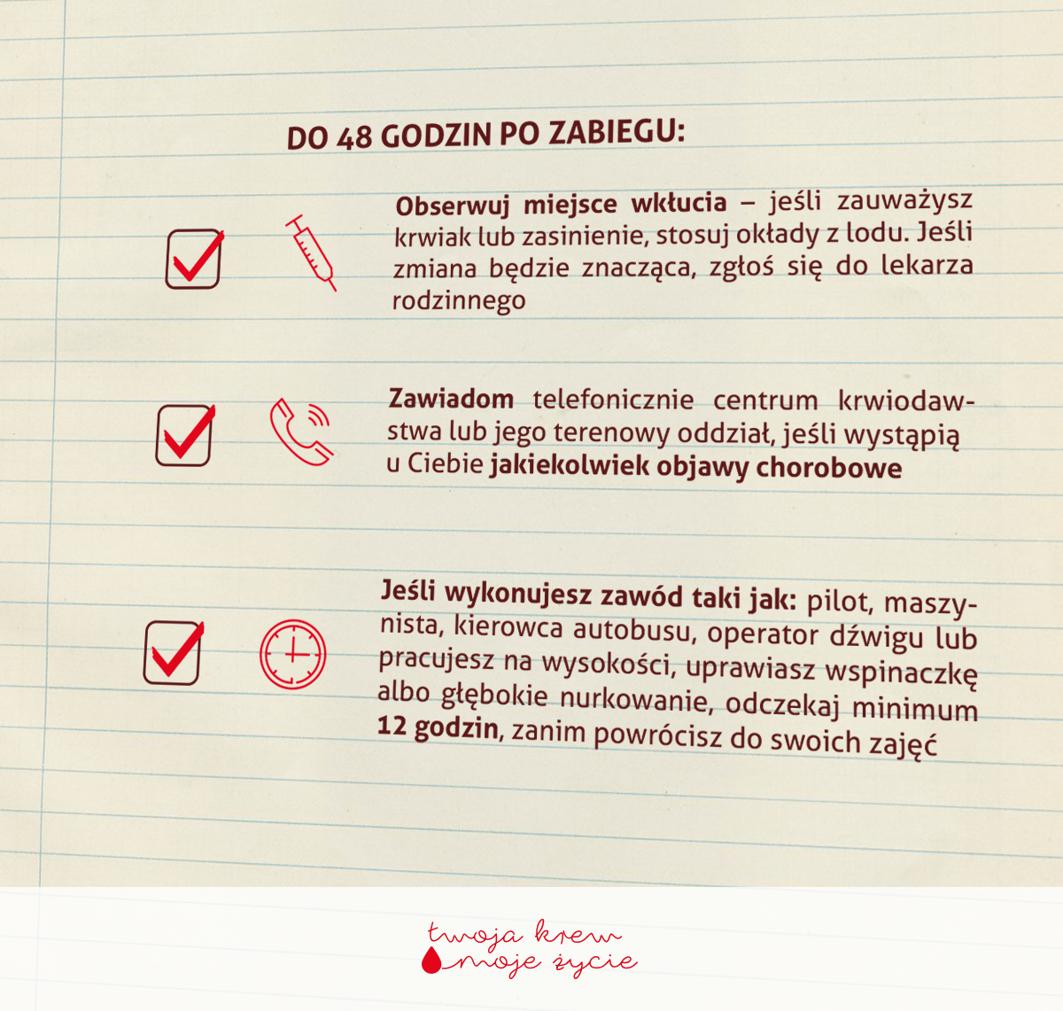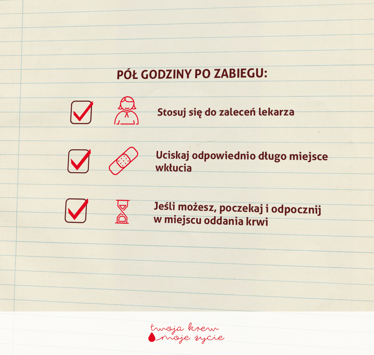 - jeśli potrzebujesz – skorzystaj z dni wolnych, które przysługują Ci po oddaniu krwi,