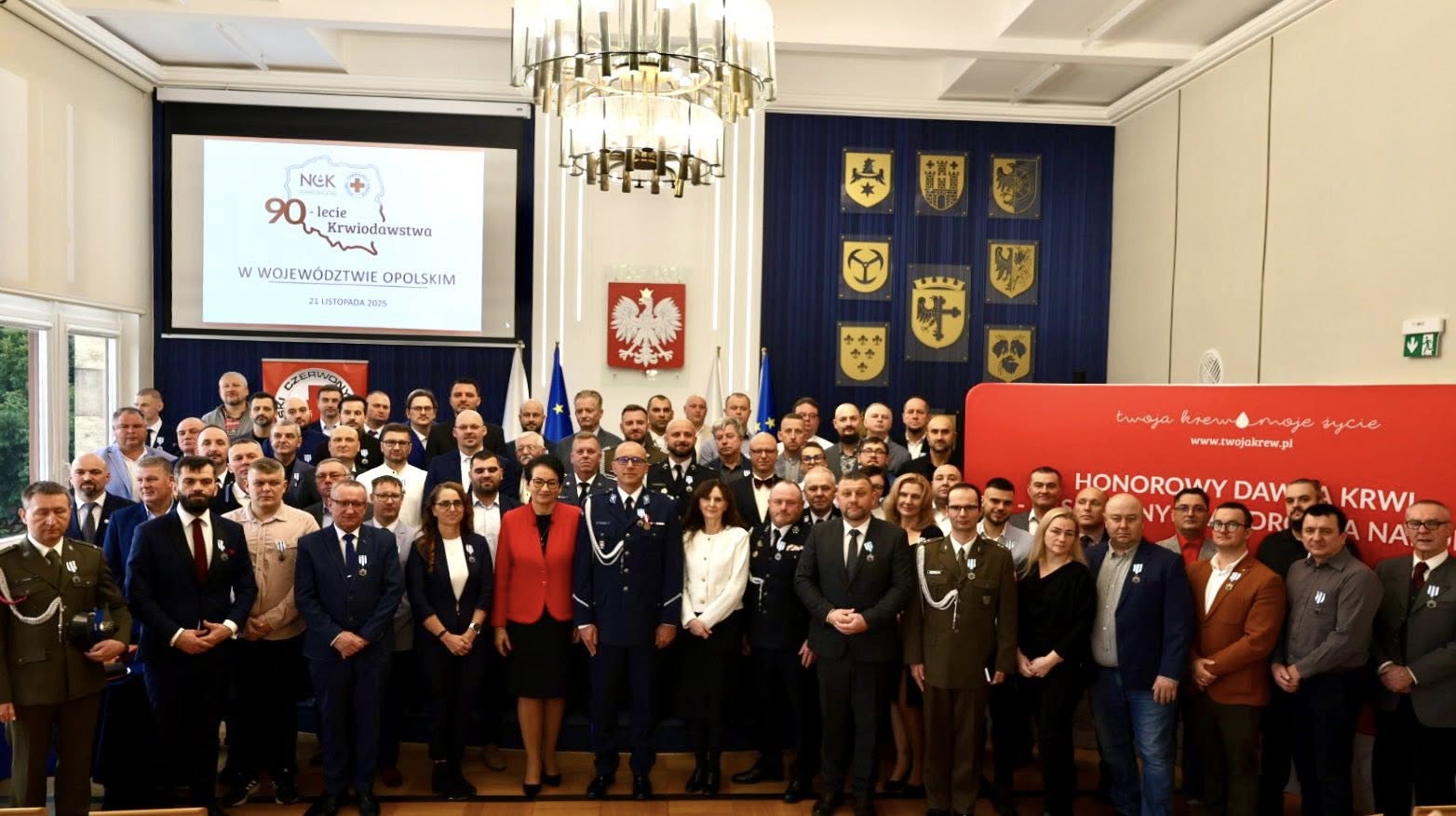 Z okazji 90-lecia krwiodawstwa w Polsce, 21 listopada 2025 r. w Sali Herbowej Opolskiego Urzędu Wojewódzkiego odbyła się uroczysta Gala, podczas której odznaczono ponad 65 Krwiodawców odznaką „Honorowy Dawca Krwi - Zasłużony dla Zdrowia Narodu”.