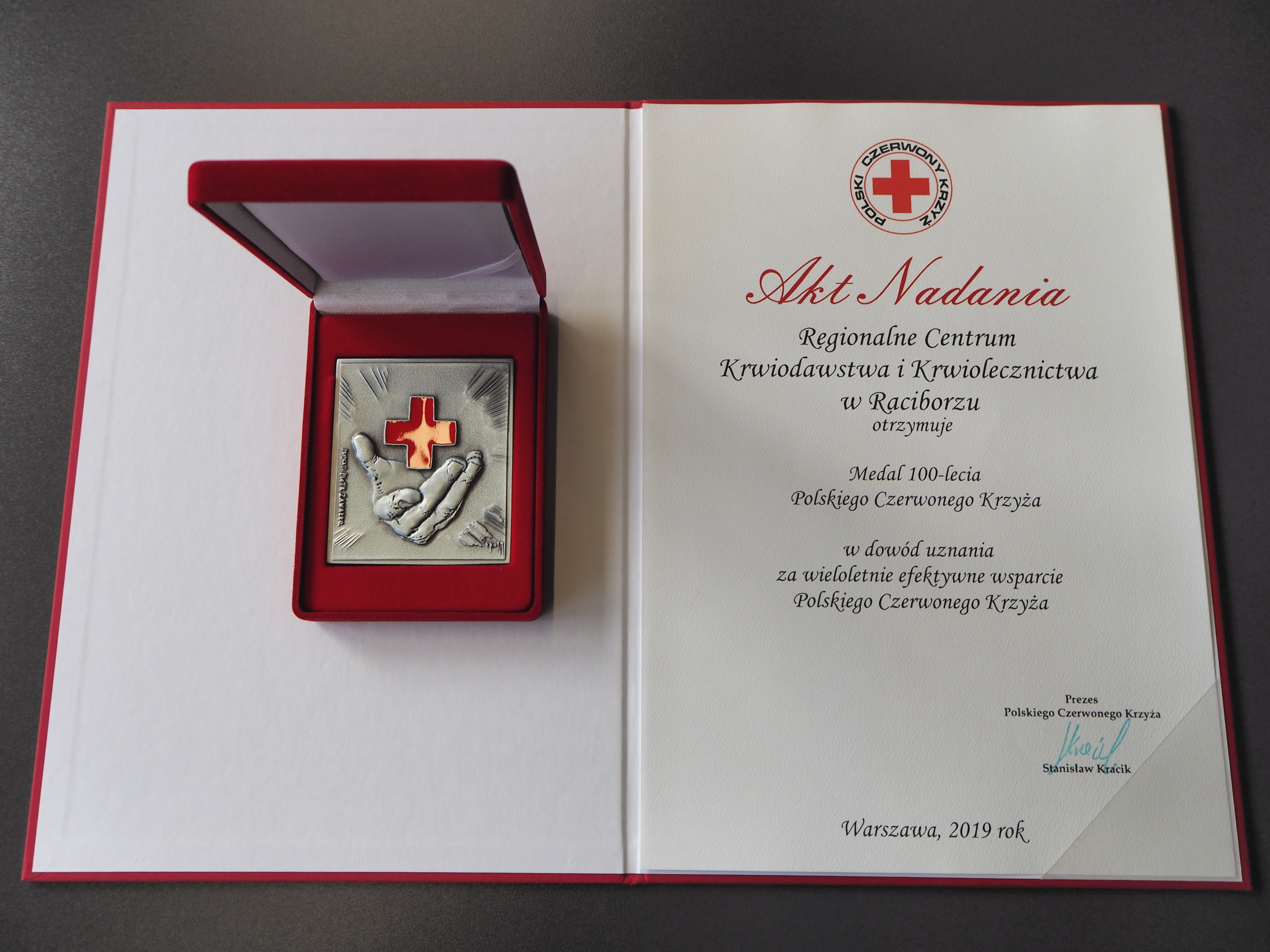 wraz z aktem jego nadania dla RCKiK w Raciborzu.