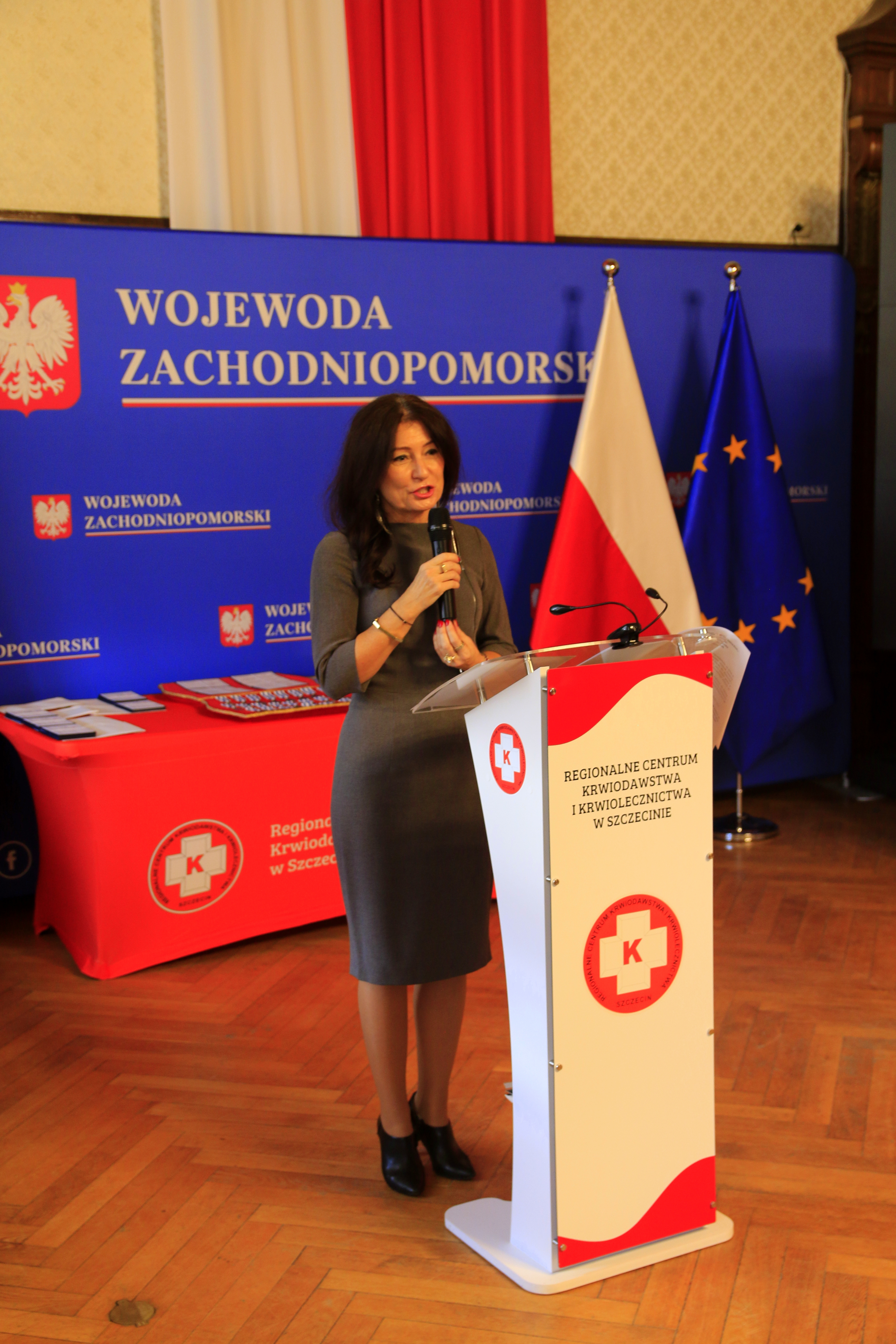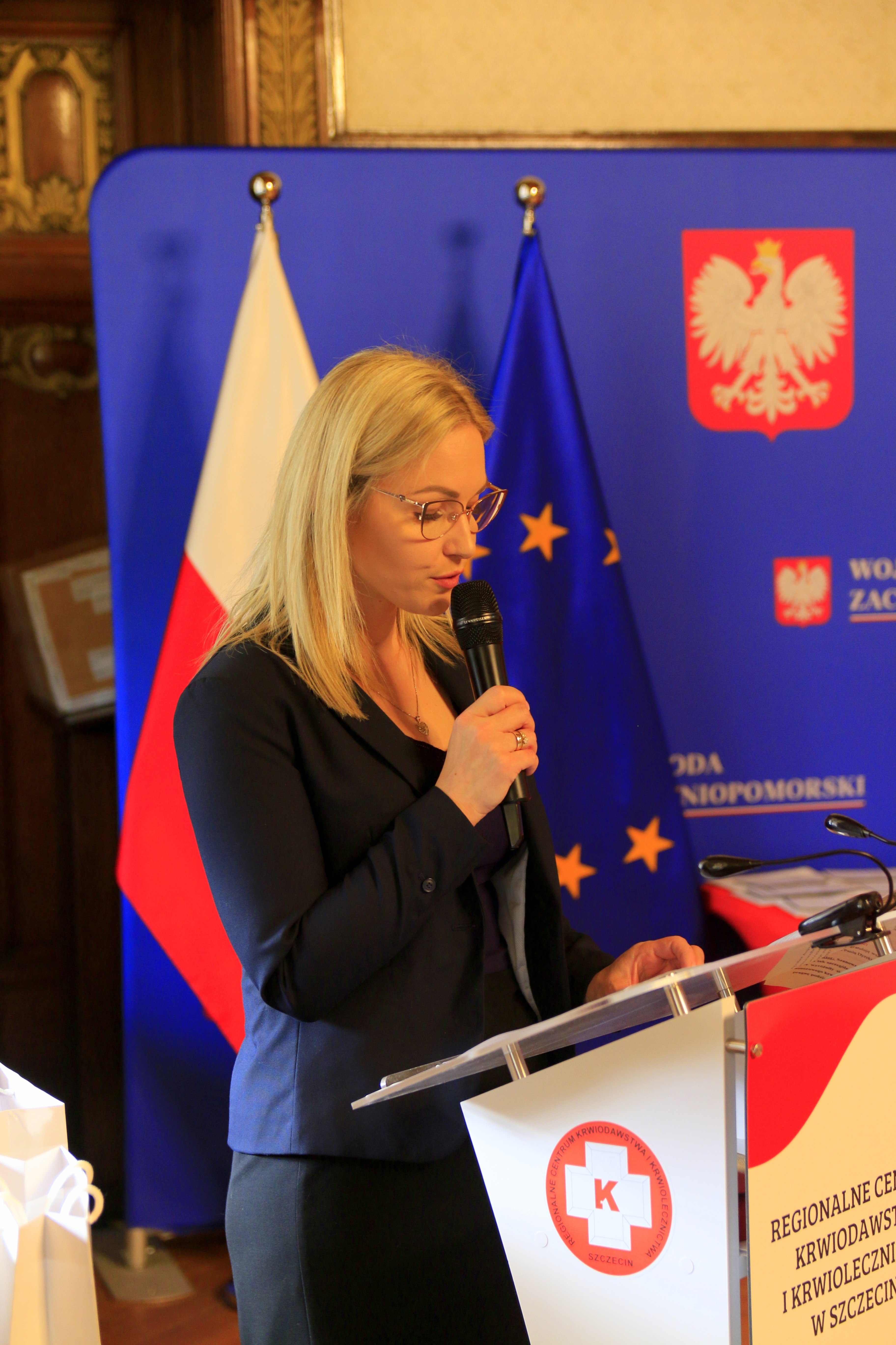 Dyrektor RCKiK w Szczecinie Ewa Kłosińska przekazała podziękowania i słowa uznania dla zaproszonych Prezesów, Przedstawicieli Klubów HDK oraz Stowarzyszeń promujących honorowe krwiodawstwo.
