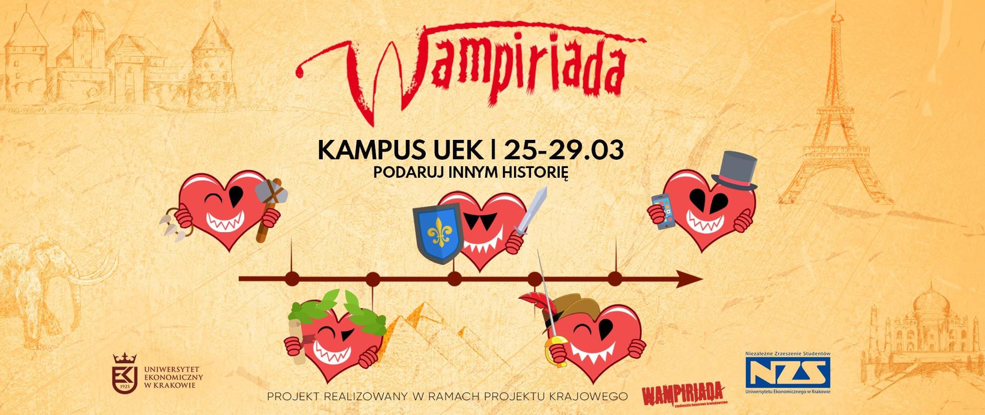 Niezależne Zrzeszenie Studentów Uniwersytetu Ekonomicznego w Krakowie i Regionalne Centrum Krwiodawstwa i Krwiolecznictwa w Krakowie zapraszają na wiosenną edycję Wampiriady, która odbędzie się w dnia 25 – 29.03.2019 r. na Kampusie UEK przy ul. Rakowickiej 27 w Krakowie.