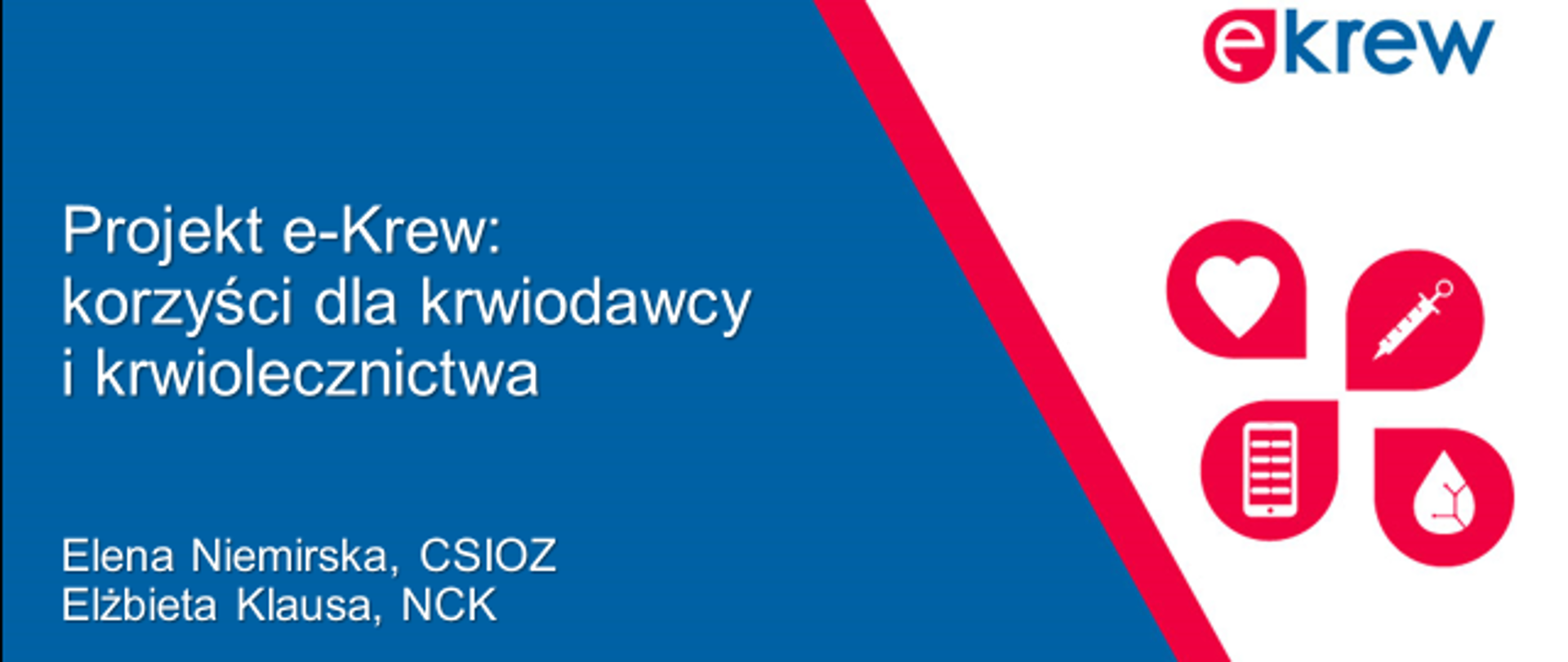 Prelegentki – Pani Elżbieta Klausa z Narodowego Centrum Krwi oraz Pani Elena Niemirska z Centrum Systemów Informacyjnych Ochrony Zdrowia przedstawiły następujące tematy: