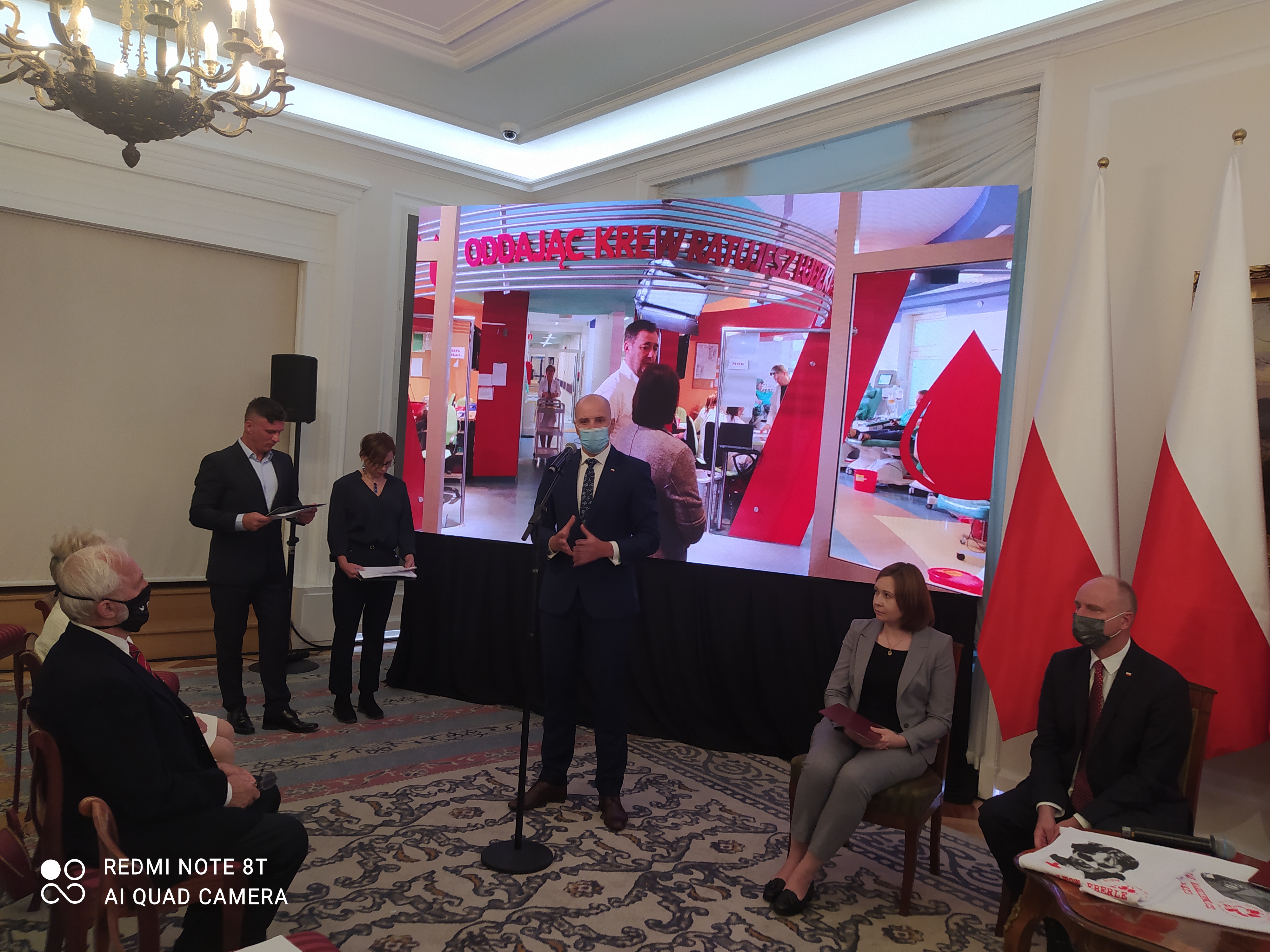 Sławomir Gadomski, wiceminister zdrowia podziękował Honorowym Dawcom Krwi za ofiarowanie własnej krwi dla drugiego człowieka. Minister podkreślił jak ważną rolę pełnią Krwiodawcy, którzy niosą pomoc polskim pacjentom wymagającym leczenia krwią klub jej składnikami. Minister dodał, że honorowe krwiodawstwo to także wyraz polskiego patriotyzmu, solidarności, braterstwa i zaapelował o aktywne oddawanie krwi.