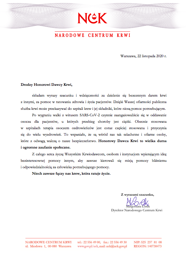 Życzenia Dyrektora NCK z okazji Dni Honorowego Krwiodawstwa 22.11.2020 Materiały życzenia NCK 2020_Życzenia_NCK.png 0.21MB