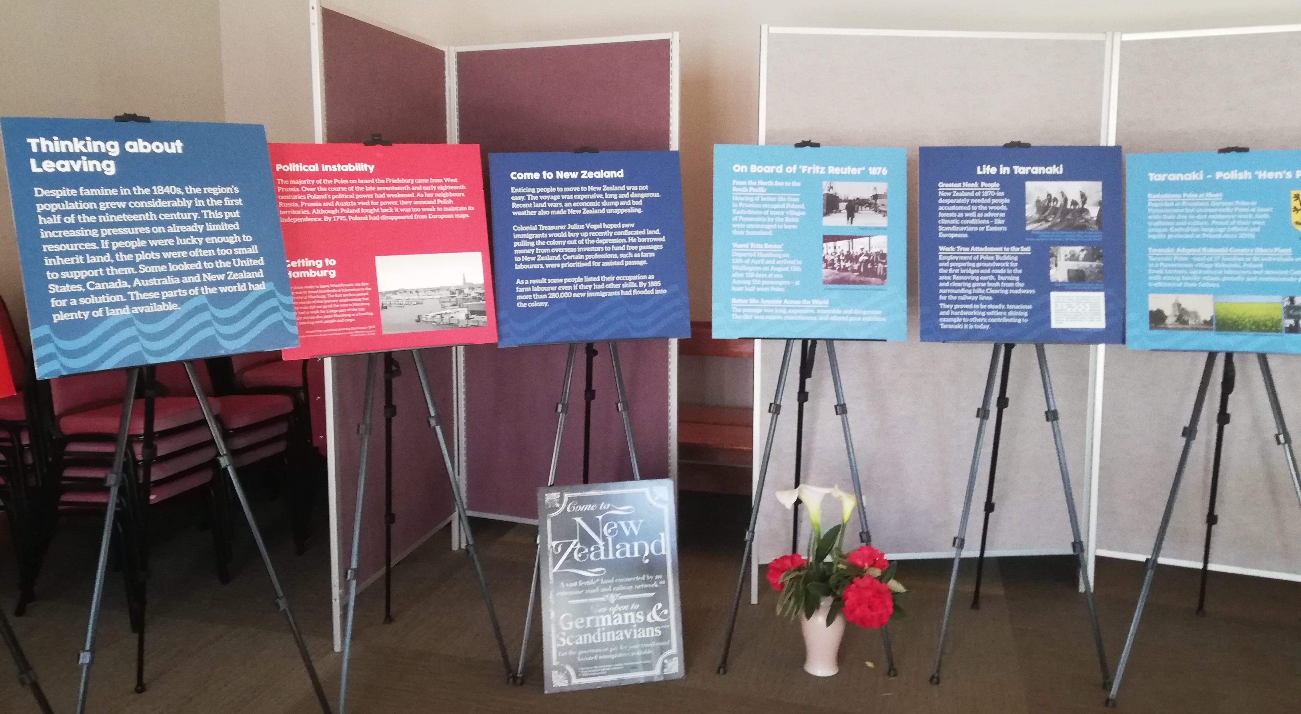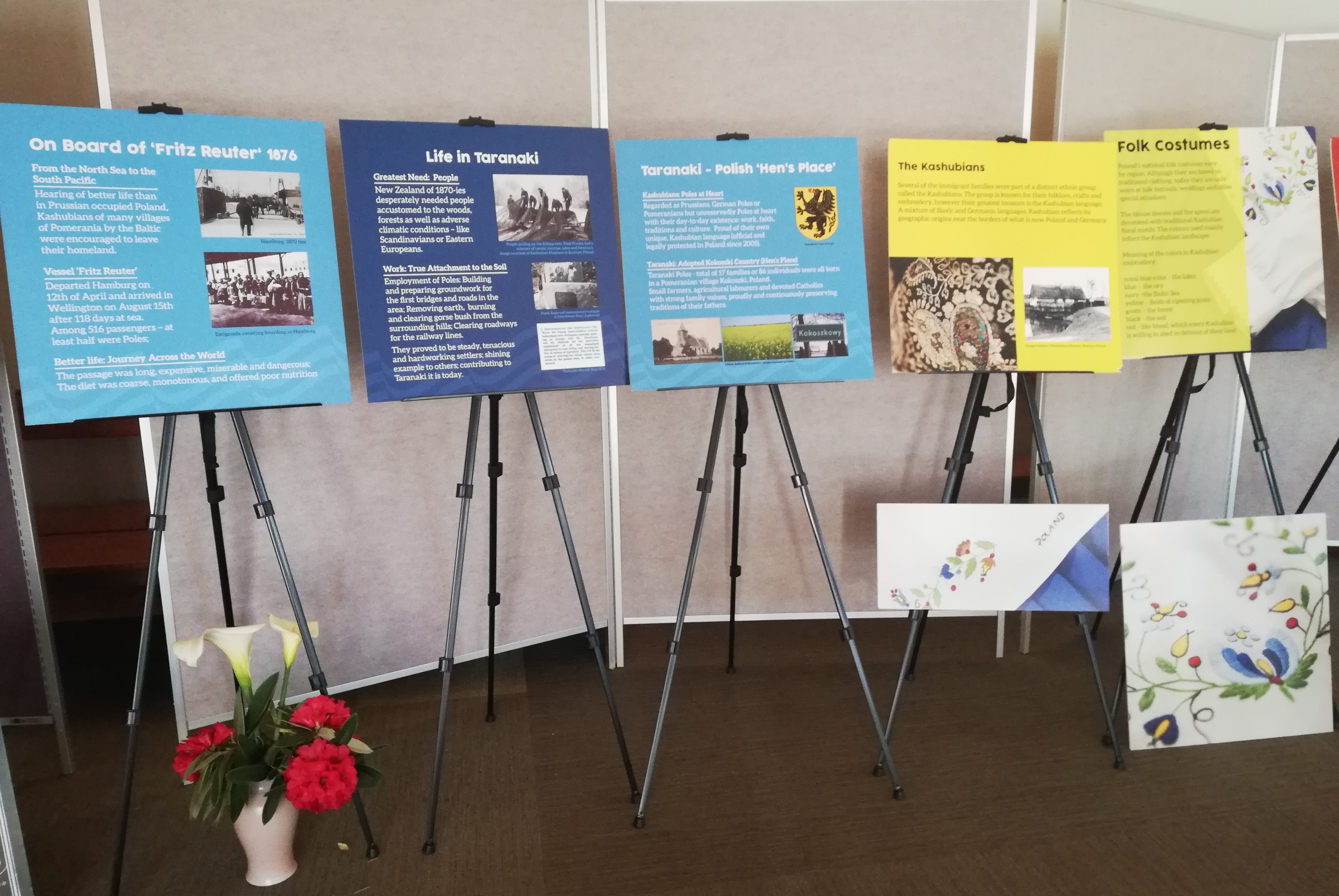 The exhibition 'New Zealand's First Polish Settlers - Taranaki Edition', prepared by 'Between the Waters', Polish Legacy in New Zealand Charitable Trust with the support of the Polish Embassy in Wellington, was displayed at the Sacred Heart Church Hall in Inglewood.