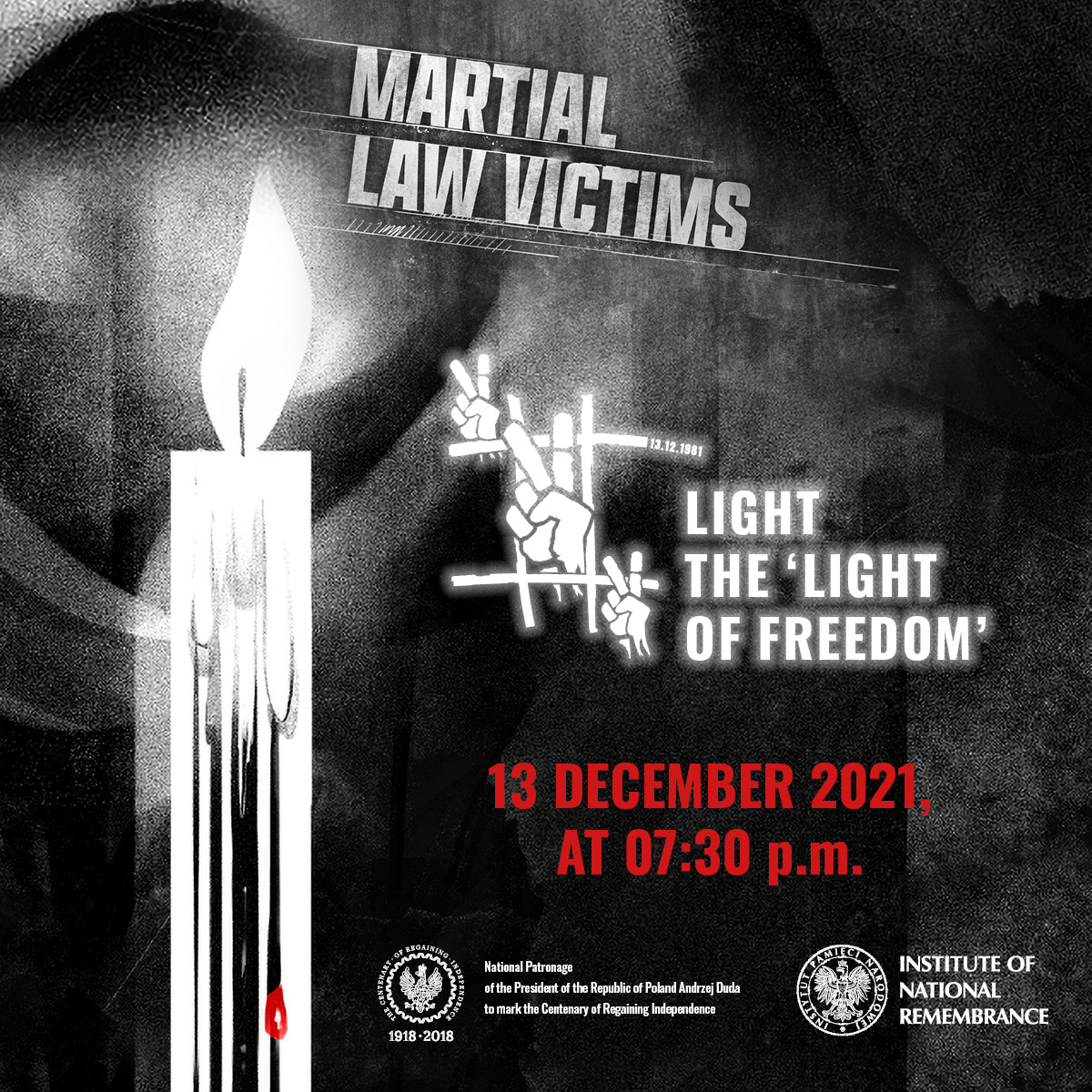 To commemorate the 40th anniversary of the declaration of martial law, the Institute of National Remembrance invites you to participate in the social campaign "Victims of martial law. Light the Light of Freedom ”by lighting a candle in the window on December 13 at 7.30pm and expressing solidarity with the victims of martial law.