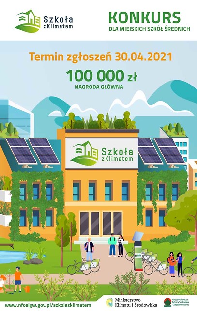 Jeszcze tylko przez 2 tygodnie można zgłaszać projekty konkursowe planu adaptacji do zmian klimatu dla szkoły i jej sąsiedztwa. Zwycięska szkoła może otrzymać aż 100 tys. zł na realizację ekologicznego pomysłu uczniów. „Szkoła z klimatem” to ogólnopolski konkurs Narodowego Funduszu Ochrony Środowiska i Gospodarki Wodnej dla miejskich szkół ponadpodstawowych – jest elementem projektu Ministra Klimatu i Środowiska pn. „Miasto z klimatem”. Młodzieżowa rywalizacja trawa do 30 kwietnia br.