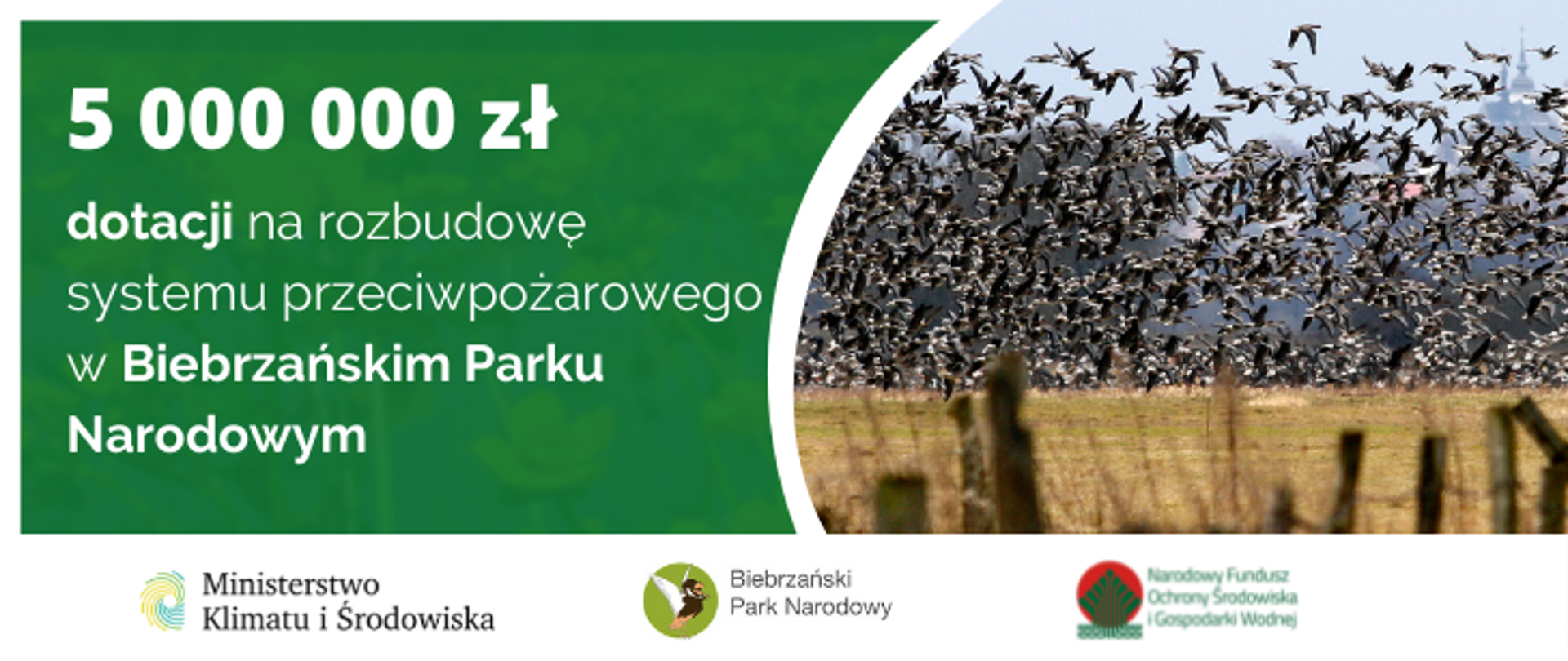 Biebrzański Park Narodowy (BbPN), będący unikatową ostają ptaków wodno-błotnych, łosi oraz wielu innych gatunków fauny i flory, zyska skuteczną ochronę przeciwpożarową. Dzięki umowie podpisanej, 20 sierpnia br., z Narodowym Funduszem Ochrony Środowiska i Gospodarki Wodnej na tym cennym przyrodniczo terenie powstanie system przeciwdziałania niszczącemu działaniu ognia, wart 5 mln zł. Pożary stanowią w parku jedno z największych zagrożeń.