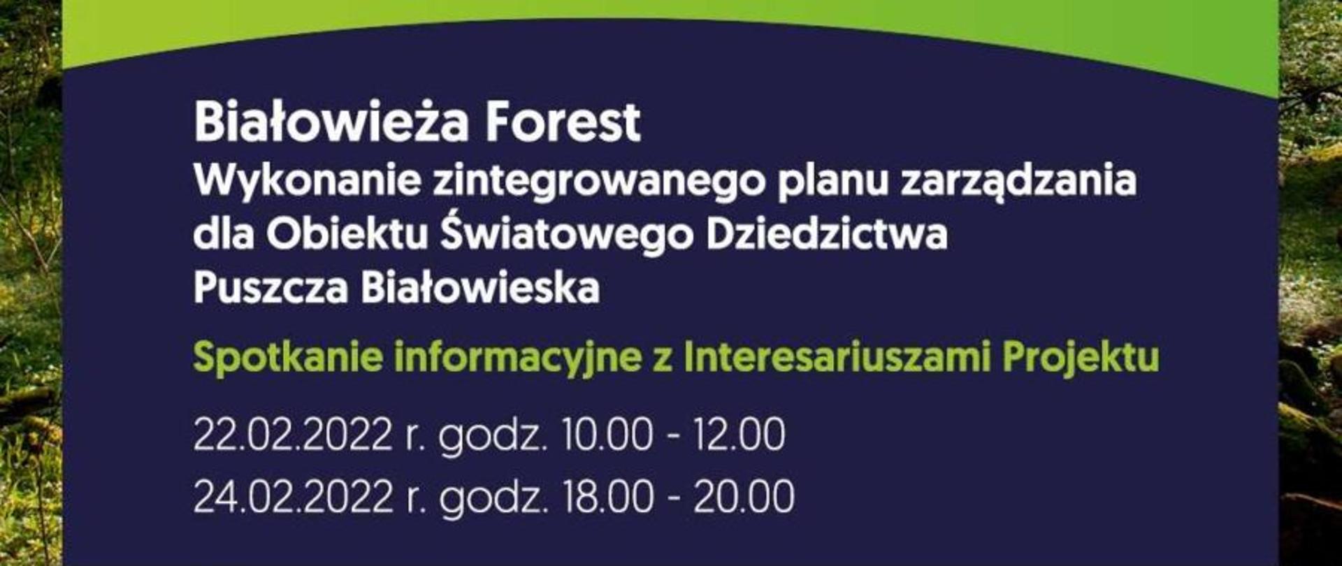 Serdecznie zapraszamy na spotkanie informacyjne w ramach Projektu „Wykonanie zintegrowanego planu zarządzania dla Obiektu Światowego Dziedzictwa Puszcza Białowieska” organizowane przez Instytut Ochrony Środowiska – Państwowy Instytut Badawczy.