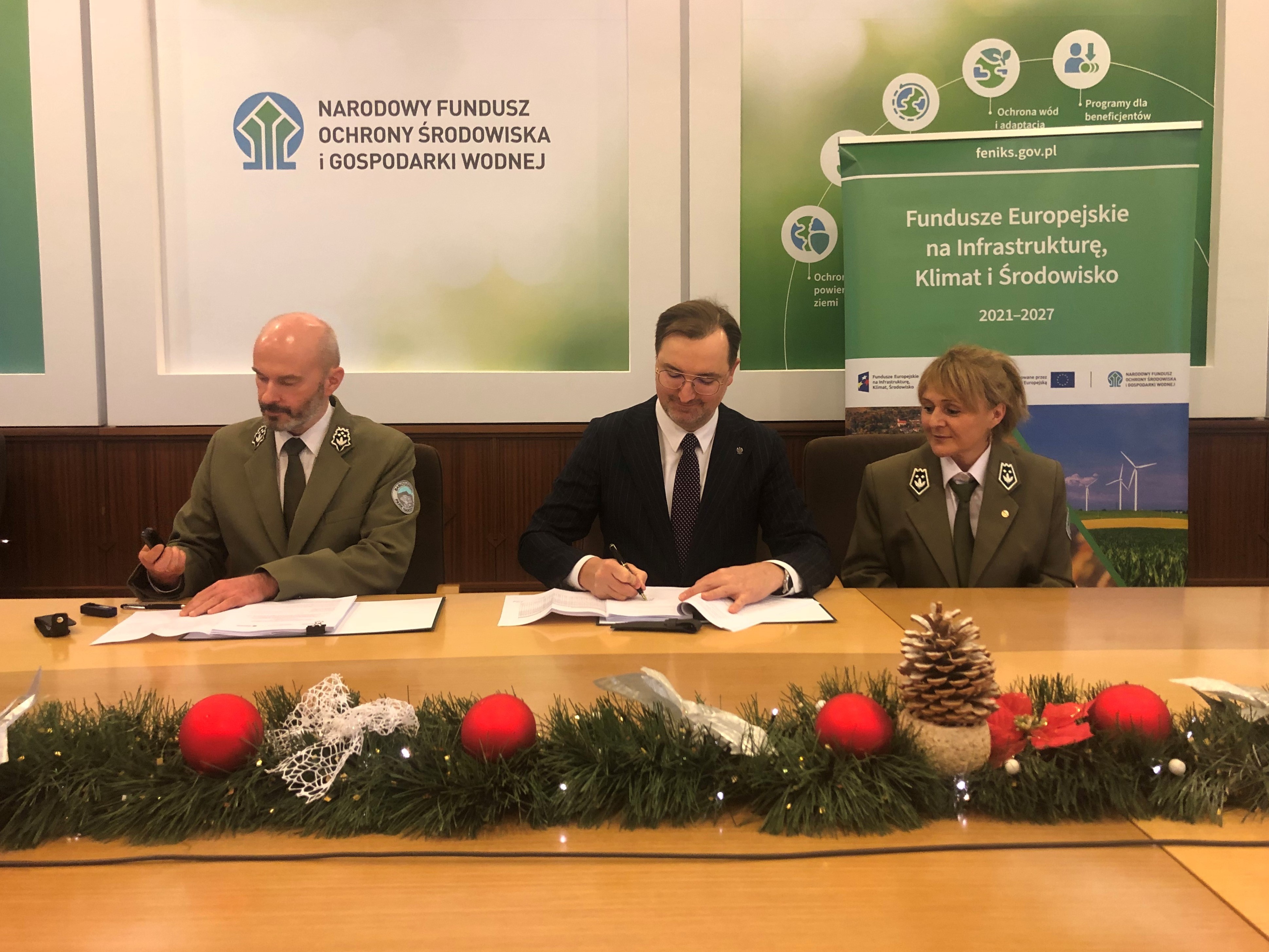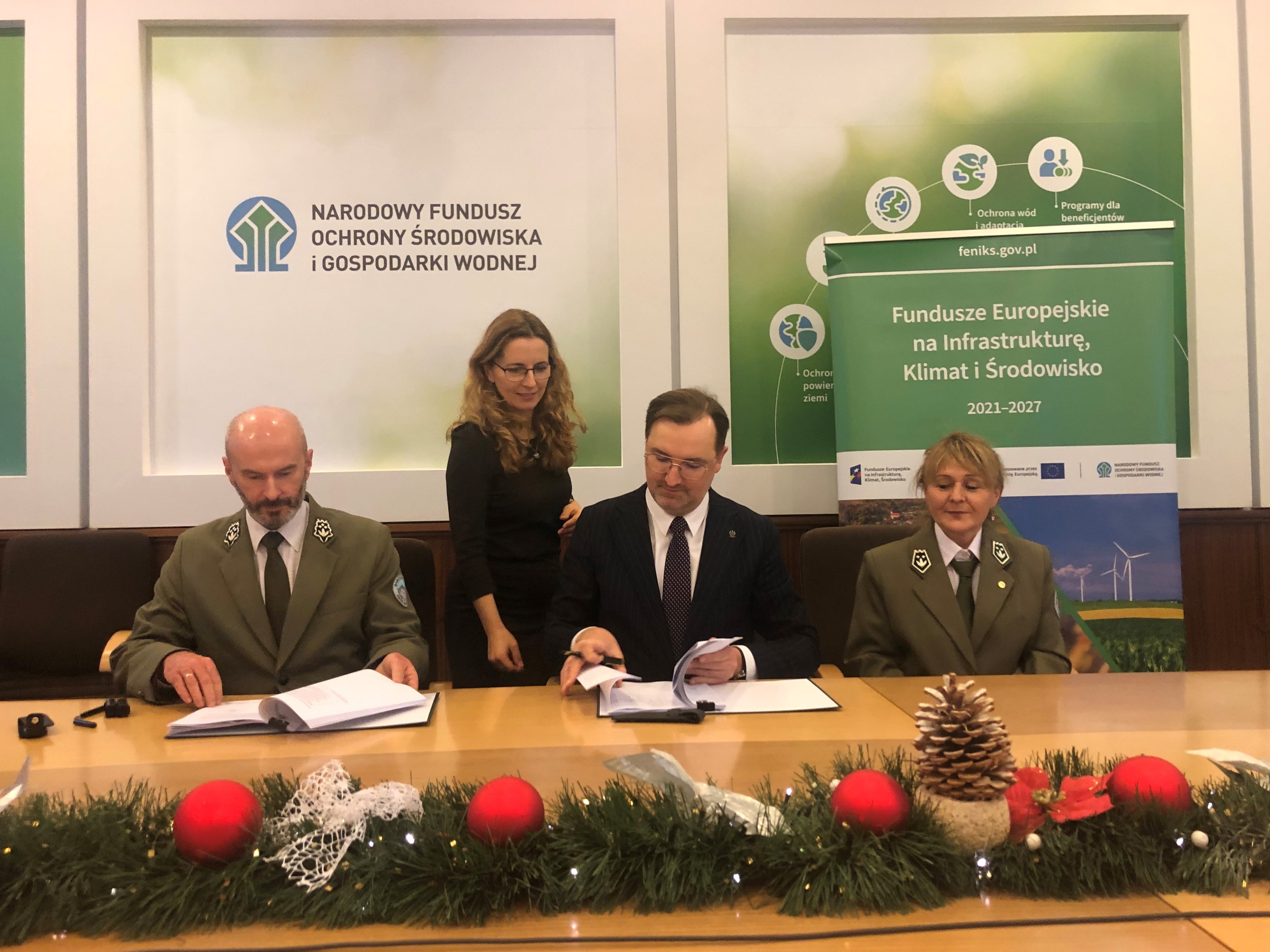 W siedzibie Narodowego Funduszu Ochrony Środowiska i Gospodarki Wodnej Sławomir Mazurek, wiceprezes NFOŚiGW i Tomasz Pasierbek, dyrektor Babiogórskiego Parku Narodowego podpisali umowę na dofinansowanie budowy Centrum Edukacji Przyrodniczej MORGI. Środki w wysokości 49 341 917,44 zł pochodzą z Programu Fundusze Europejskie na Infrastrukturę, Klimat, Środowisko 2021-2027 (FEnIKS).