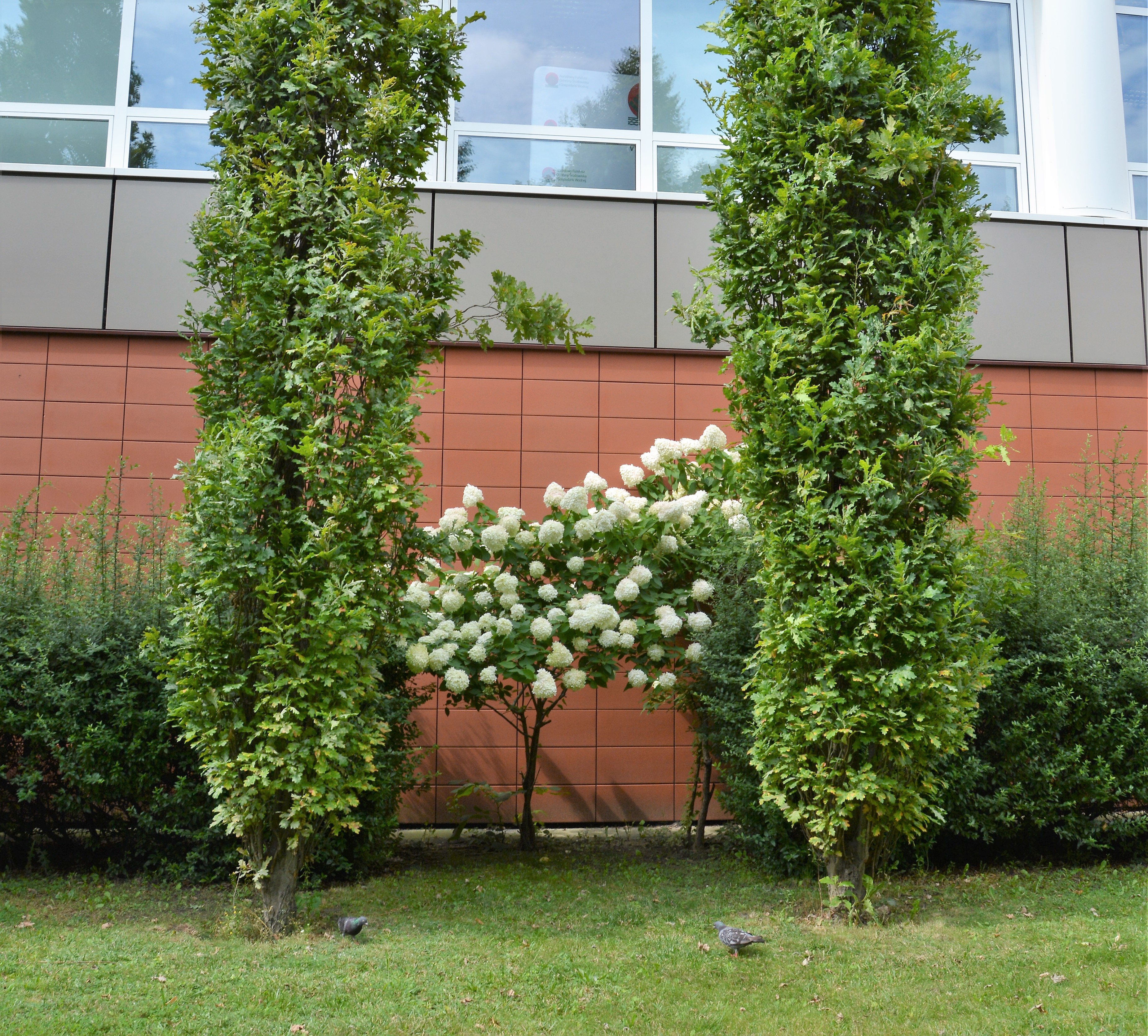 Rozkwita roślinność wokół siedziby NFOŚiGW w Warszawie. Na co dzień jest ona pielęgnowana przez pracowników Departamentu Administracyjnego, którzy współpracują ze specjalistami m.in. dendrologami. Teraz, latem, w pełni można zauważyć, że Fundusz „dopracował się” mini ogrodu, choć ograniczonego do pasów zieleni przyulicznej. Przechodząc ulicami: Wołoską i Konstruktorską oraz południowym przejściem między sąsiadującymi biurowcami można spostrzec najbardziej liczne tu gatunki: tuje oraz dęby szypułkowe (część z nich to drzewa jubileuszowe, natomiast jeden rosnący przy wejściu to Bercik, nazwany tak na cześć pracownika NFOŚiGW). Obok rosną także cisy, świerki, tawuły oraz jałowce. Stosunkowo rzadko spotykana w warunkach miejskich jest nasza wysoka kępa trzciny pospolitej – rośnie przy wschodniej ścianie budynku Funduszu, zielony zestaw uzupełniają także kosodrzewina przy północnej oraz kępy wysokich traw (również z tej strony) przy wejściu do kancelarii. Wszystko uzupełniają ozdobne byliny – funkie.
