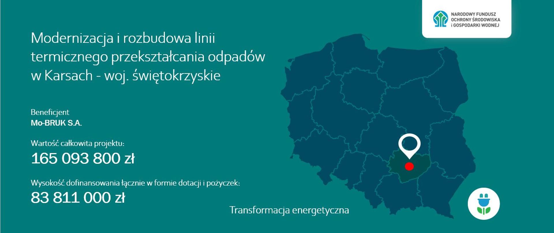 Dofinansowania zostaną przekazane przez NFOŚiGW z zasobu programu „Racjonalna gospodarka odpadami, Część 2) Instalacje gospodarowania odpadami”. Dzięki wsparciu Mo-BRUK S.A. będzie mógł rozbudować obecnie eksploatowaną Instalację Termicznego Przetwarzania Odpadów Niebezpiecznych w Karsach, która obecnie ze względu na ograniczenia technologiczne osiąga jakość procesu przy wydajności na poziomie maksymalnie 15,5 tysięcy ton odpadów na rok. Po rozbudowie wydajność instalacji wyniesie 25 tysięcy ton rokrocznie.