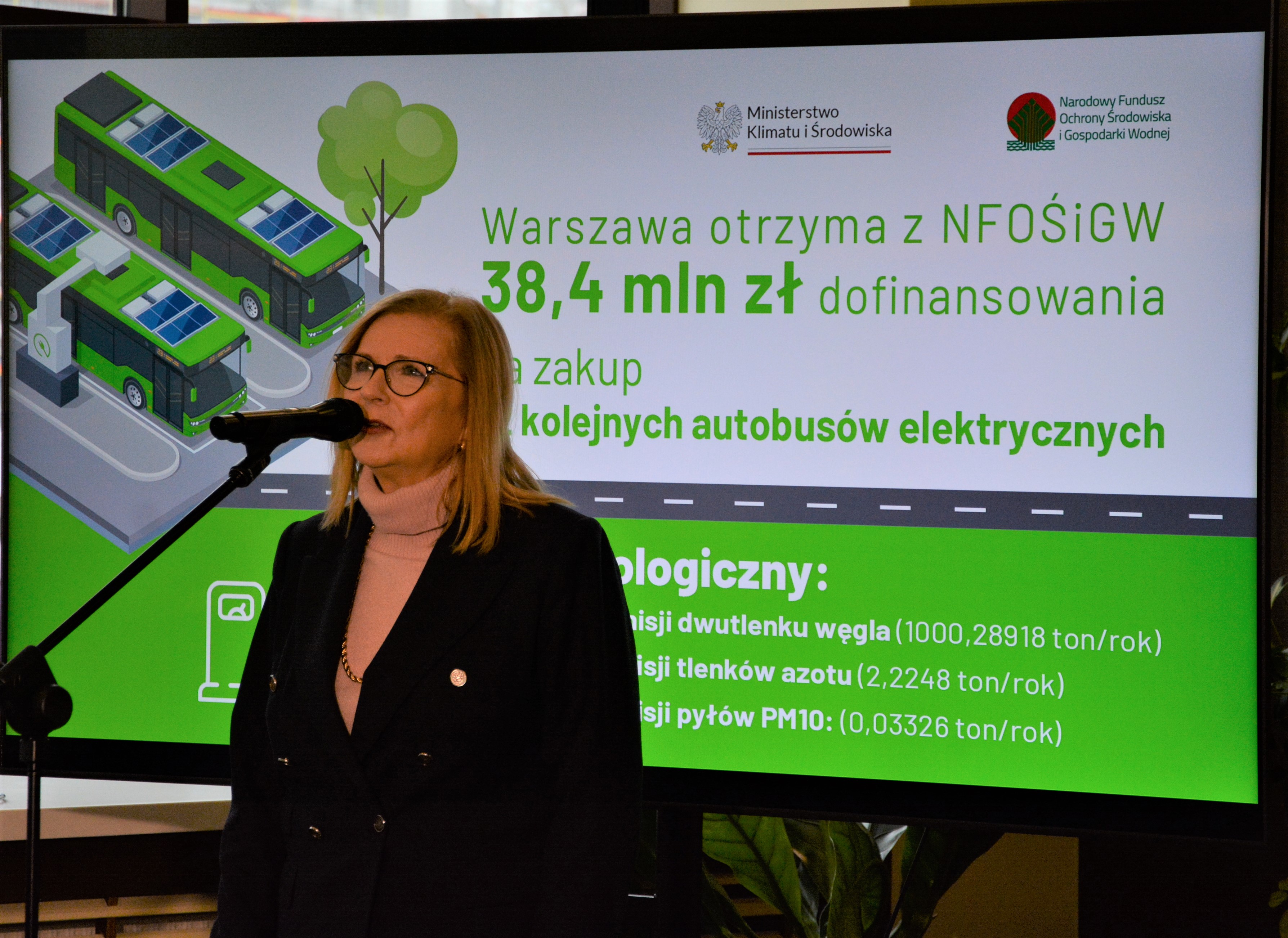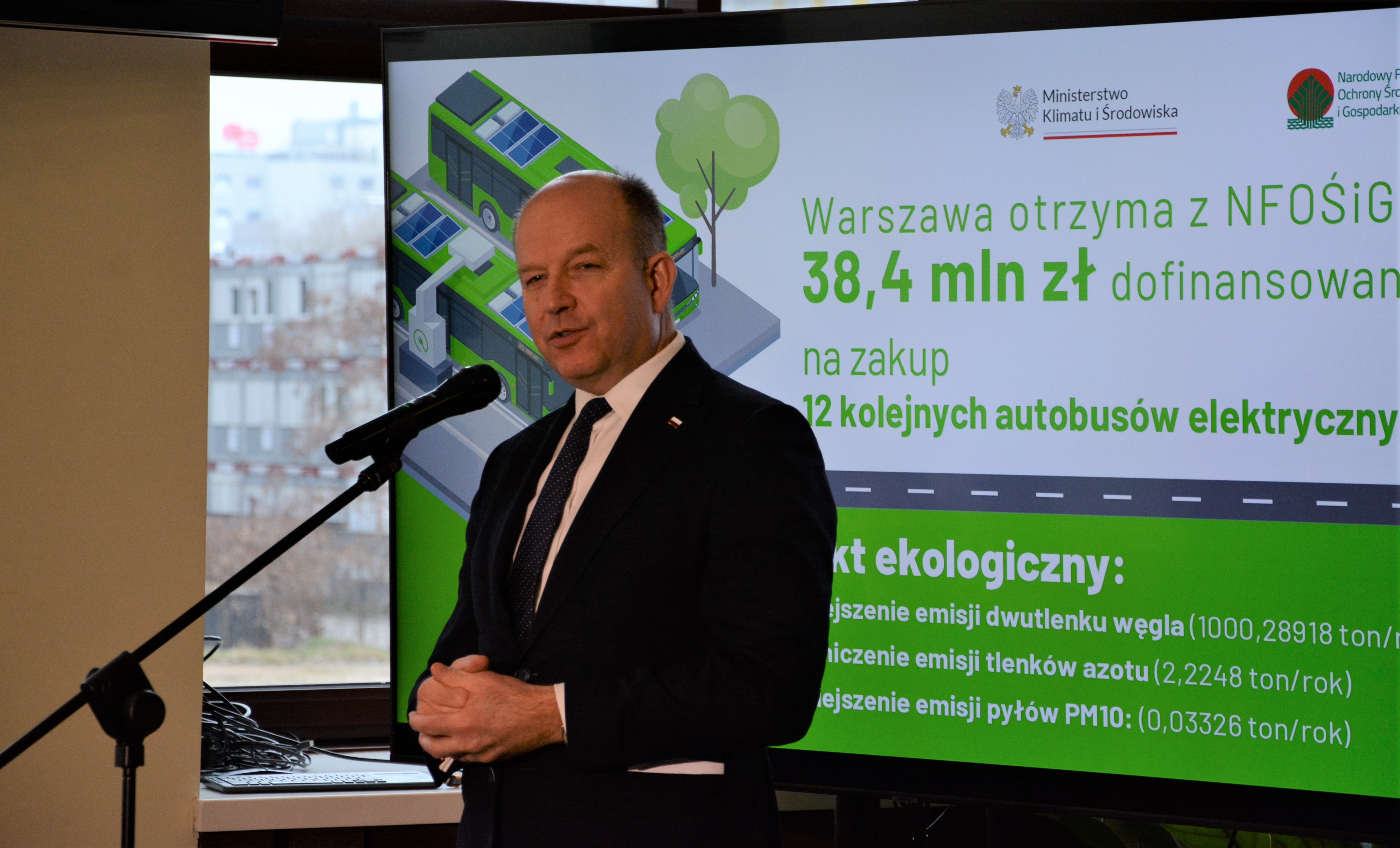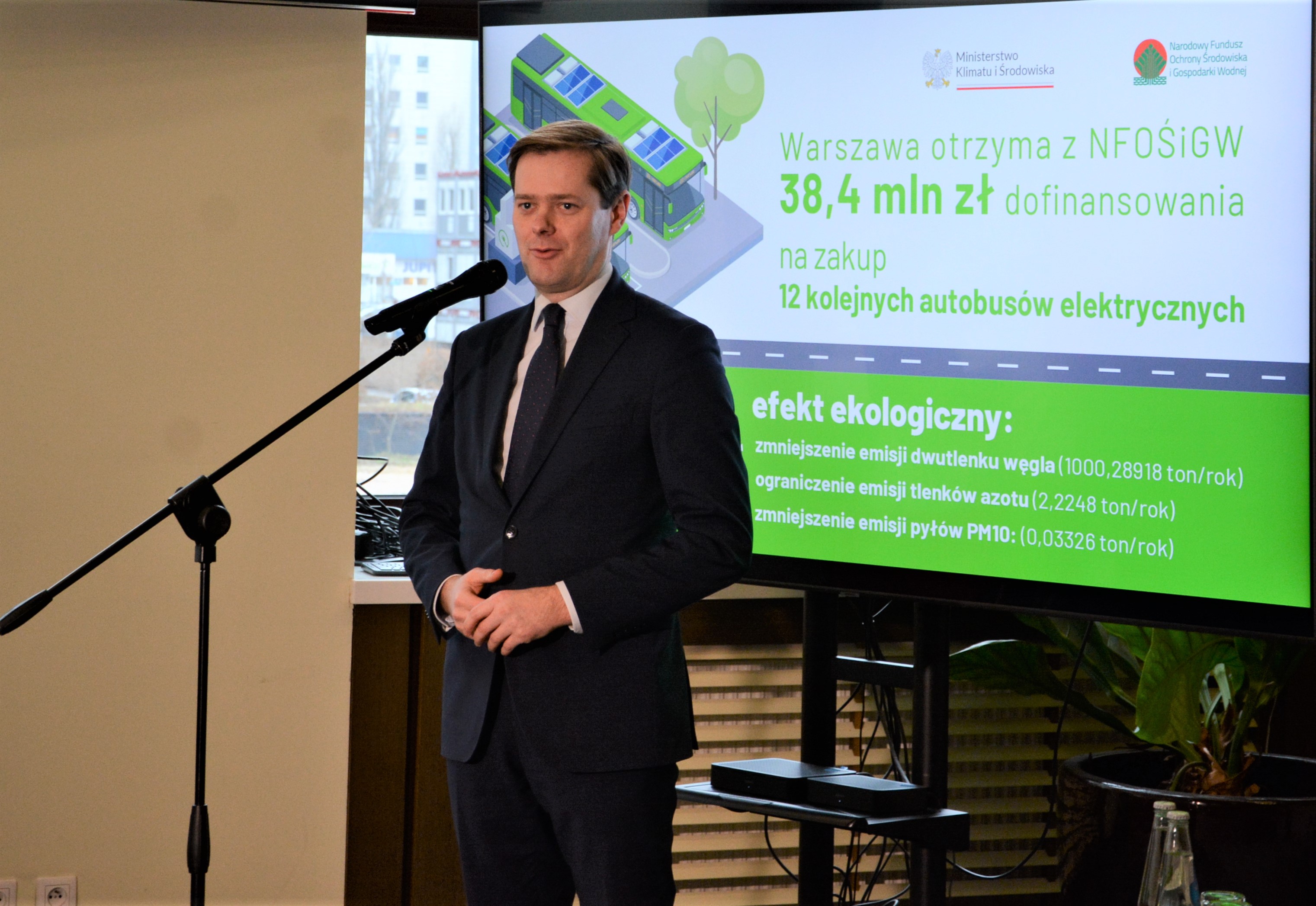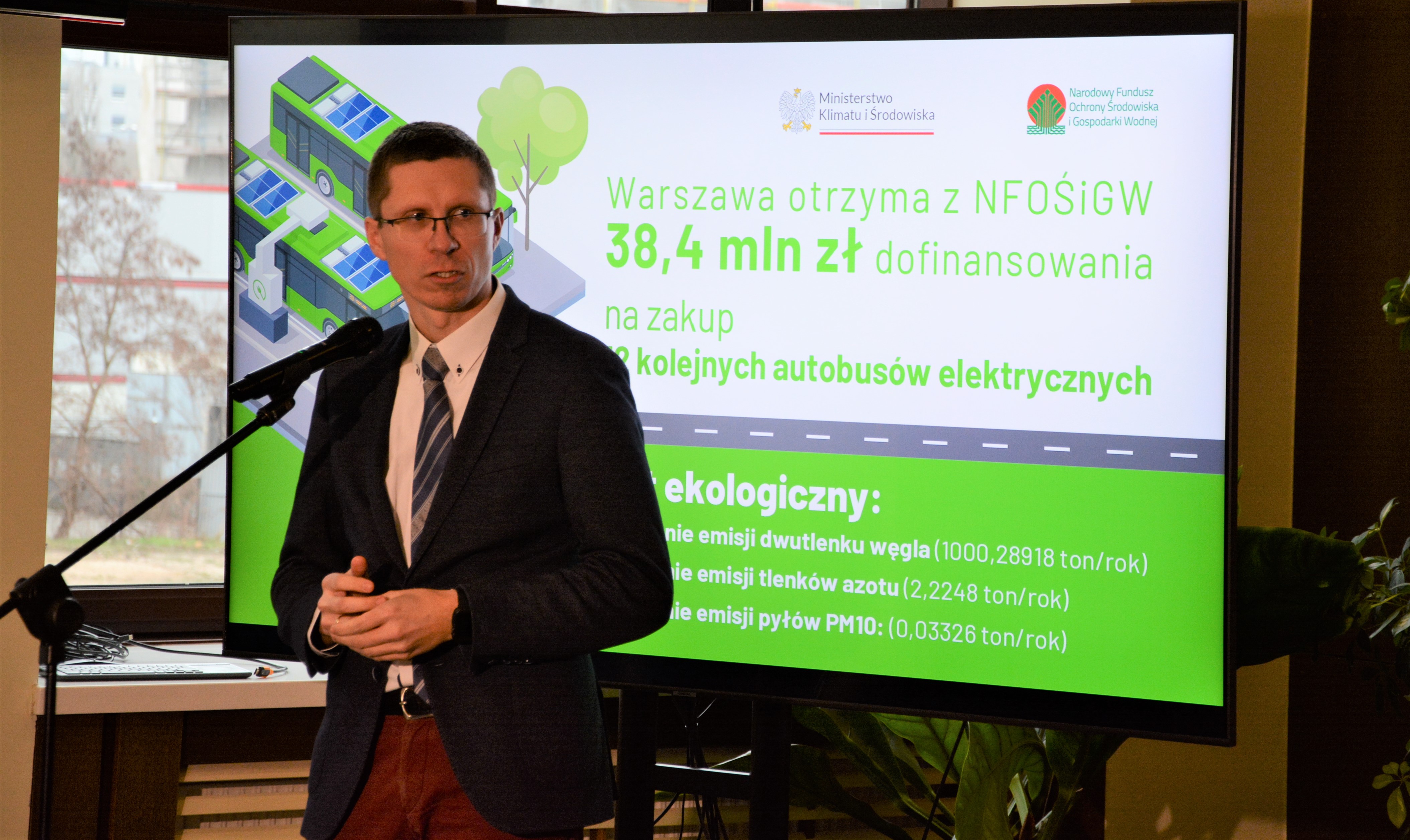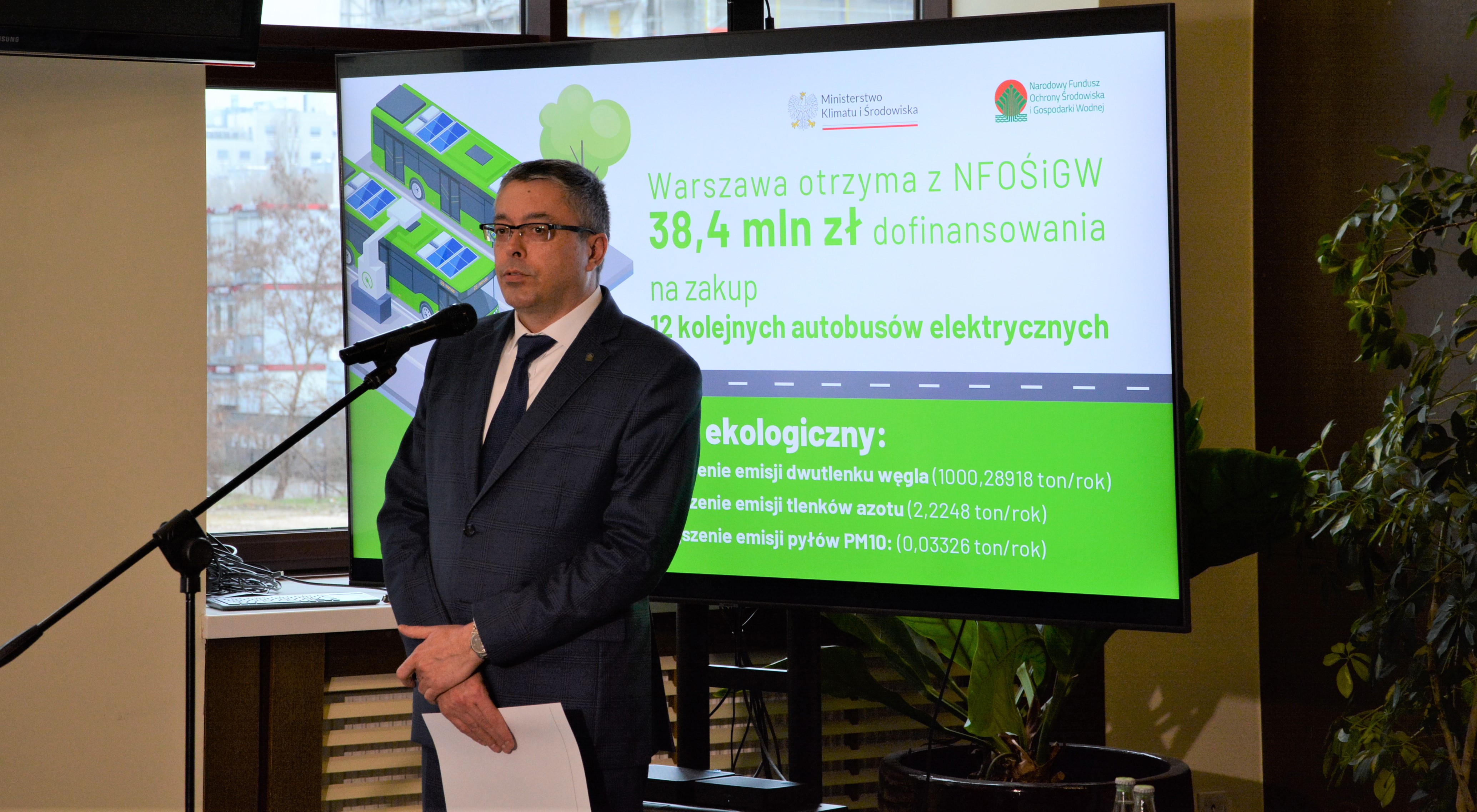 38,4 mln zł z puli środków rządowych udostępnionych przez Narodowy Fundusz Ochrony Środowiska i Gospodarki Wodnej zostanie przeznaczone przez miasto stołeczne Warszawę na zakup 12 autobusów elektrycznych. Dofinansowanie, na które składa się 13,4 mln zł dotacji oraz pożyczka w wysokości ok. 25 mln zł, będzie przekazane z programu „Zielony Transport Publiczny”.