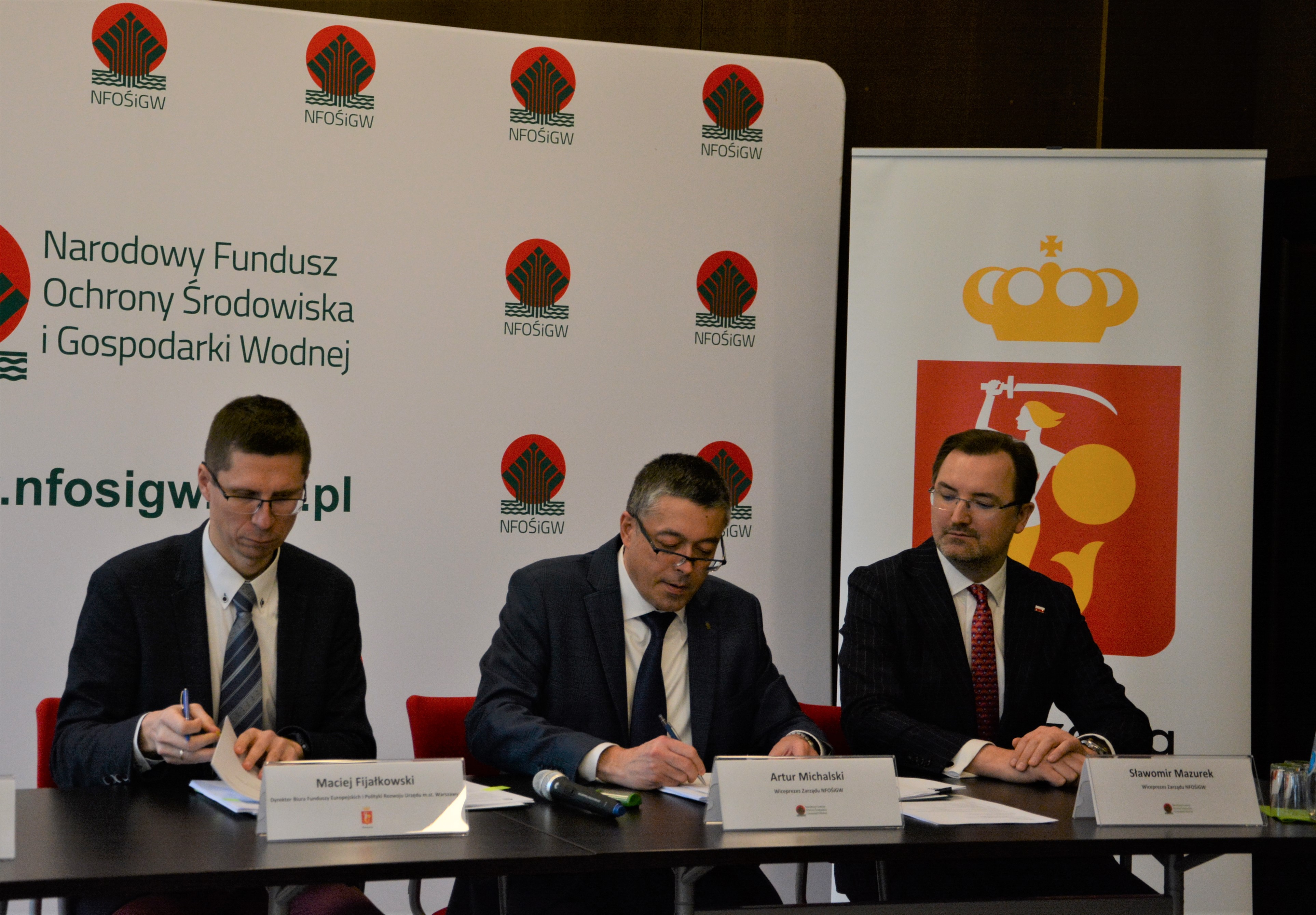 Umowa regulująca udzielenie wsparcia finansowego została podpisana 20 stycznia br. w siedzibie Narodowego Funduszu przez wiceprezesa zarządu NFOŚiGW Artura Michalskiego przy udziale wiceprezesa zarządu NFOŚiGW Sławomira Mazurka oraz dyrektora Biura Funduszy Europejskich i Polityki Rozwoju Urzędu m. st. Warszawy Macieja Fijałkowskiego.