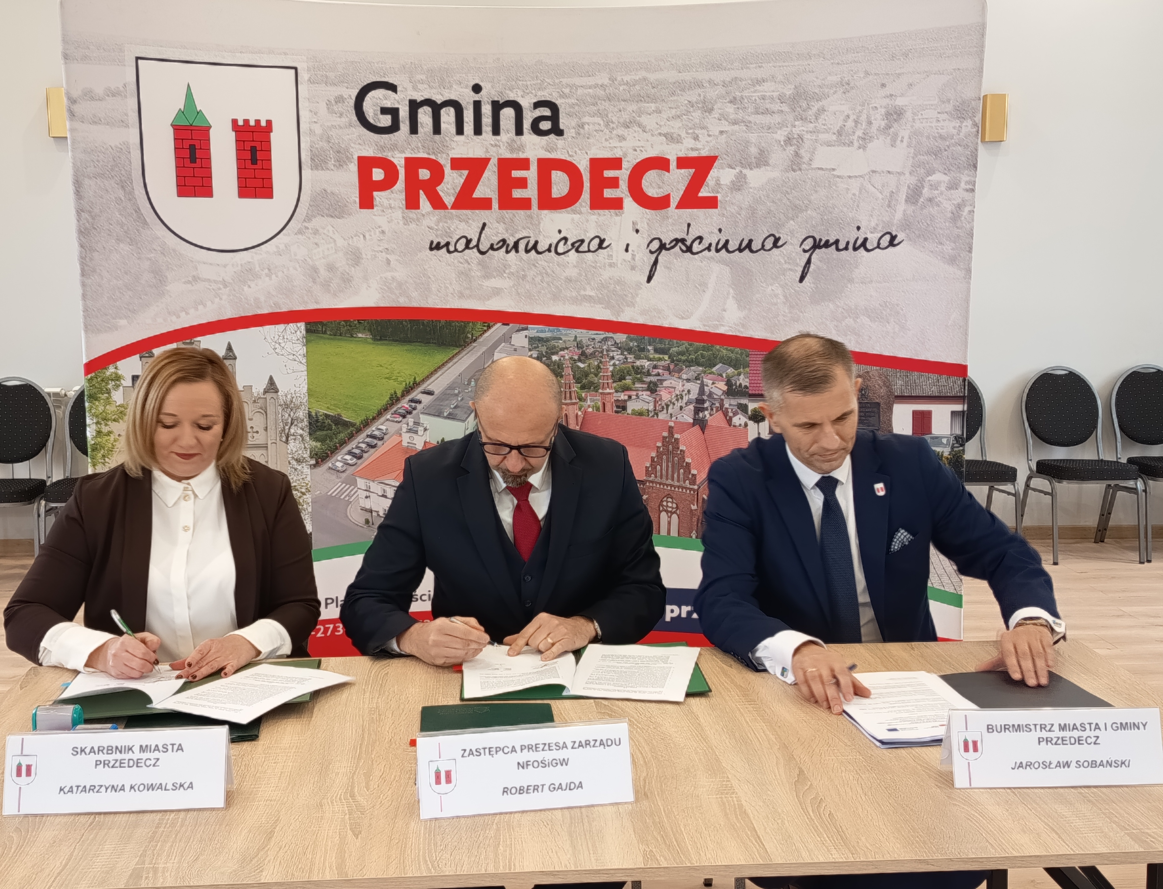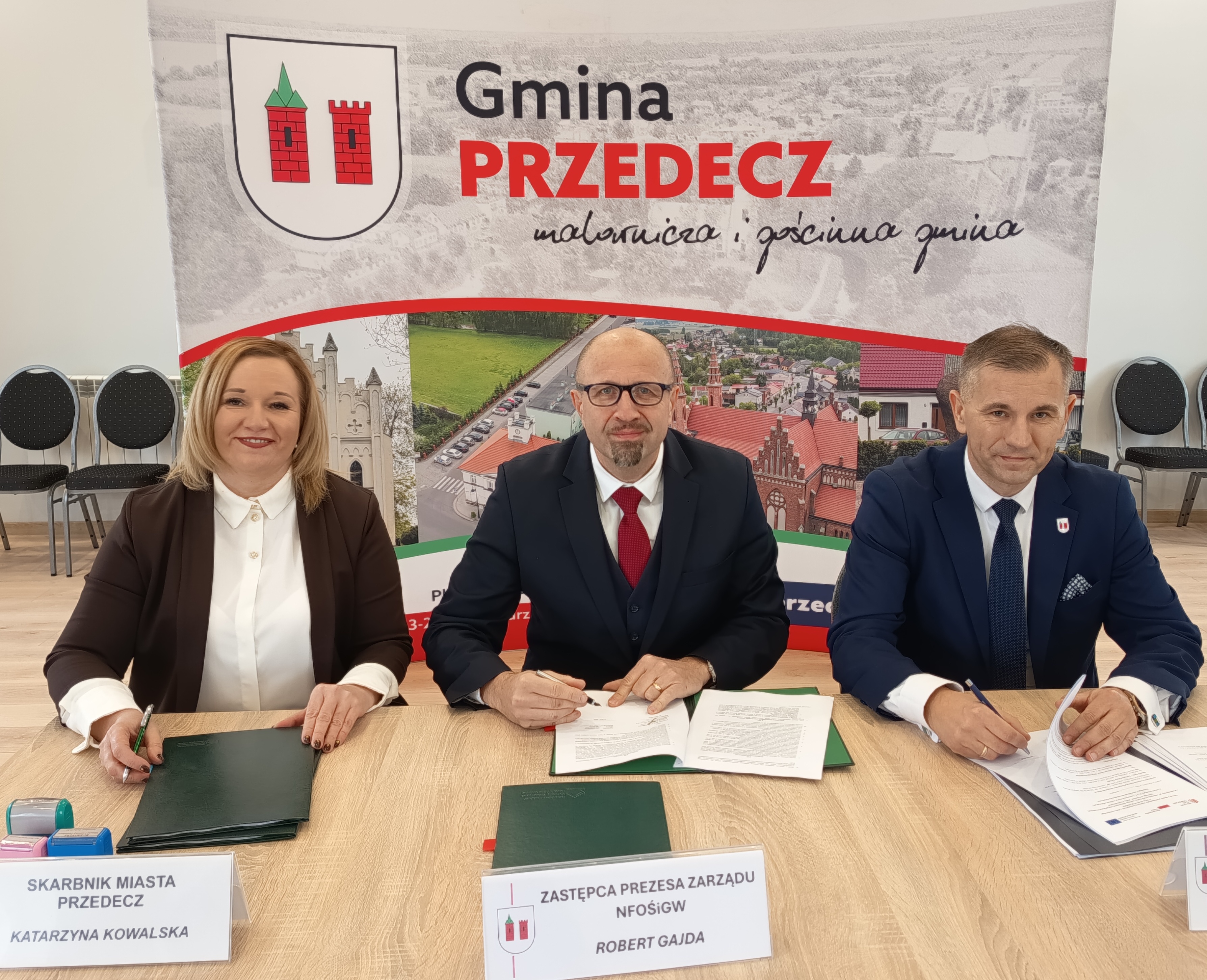- W imieniu NFOŚiGW umowy podpisał zastępca prezesa zarządu Robert Gajda natomiast ze strony beneficjenta – Jarosław Sobański, Burmistrz Miasta i Gminy Przedecz przy kontrasygnacie: Katarzyny Kowalskiej, Skarbnika Miasta Przedecz.
