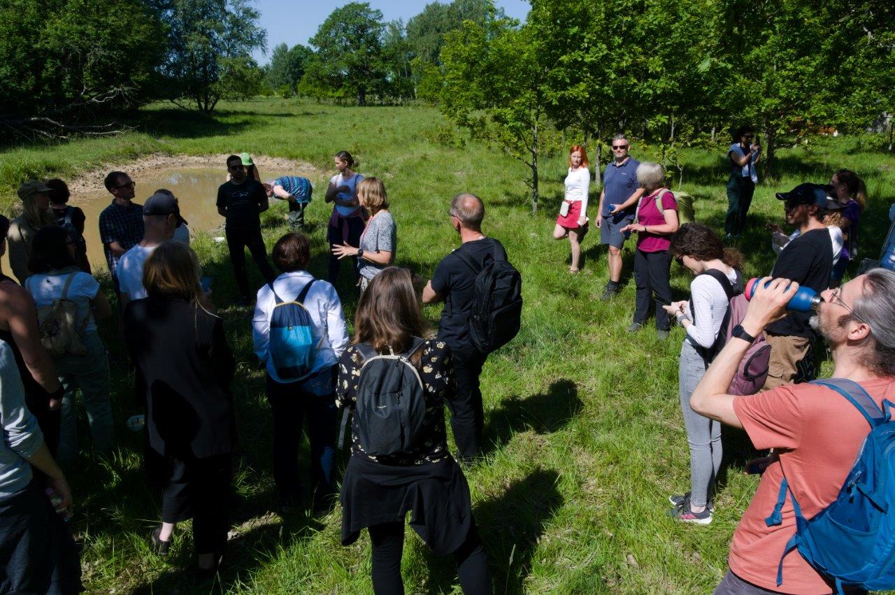 - Pierwszym projektem, z jakim się zapoznaliśmy, był projekt LIFE IP ForEst&FarmLand. Jest to projekt, który zajmuje się ochroną przyrody poprzez wdrażanie priorytetowych ram działań (PAF). W ramach projektu mieliśmy okazję zobaczyć, jak służby ochrony przyrody współpracują z prywatnymi właścicielami na terenie pięknie usytuowanego gospodarstwa z rozległymi pastwiskami, urozmaiconymi kępami drzew oraz majestatycznymi /starymi i szeroko rozłożystymi dębami. W miejscu tym odtworzono kilka zbiorników śródpolnych w celu ochrony płazów i gadów. Z tych działań korzysta nie tylko przyroda, ale także bydło wypasane na pastwiskach.