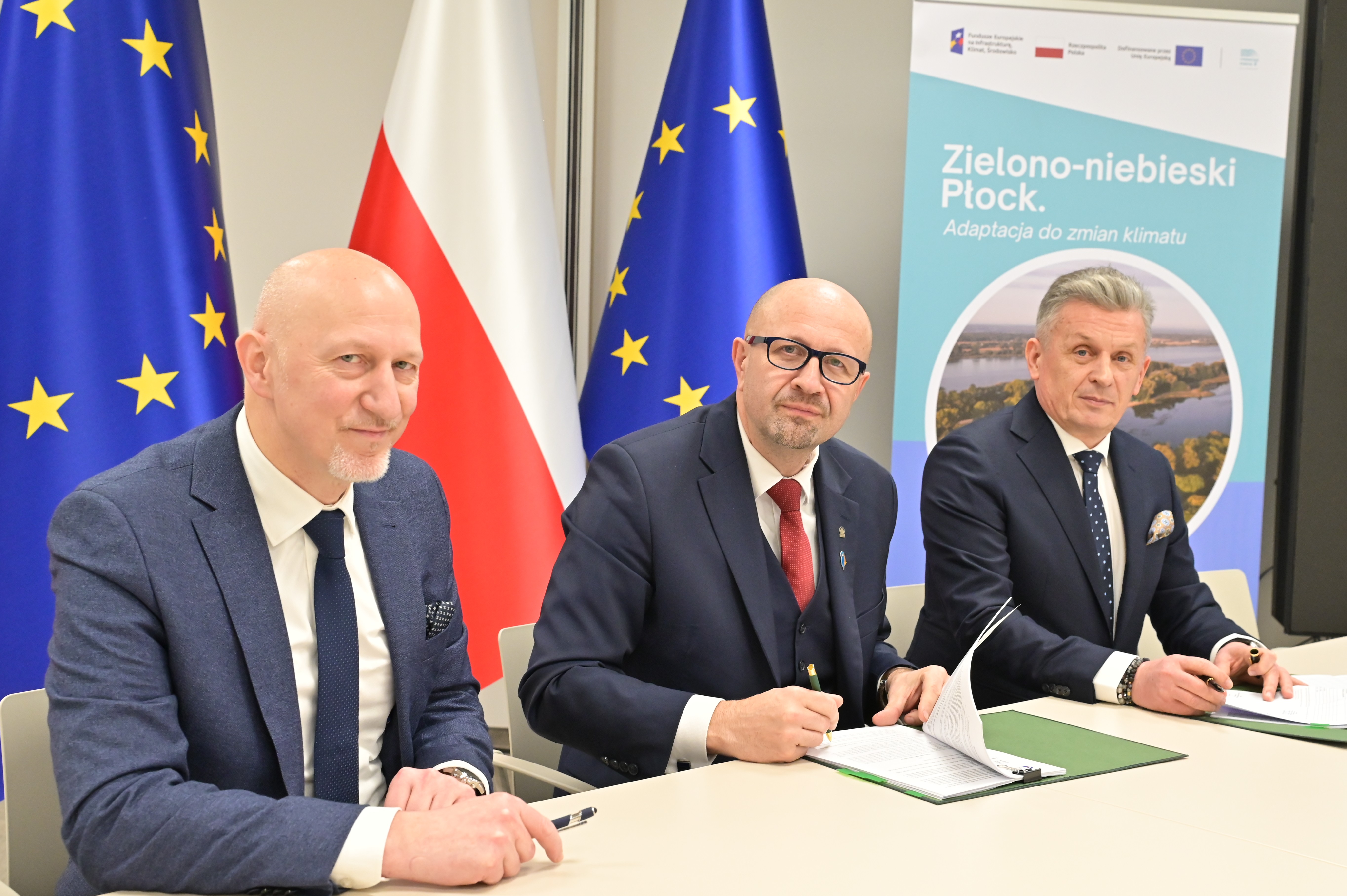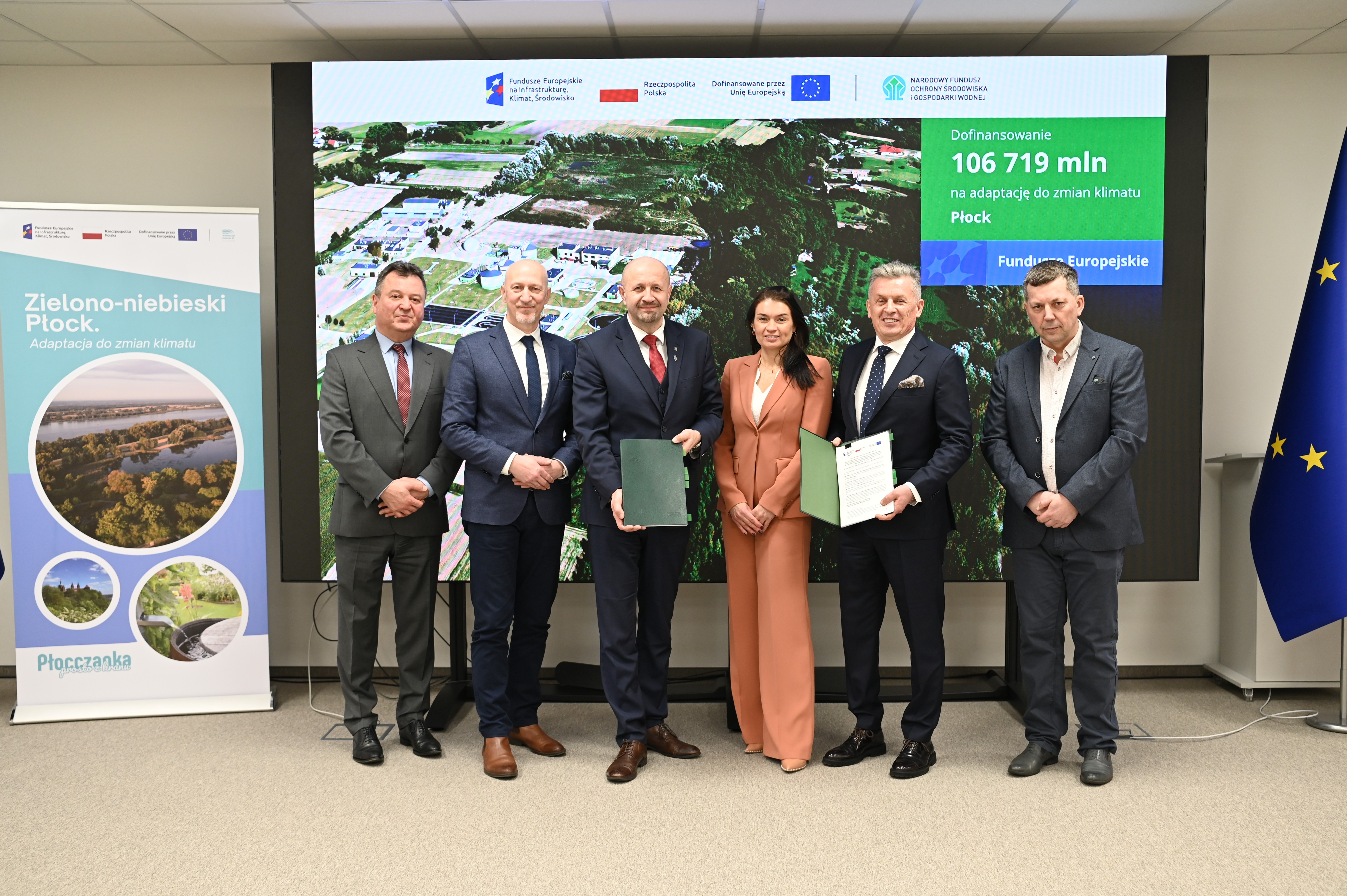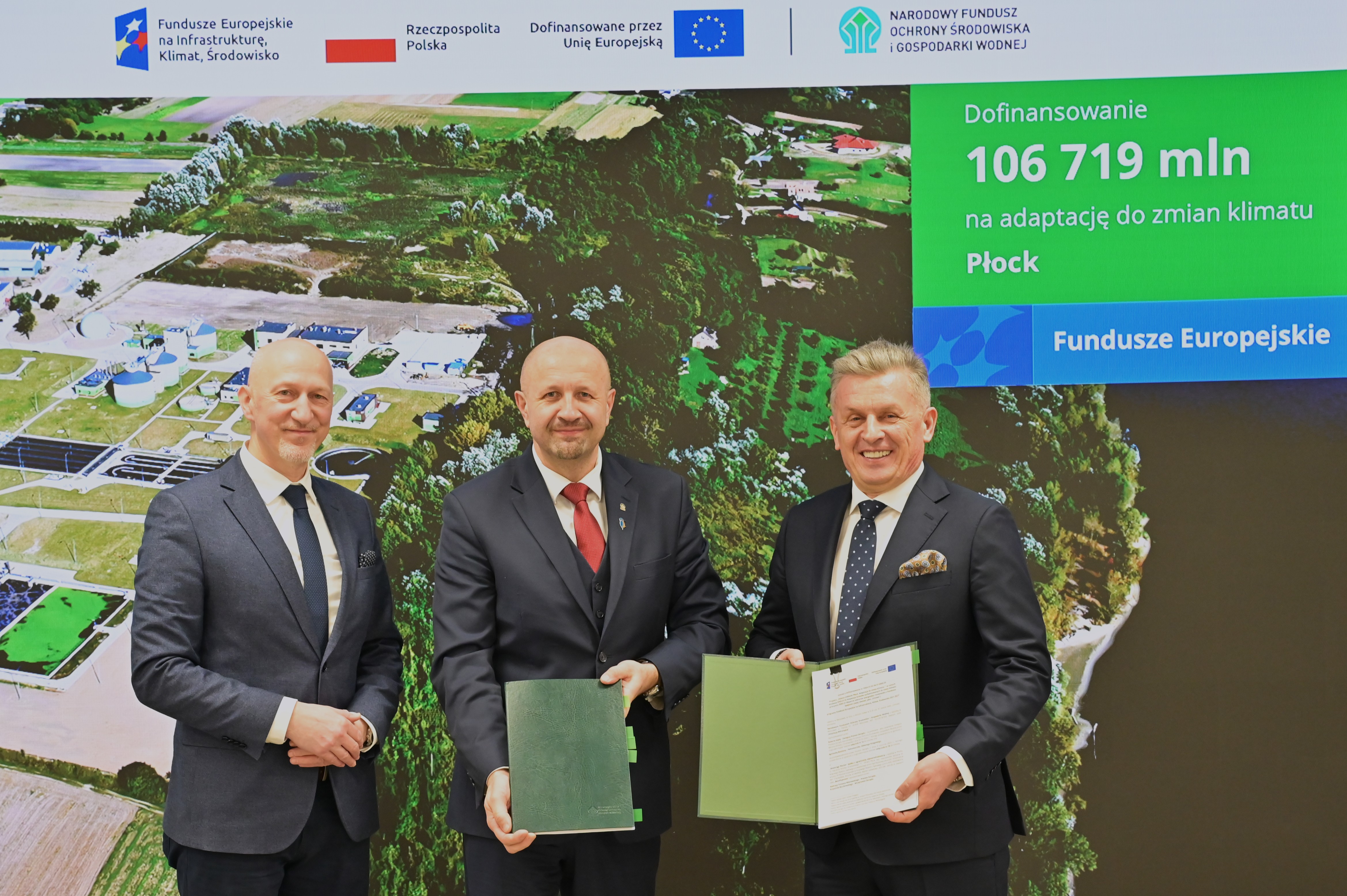 Narodowy Fundusz Ochrony Środowiska i Gospodarki Wodnej (NFOŚiGW) i Wodociągi Płockie podpisały umowę na dofinansowanie zagospodarowania wód opadowych w centrum Płocka. Projekt zwiększy bezpieczeństwa mieszkańców miasta w obliczu zmian klimatycznych. To kolejna inwestycja adaptacyjna finansowana z Funduszy Europejskich, na które NFOŚiGW przeznaczy w całej Polsce 2 mld euro w perspektywie finansowej 2021-2027.