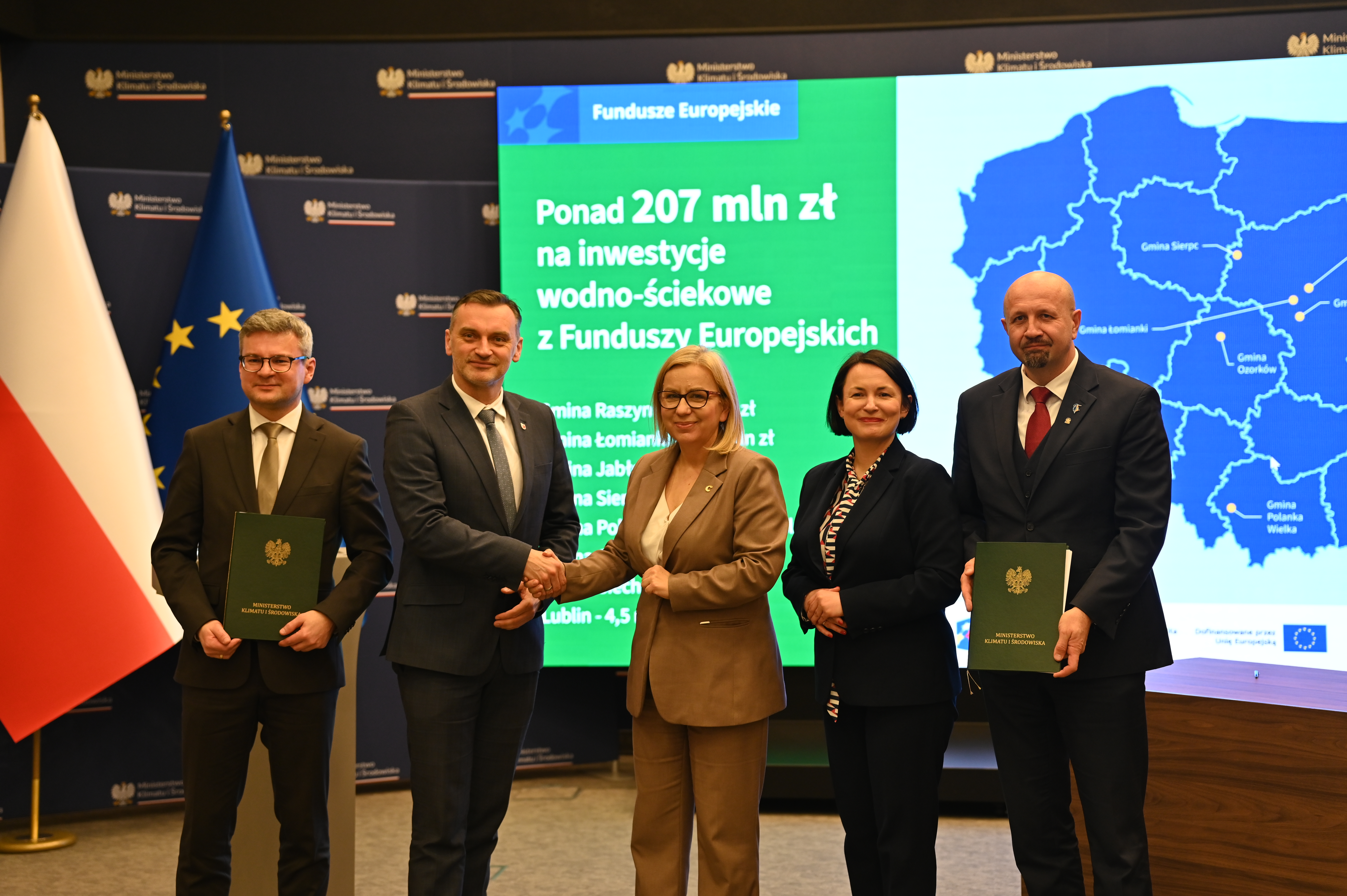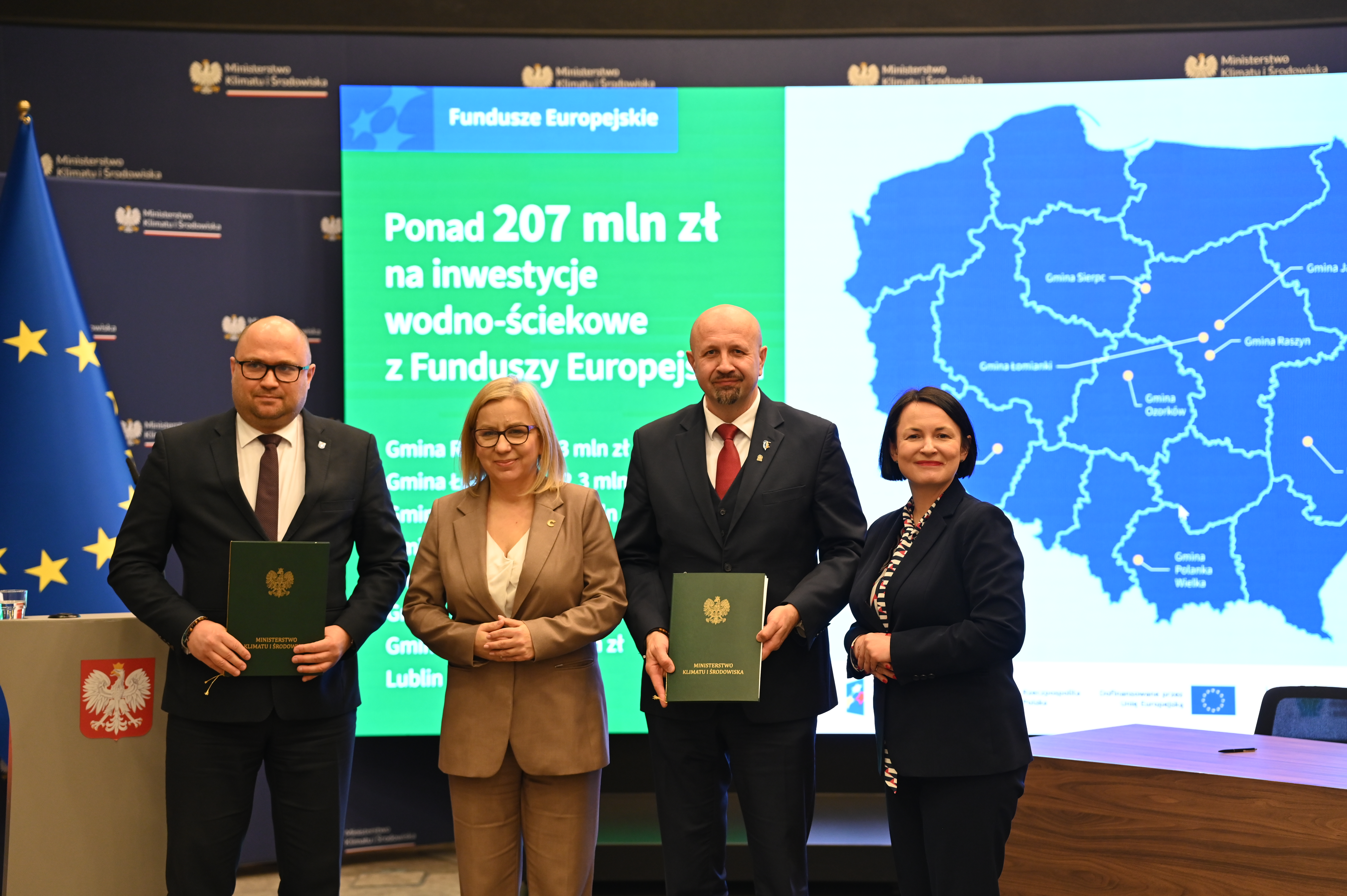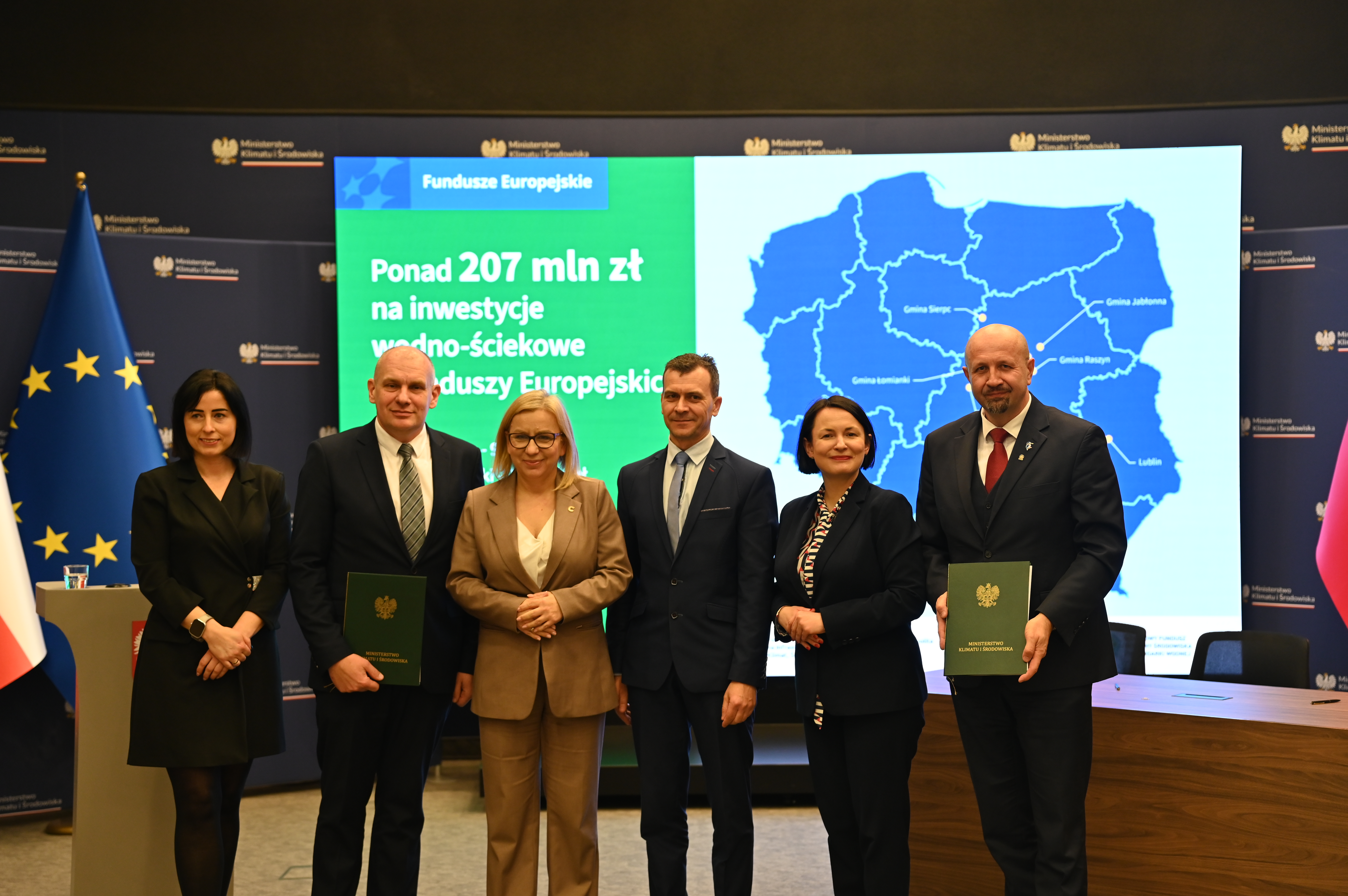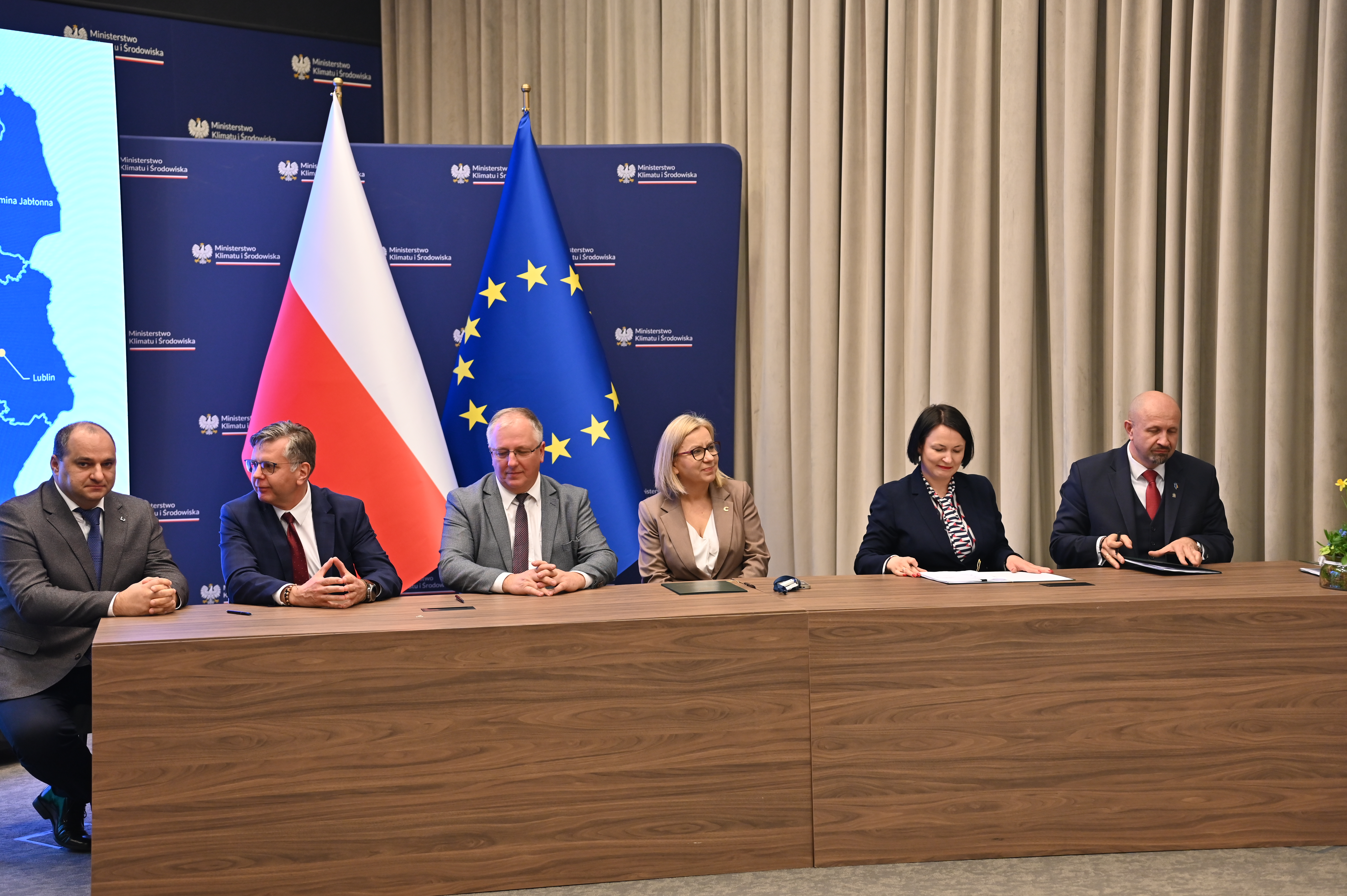 - Umowy podpisali Dorota Zawadzka-Stępniak, prezes zarządu NFOŚiGW, Robert Gajda, zastępca prezesa zarządu NFOŚiGW oraz przedstawiciele beneficjentów: Artur Szymczyk, prezesa zarządu MPWiK Lublin, Sławomir Matyjaszczyk, wiceprezes zarządu MPWiK Lublin; Grzegorz Gałgan, wójt gminy Polanka Wielka, Kamila Mikołajek, skarbnik gminy Polanka Wielka; Paweł Pakieła, dyrektor zarządu spółki MPGK „EMPEGEK” Sierpc; Tomasz Komorowski, prezes zarządu Ozorkowskie Przedsiębiorstwo Komunalne Sp. z o.o., Krzysztof Szaciłowski, wiceprezes zarządu Ozorkowskie Przedsiębiorstwo Komunalne Sp. z o.o.;Leszek Lupa, prezes zarządu Zakładu Gospodarki Komunalnej Sp. z o.o. w Świętej Katarzynie; Jarosław Chodorski, wójt gminy Jabłonna, Joanna Tomaszewska, skarbnik gminy Jabłonna; Sebastian Bodzenta, prezes zarządu ZWiK w Łomiankach, Bożena Cholewa, główna księgowa ZWiK w Łomiankach; Bogumiła Stępińska-Gniadek, wójt gminy Raszyn, Agnieszka Braun, skarbnik gminy Raszyn.