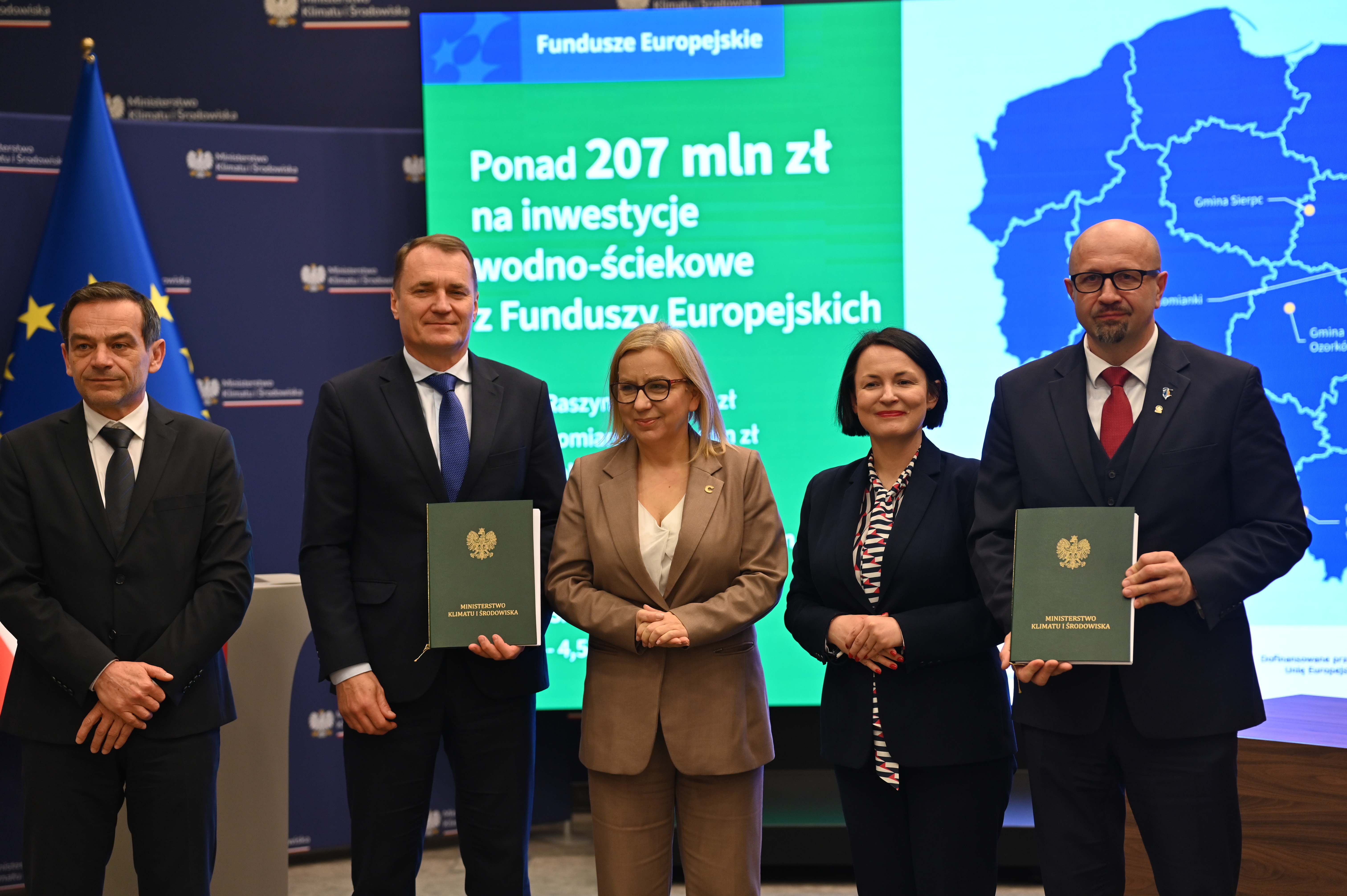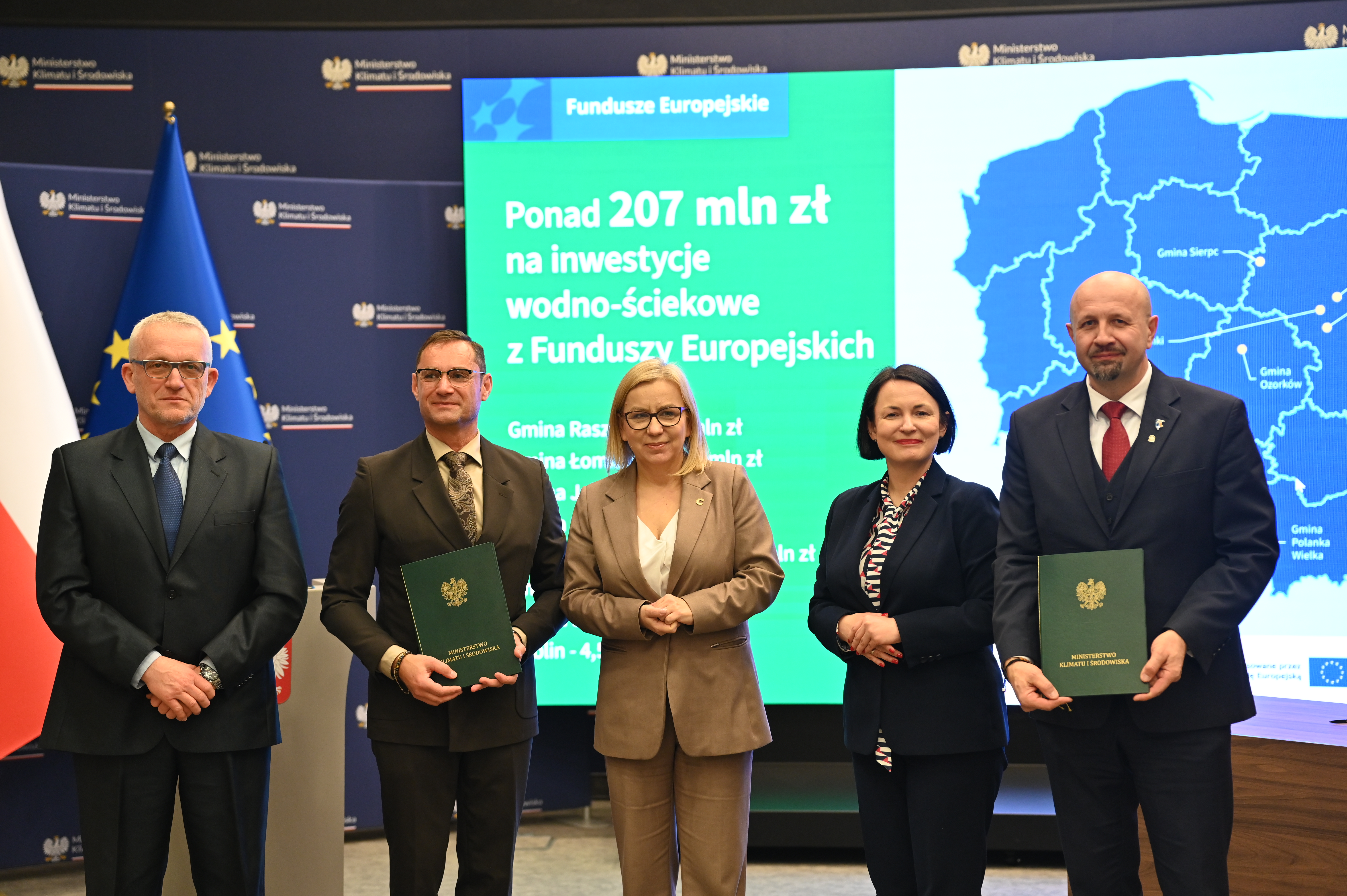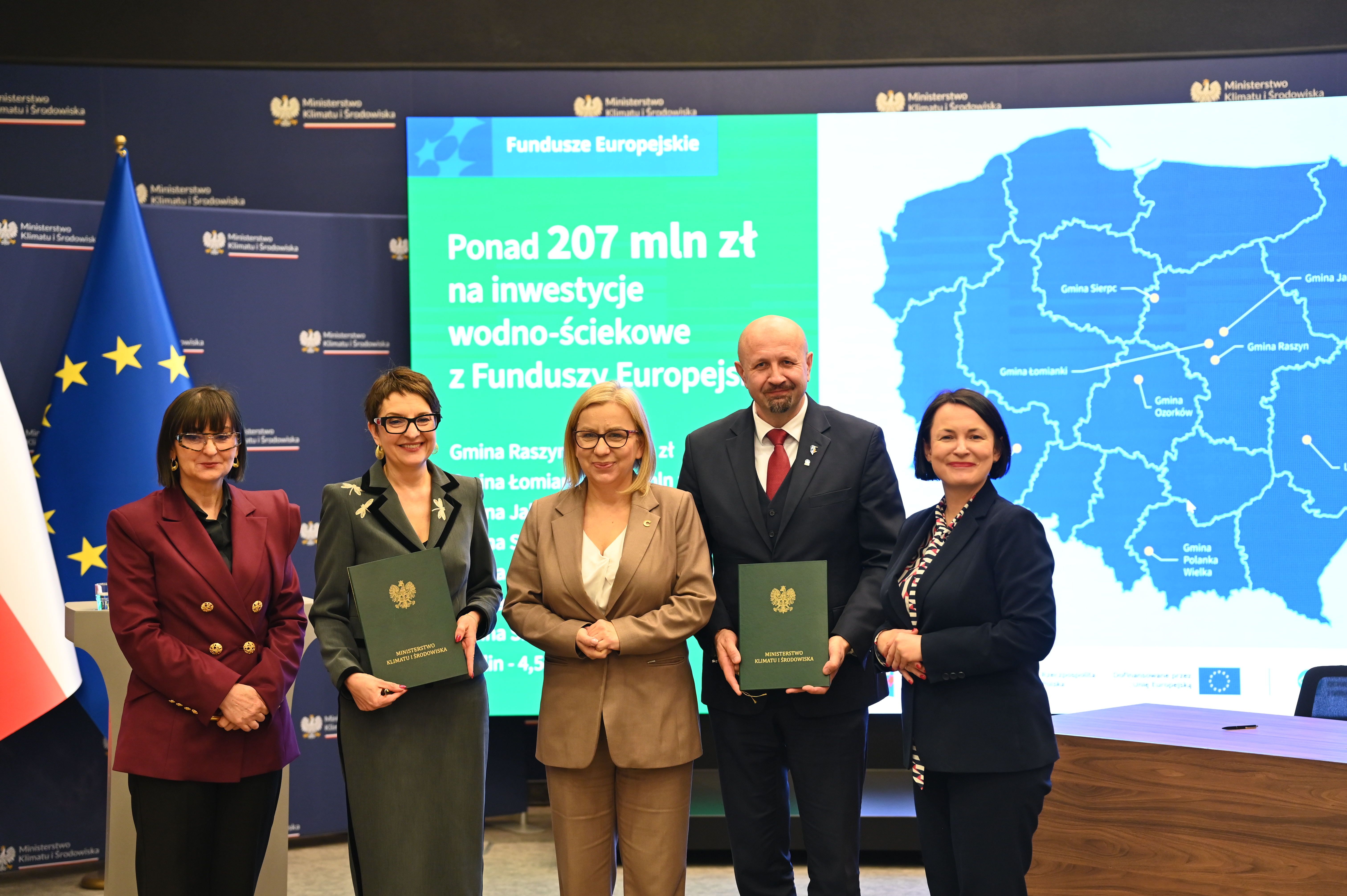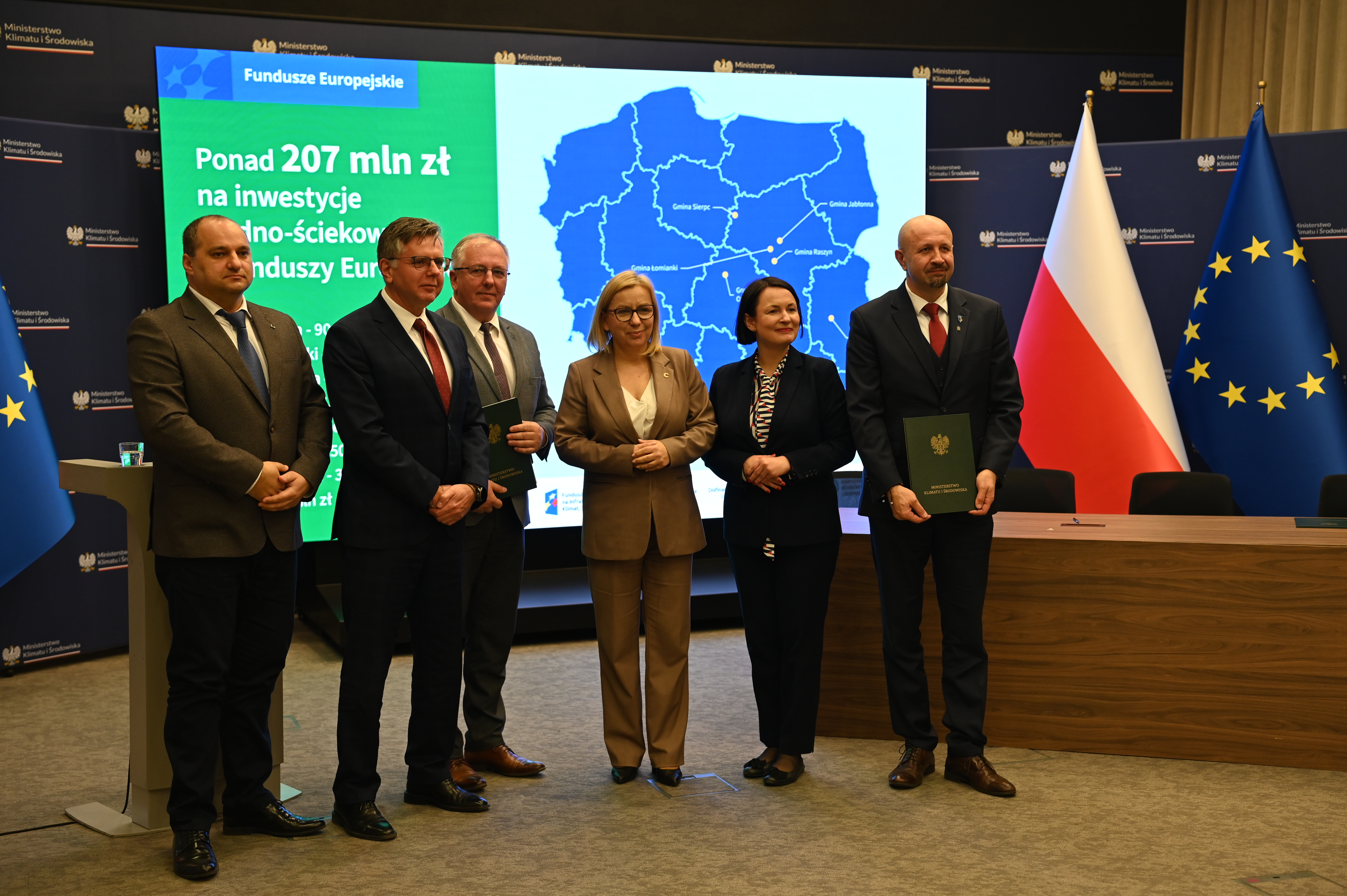 - Umowy podpisali Dorota Zawadzka-Stępniak, prezes zarządu NFOŚiGW, Robert Gajda, zastępca prezesa zarządu NFOŚiGW oraz przedstawiciele beneficjentów: Artur Szymczyk, prezesa zarządu MPWiK Lublin, Sławomir Matyjaszczyk, wiceprezes zarządu MPWiK Lublin; Grzegorz Gałgan, wójt gminy Polanka Wielka, Kamila Mikołajek, skarbnik gminy Polanka Wielka; Paweł Pakieła, dyrektor zarządu spółki MPGK „EMPEGEK” Sierpc; Tomasz Komorowski, prezes zarządu Ozorkowskie Przedsiębiorstwo Komunalne Sp. z o.o., Krzysztof Szaciłowski, wiceprezes zarządu Ozorkowskie Przedsiębiorstwo Komunalne Sp. z o.o.;Leszek Lupa, prezes zarządu Zakładu Gospodarki Komunalnej Sp. z o.o. w Świętej Katarzynie; Jarosław Chodorski, wójt gminy Jabłonna, Joanna Tomaszewska, skarbnik gminy Jabłonna; Sebastian Bodzenta, prezes zarządu ZWiK w Łomiankach, Bożena Cholewa, główna księgowa ZWiK w Łomiankach; Bogumiła Stępińska-Gniadek, wójt gminy Raszyn, Agnieszka Braun, skarbnik gminy Raszyn.