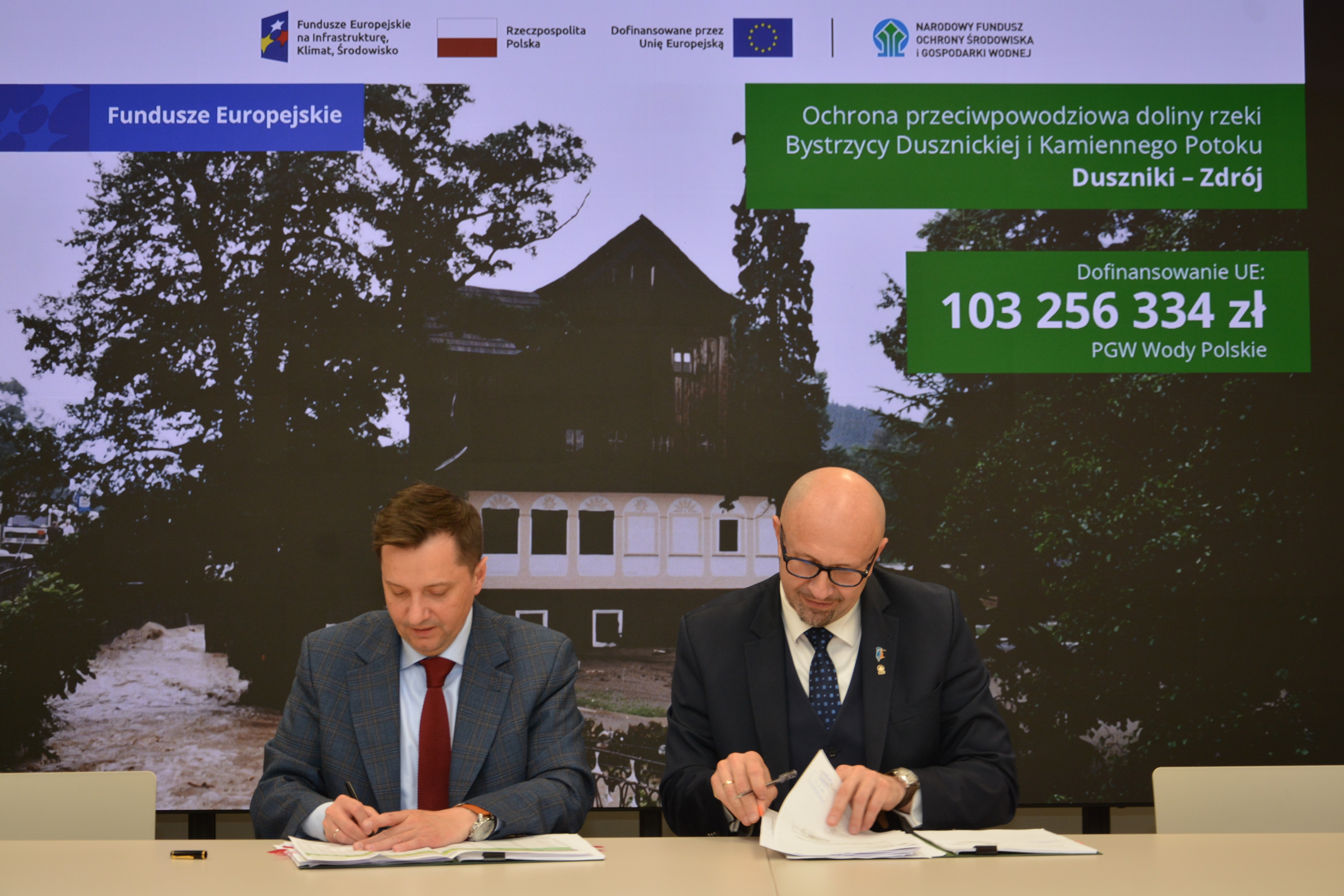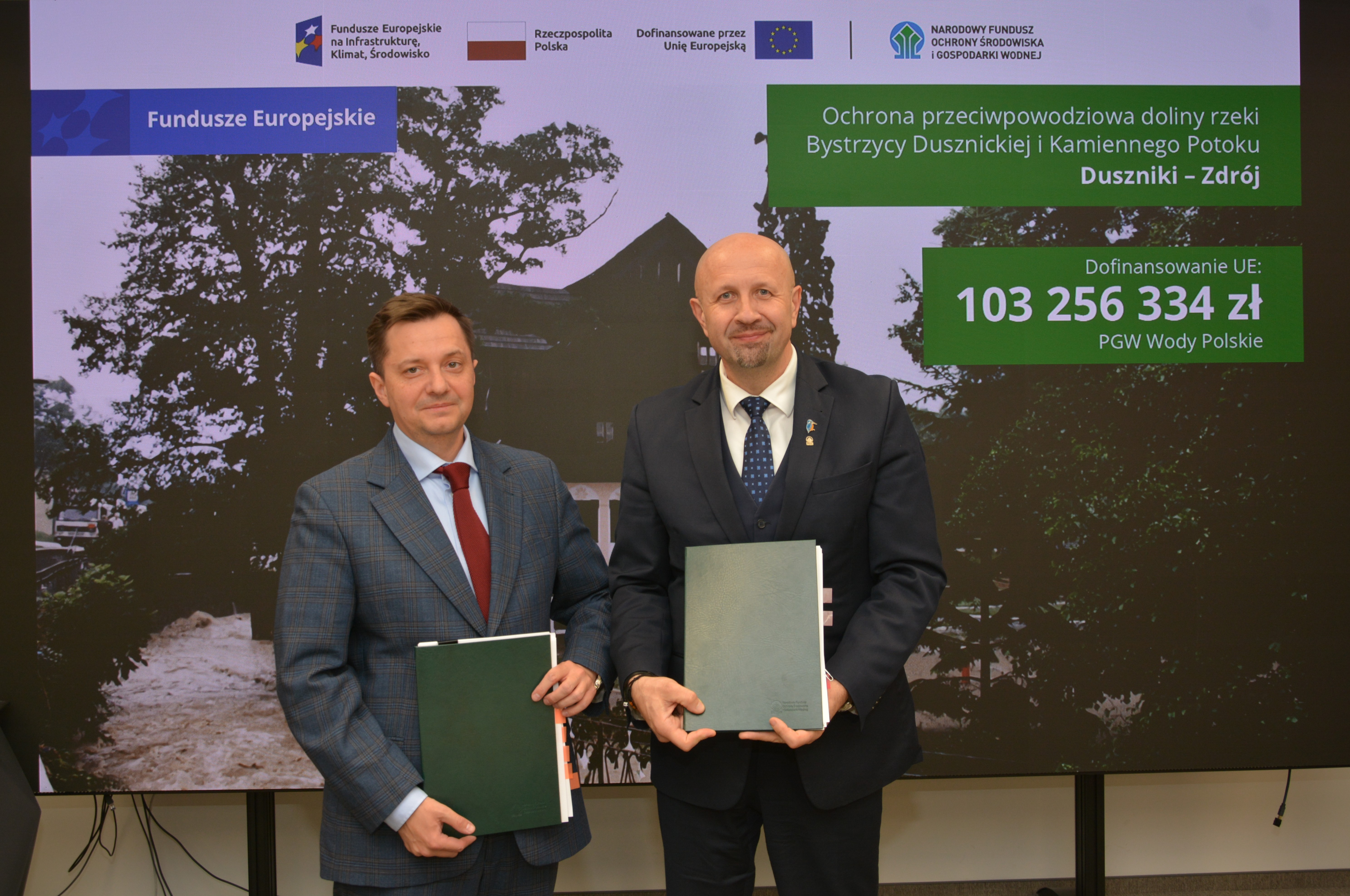 Narodowy Fundusz Ochrony Środowiska i Gospodarki Wodnej (NFOŚiGW) przekaże ponad 103 mln złotych na realizację projektu „Ochrona przeciwpowodziowa doliny rzeki Bystrzycy Dusznickiej i Kamiennego Potoku Duszniki Zdrój, Szczytna - rz. Bystrzyca Dusznicka” w ramach działania FENX.02.04 Adaptacja do zmian klimatu. Państwowe Gospodarstwo Wodne Wody Polskie - RZGW we Wrocławiu otrzyma wsparcie z programu Fundusze Europejskie na Infrastrukturę, Klimat, Środowisko 2021-2027 FEnIKS.