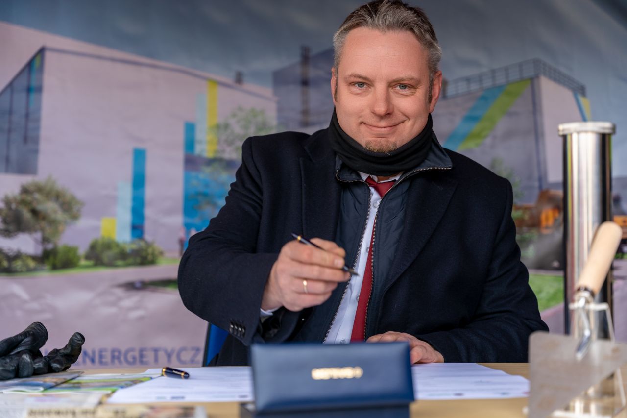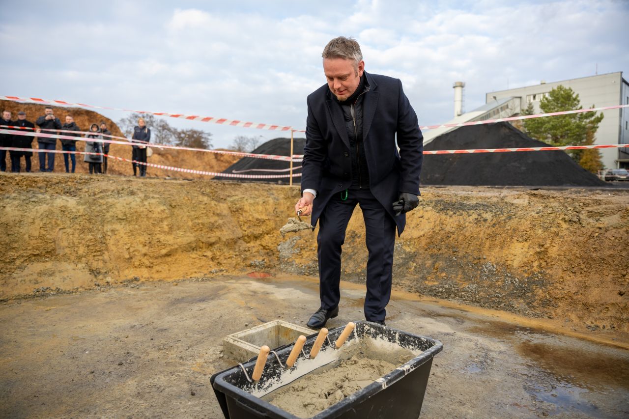 Rozpoczęcie budowy nowej instalacji energetycznej zostało zaakcentowane przez symboliczne wmurowanie kamienia węgielnego.