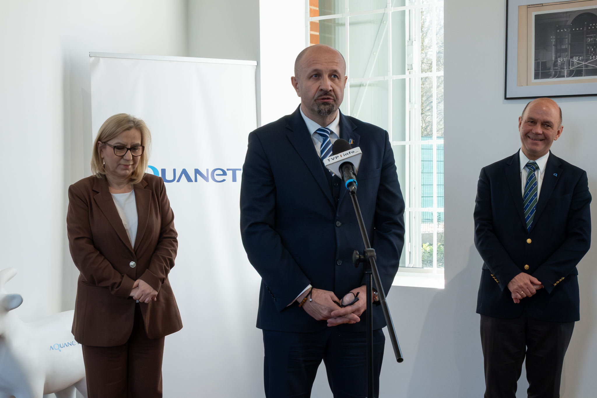 Aquanet S.A. oraz Tymoteusz Pielach dyrektor Departamentu Zarządzania Majątkiem Aquanet S.A. w obecności Pauliny Hennig‑Kloski, minister Klimatu i Środowiska.