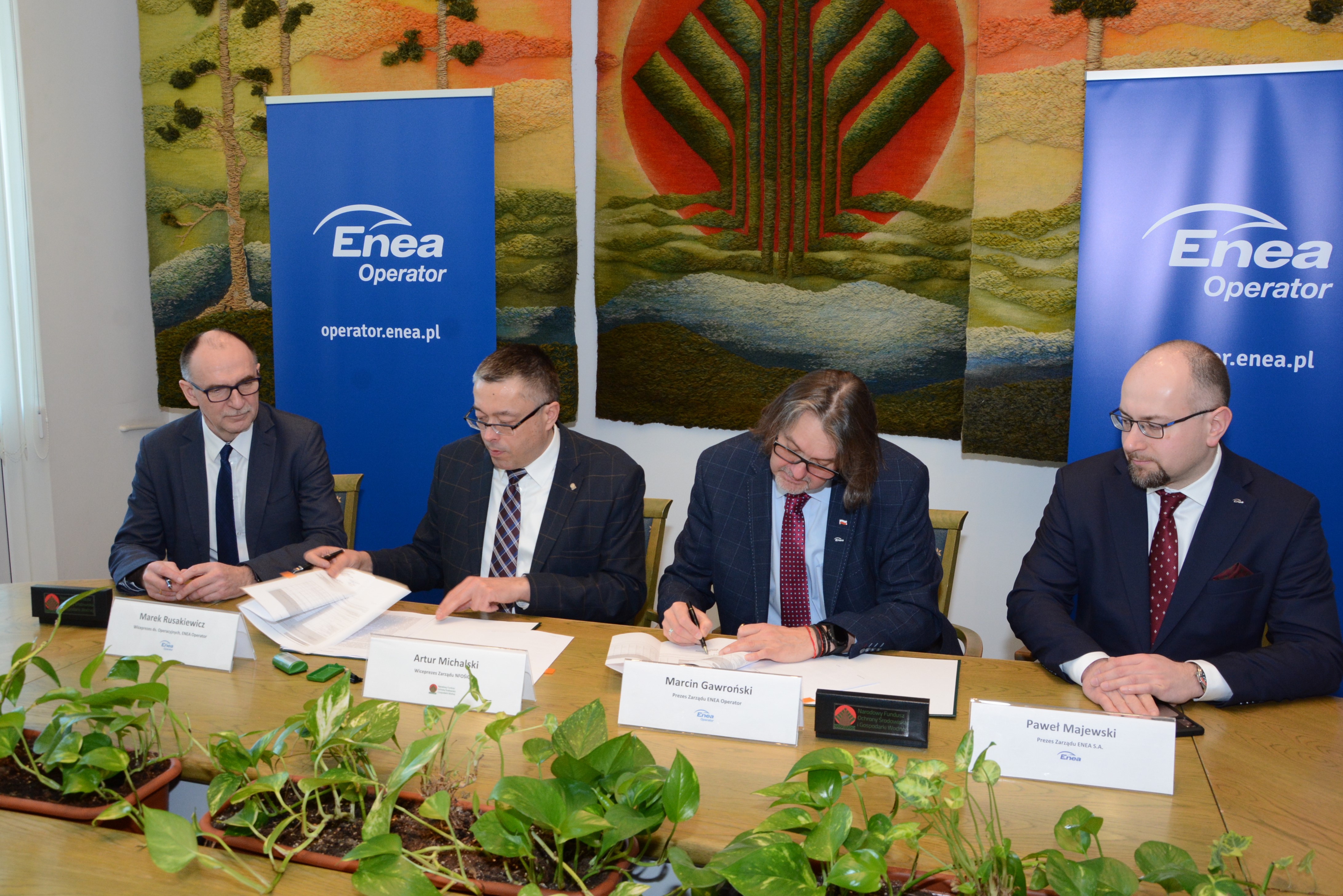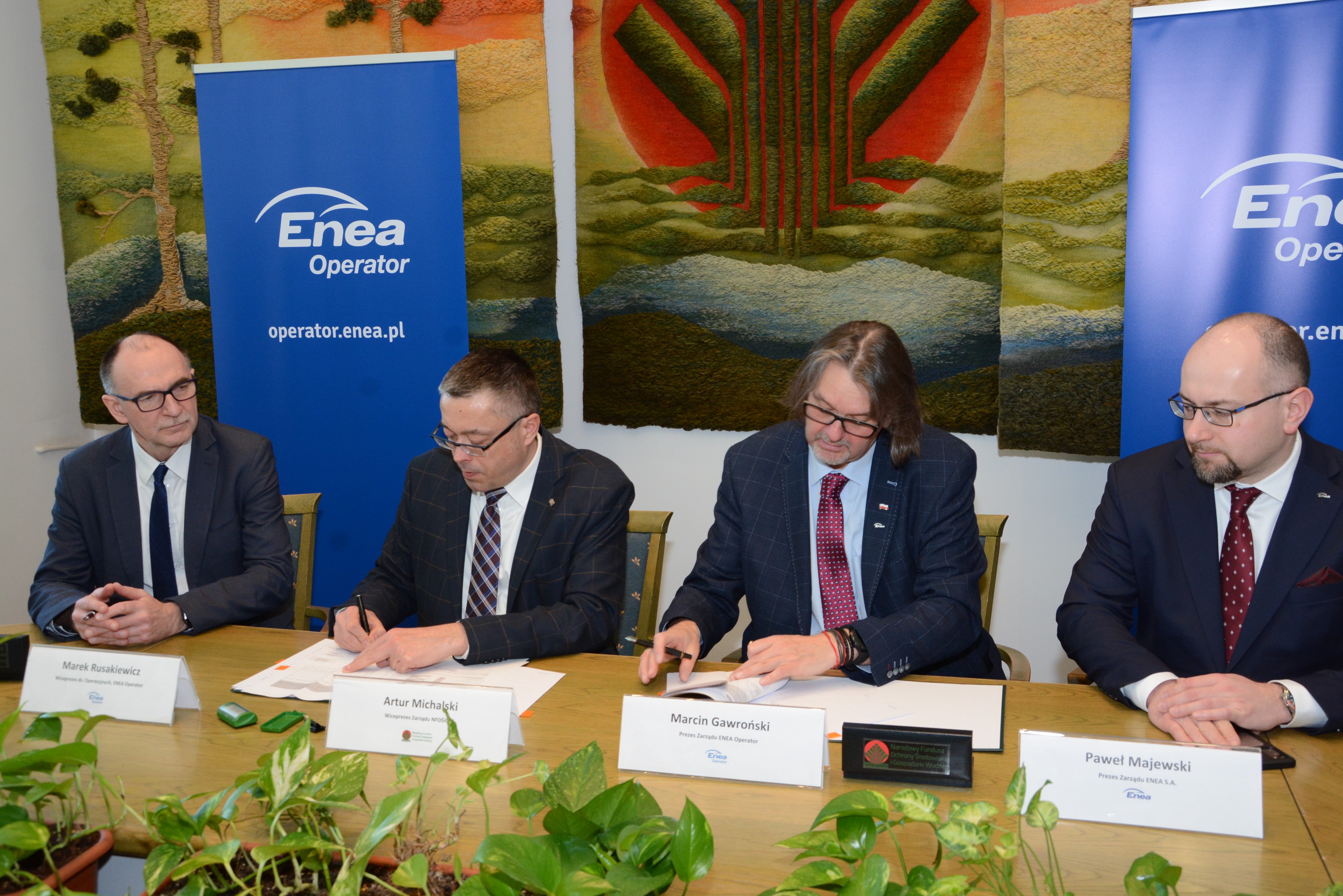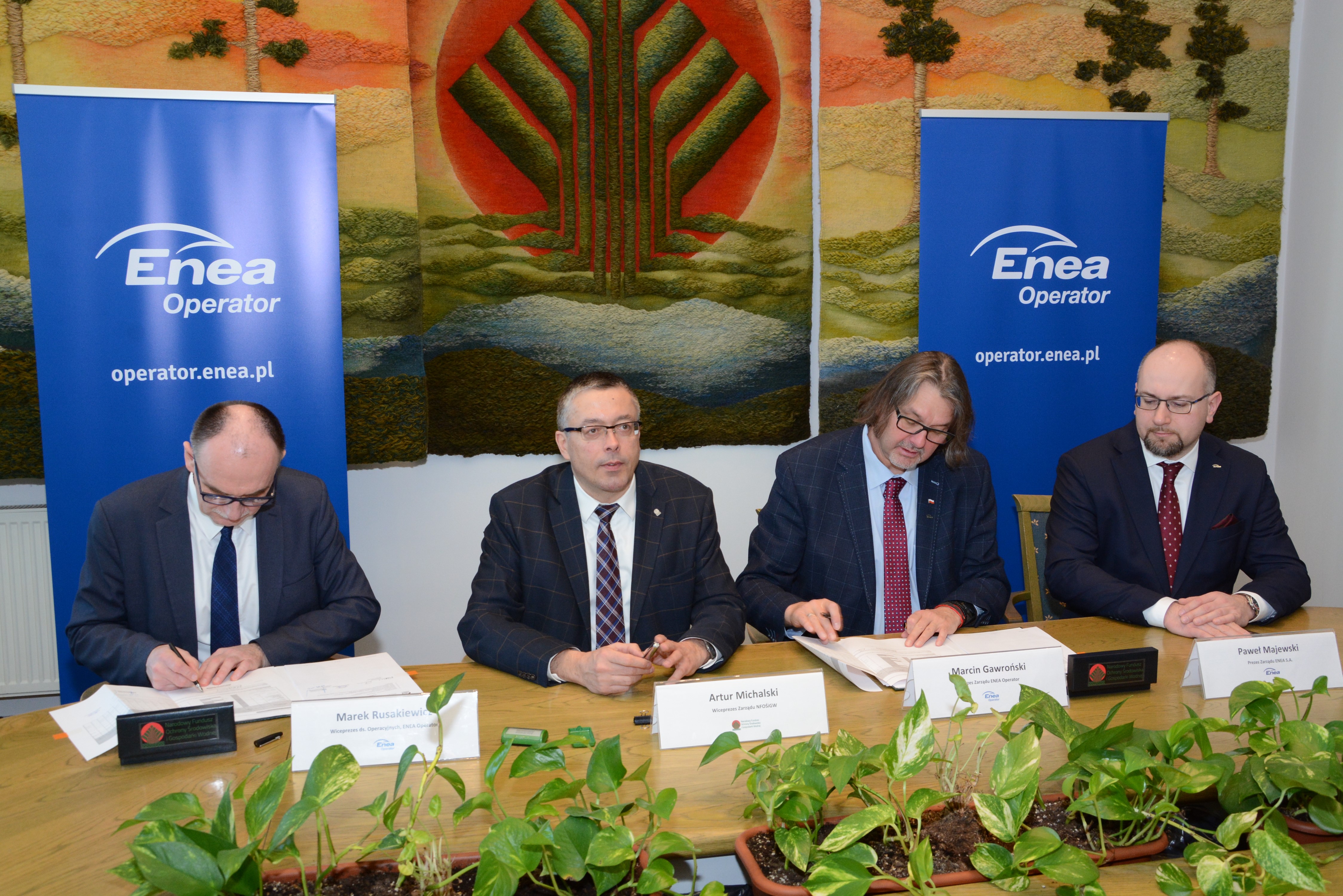Umowa o dofinansowanie przedsięwzięcia została podpisana 29 marca br. w Warszawie przez wiceprezesa zarządu NFOŚiGW Artura Michalskiego oraz prezesa zarządu Marcina Gawrońskiego i wiceprezesa zarządu d.s. operacyjnych Enea Operator Sp. z o.o. Marka Rusakiewicza. W uroczystości uczestniczył prezes zarządu Enea S.A. Paweł Majewski
