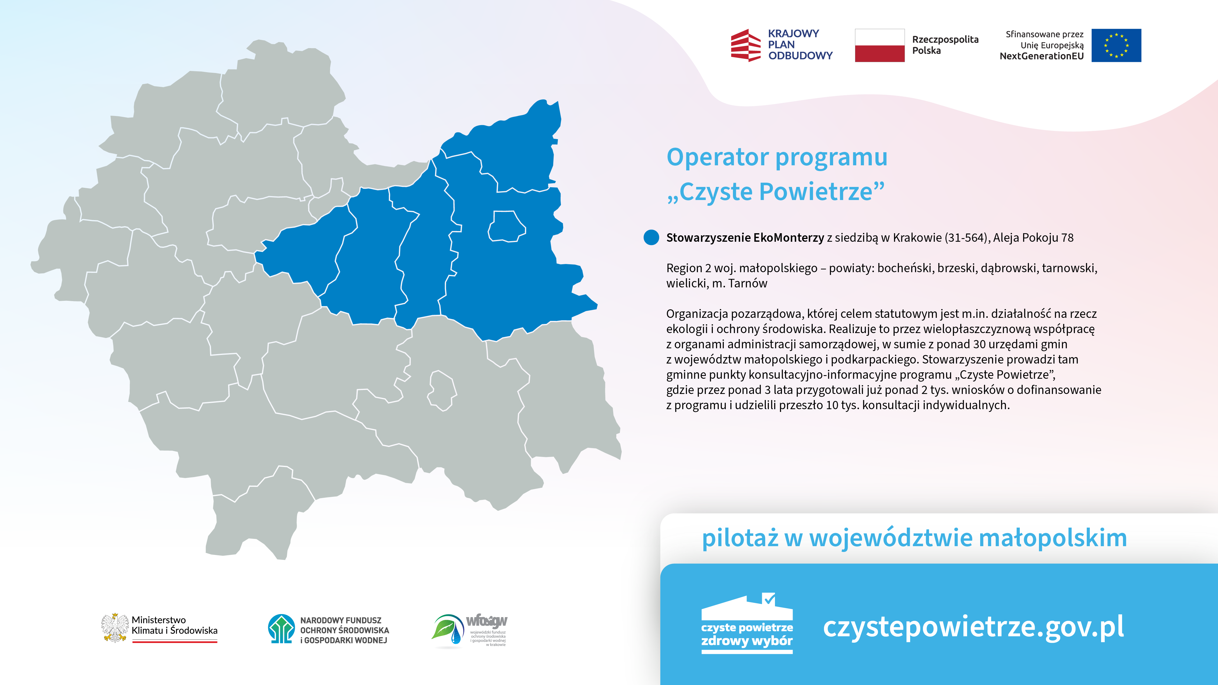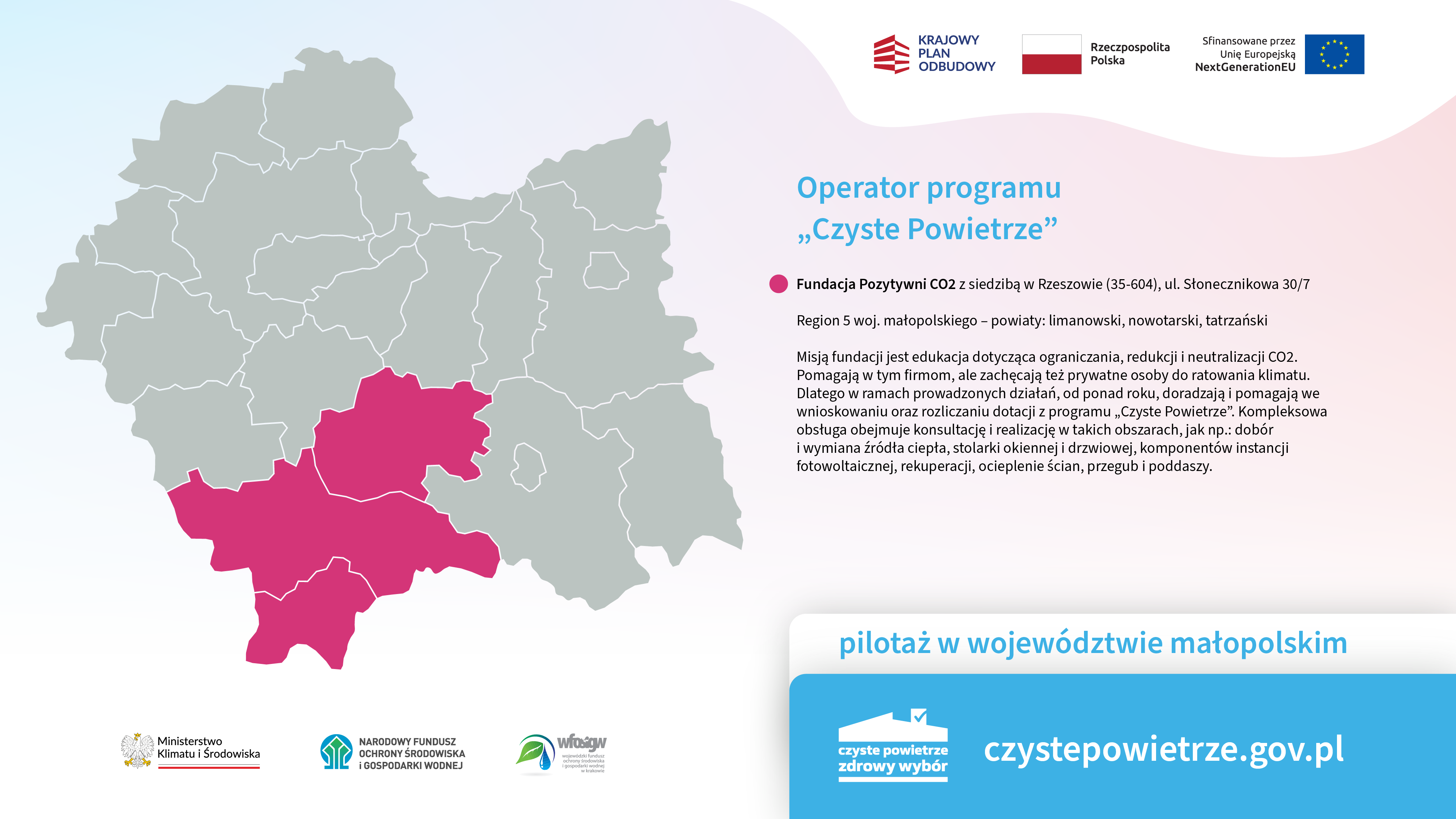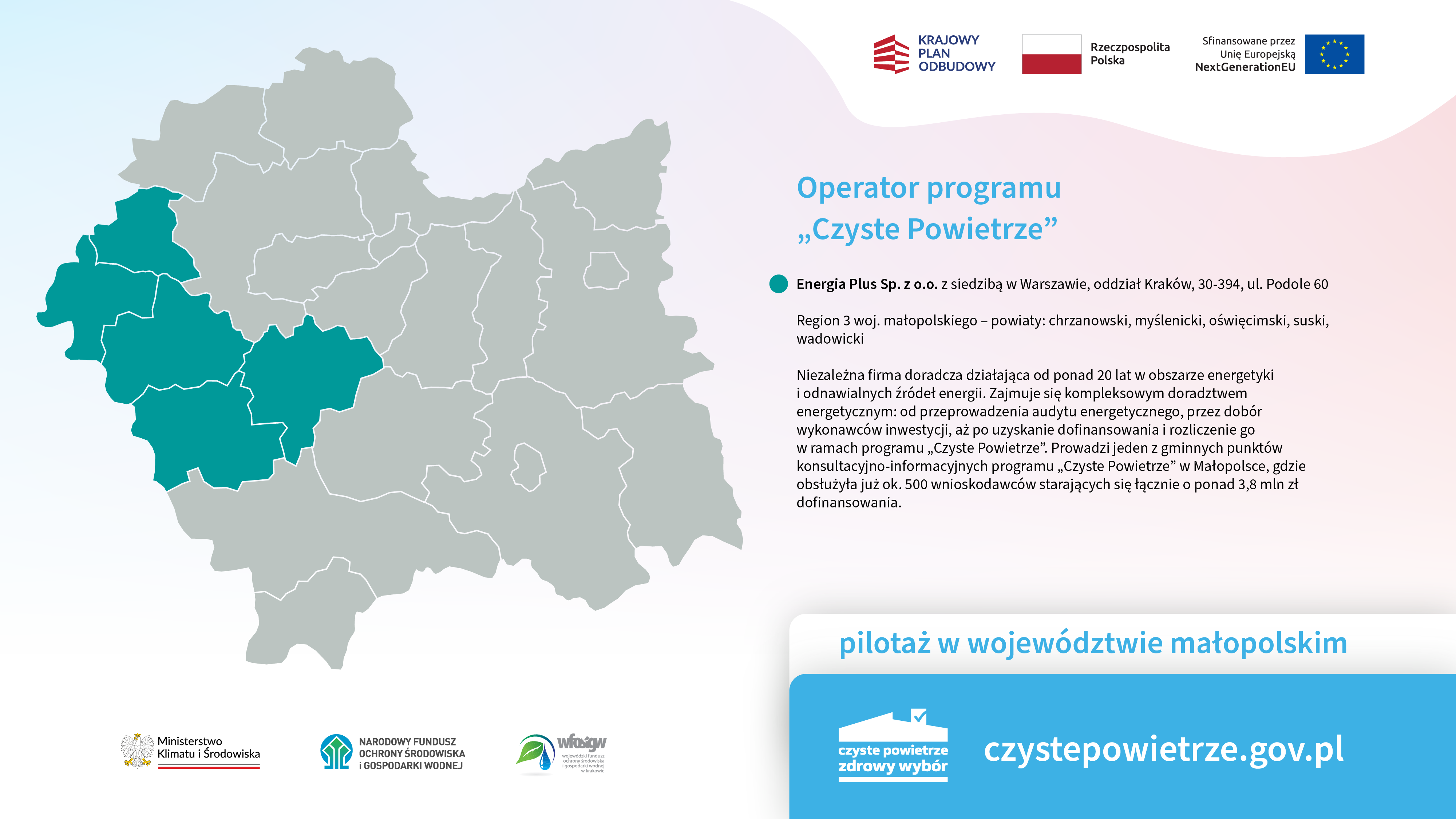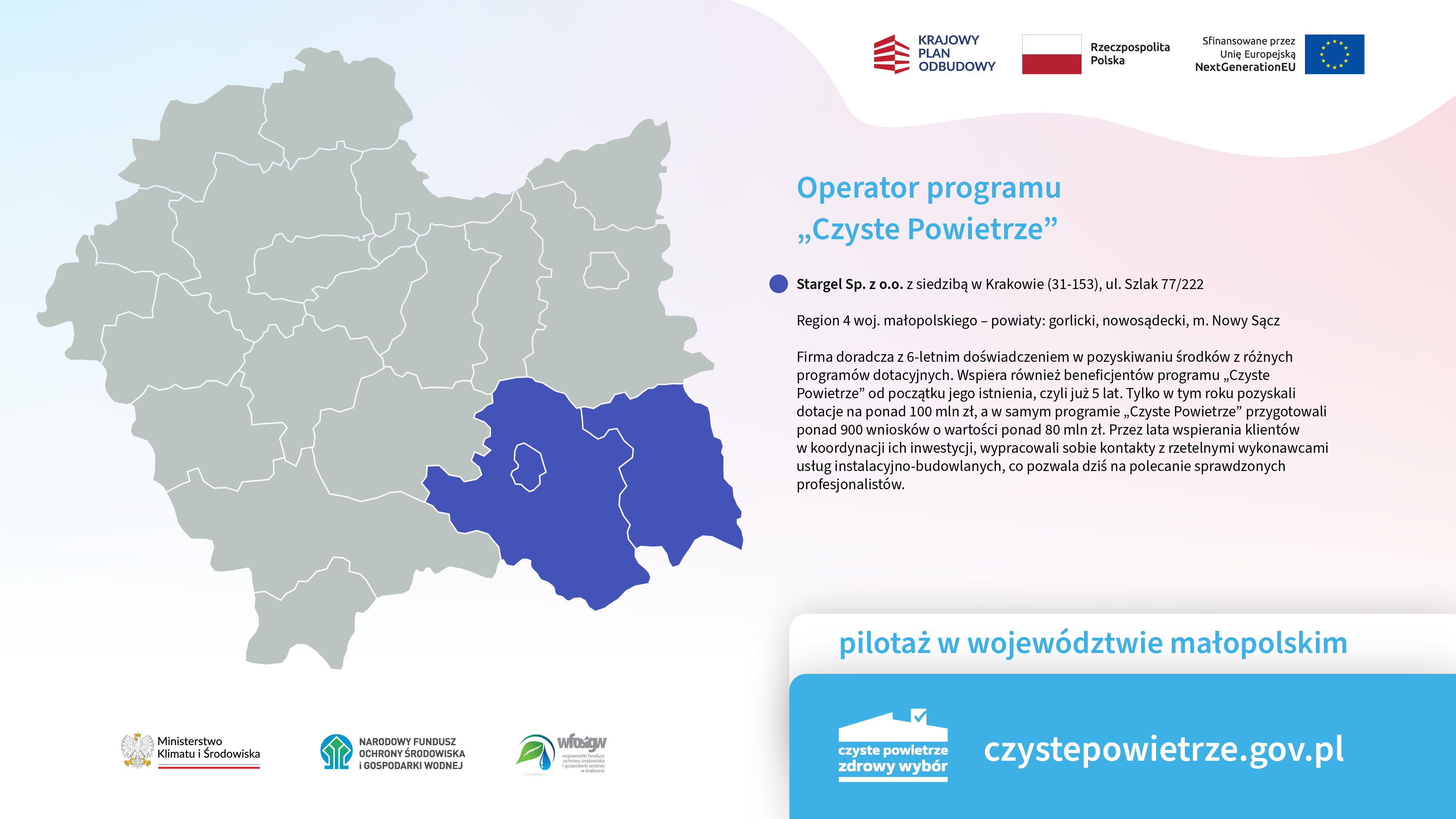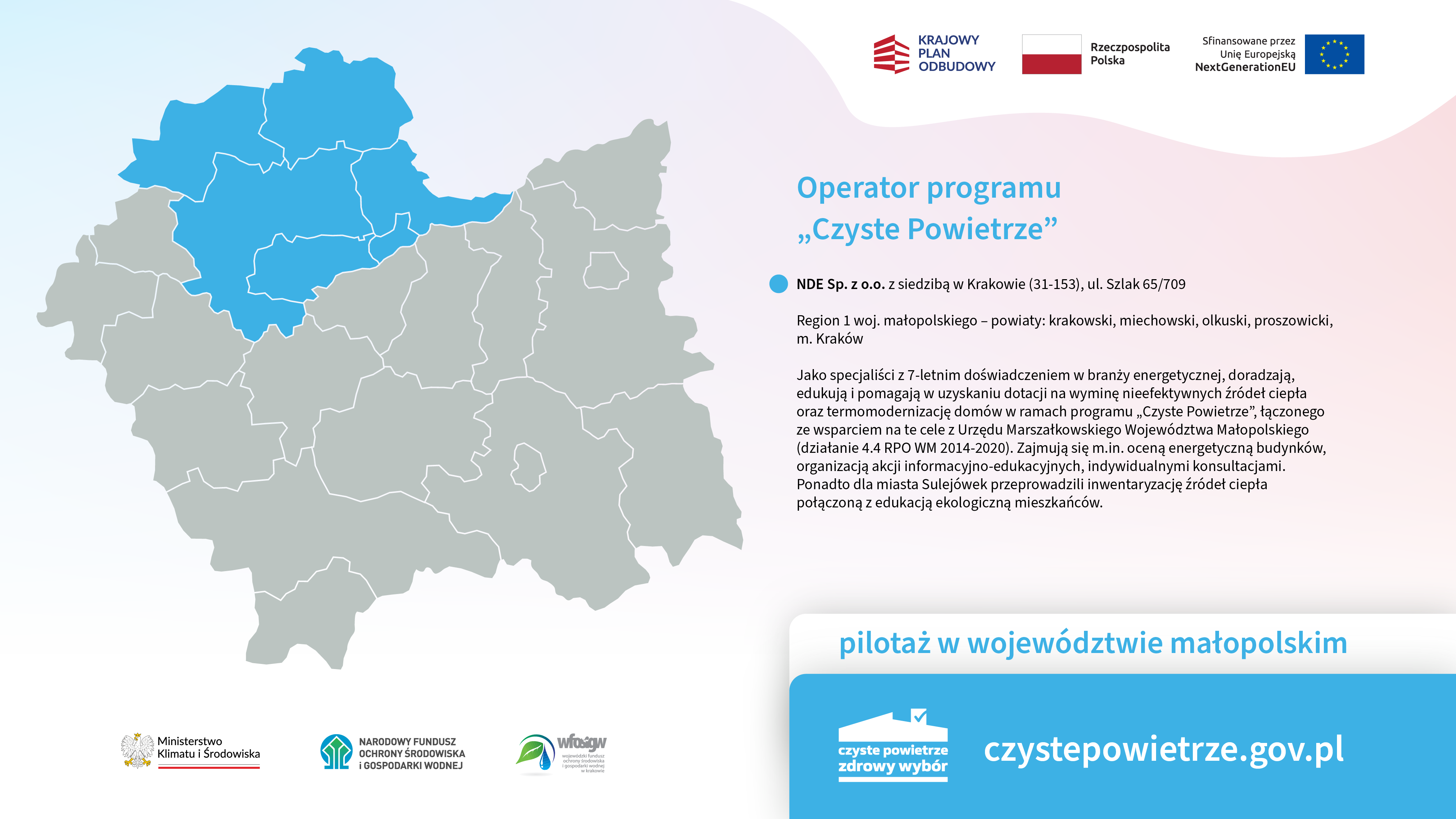 NDE Sp. z o.o., Stowarzyszenie EkoMonterzy, EnergiaPlus Sp. z o.o., Stargel Sp. z o.o. oraz Fundacja Pozytywni CO2 – na postawie podpisanych umów z Narodowym Funduszem Ochrony Środowiska i Gospodarki Wodnej – dołączyli do grupy operatorów programu „Czyste Powietrze” w Małopolsce.