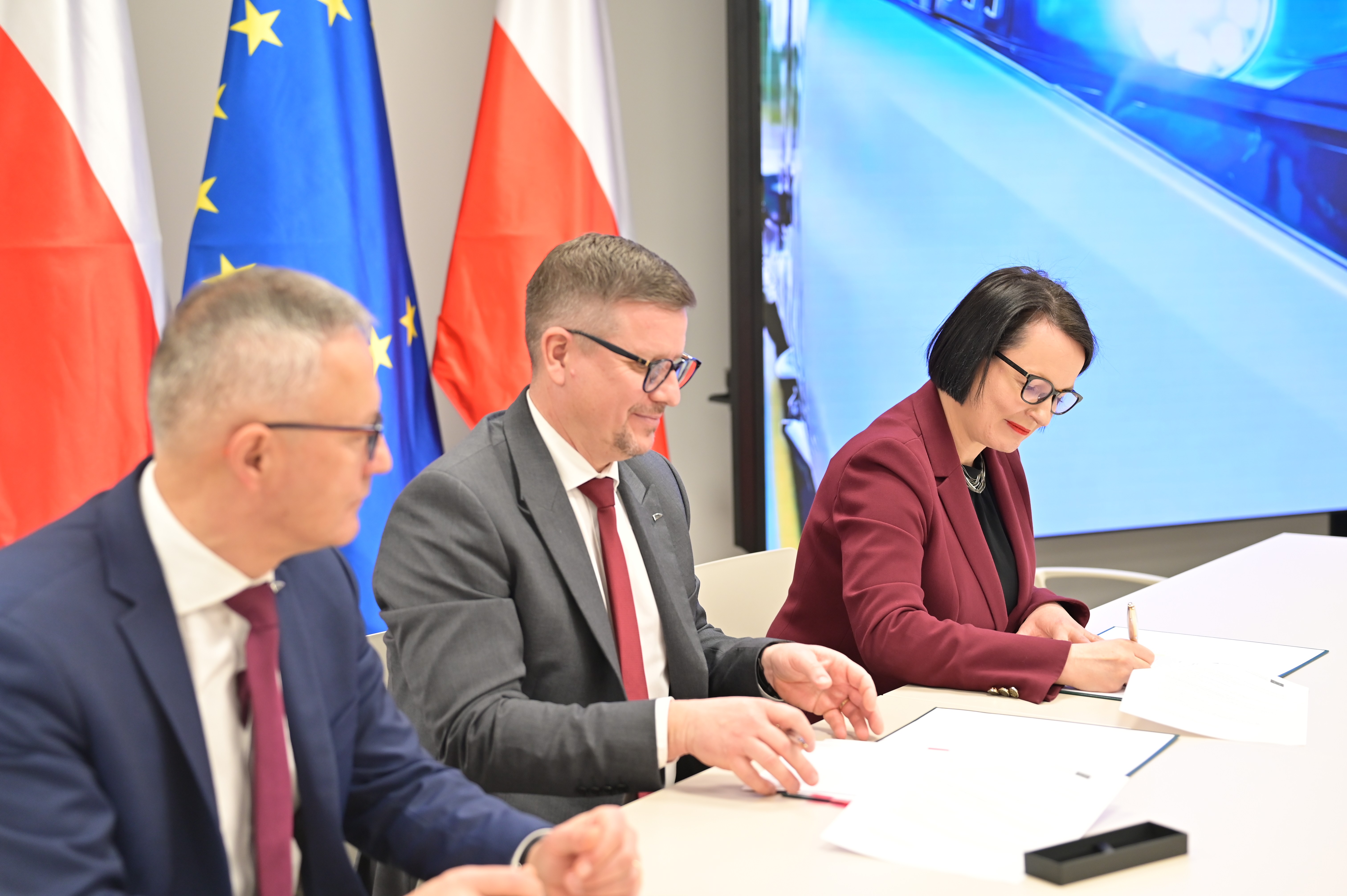 - Umowę podpisała Dorota Zawadzka-Stępniak, prezes zarządu NFOŚiGW oraz Robert Tafiłowski i Maciej Maciejewski, wiceprezesi PESA. W spotkaniu wzięli udział Paulina Hennig-Kloska, ministra Klimatu i Środowiska, Piotr Malepszak, wiceminister Infrastruktury, Mirosław Suchoń, przewodniczący Komisji Infrastruktury oraz Maciej Grześkowiak, dyrektor Projektów Strategicznych i Komunikacji PESA.