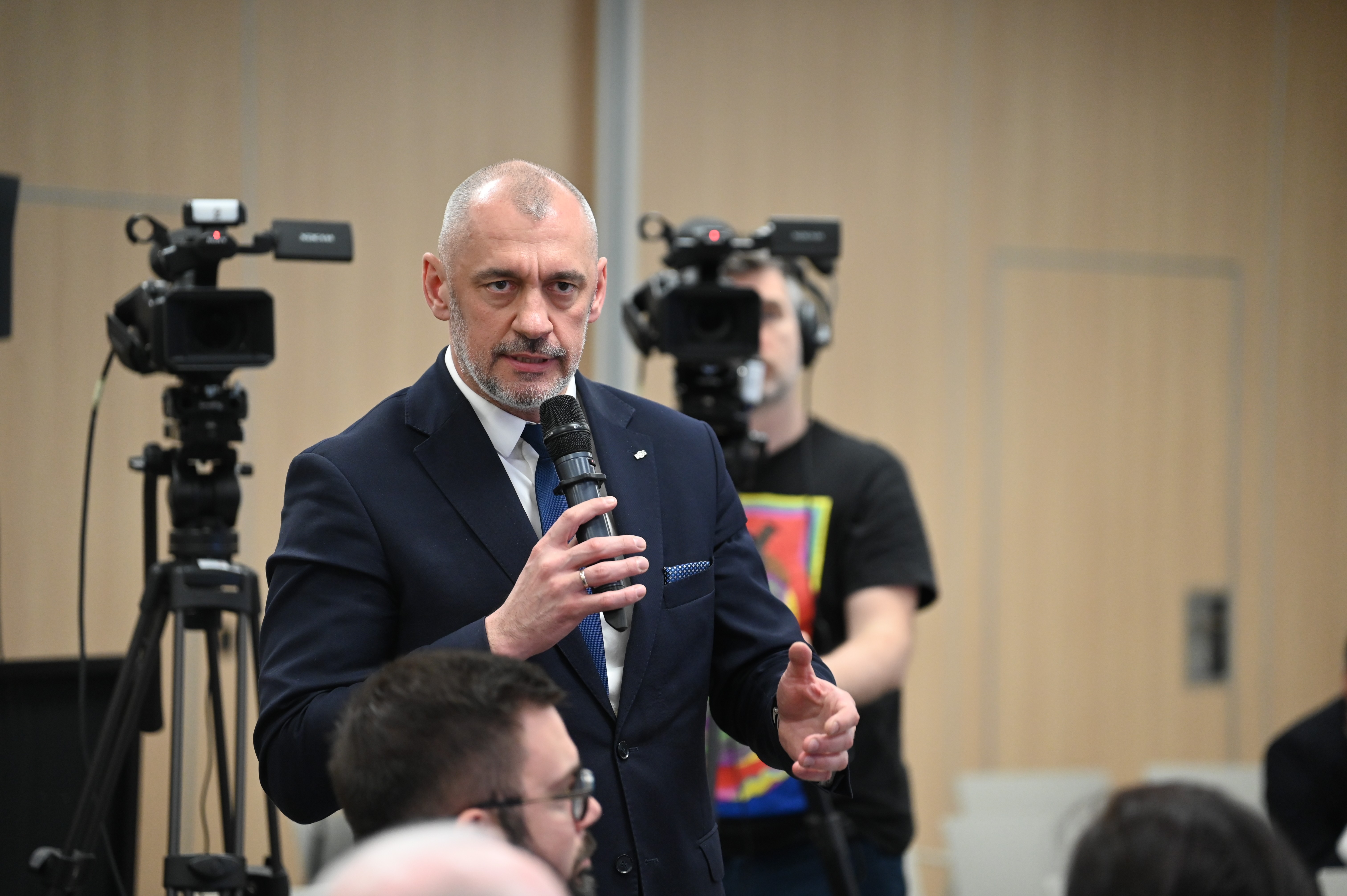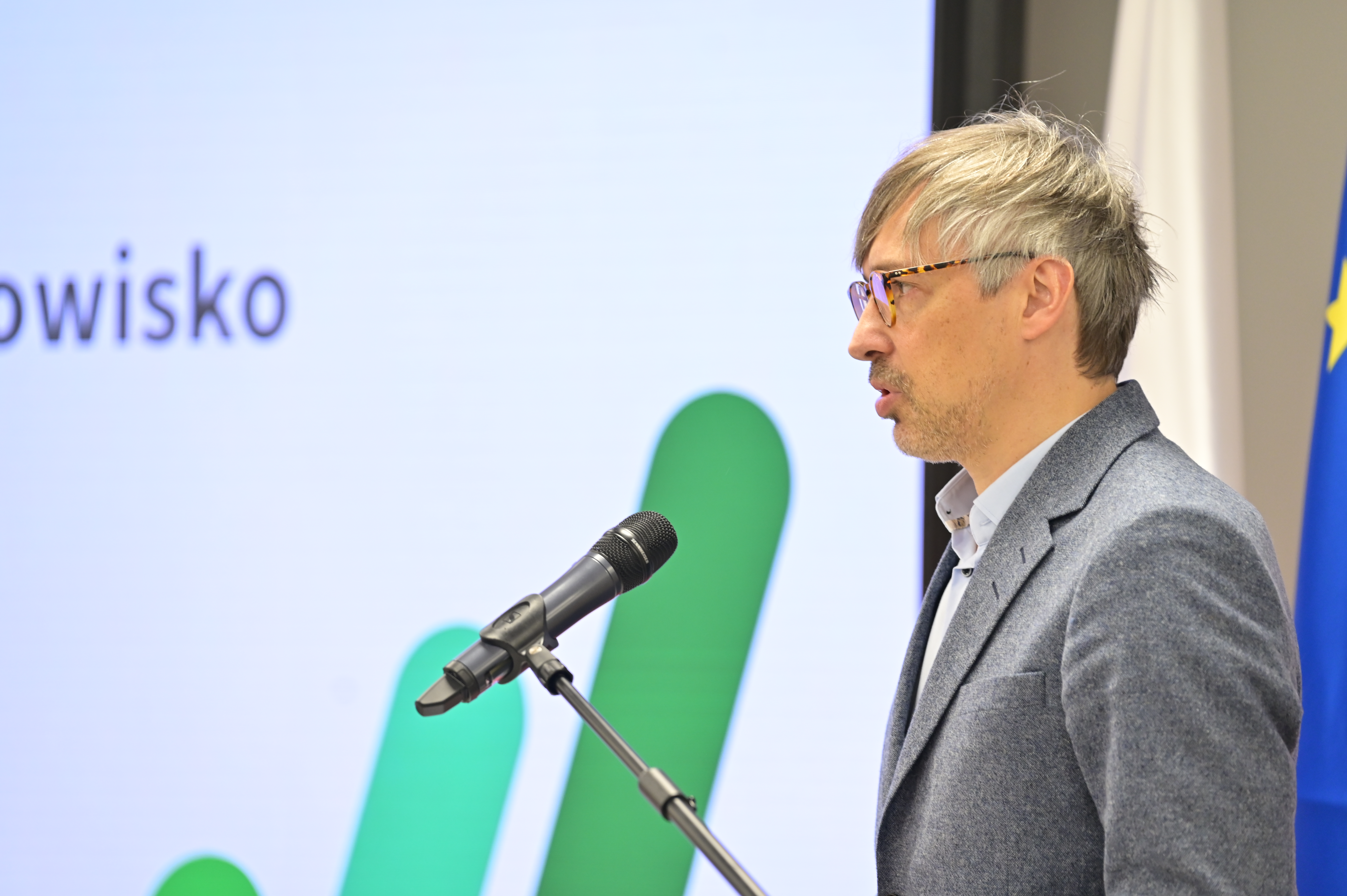 Konrad Wojnarowski podsekretarz stanu w Ministerstwie Energii podkreślił synergię działań i wspólne cele MKiŚ, ME i NFOŚiGW w kontekście transformacji energetycznej.