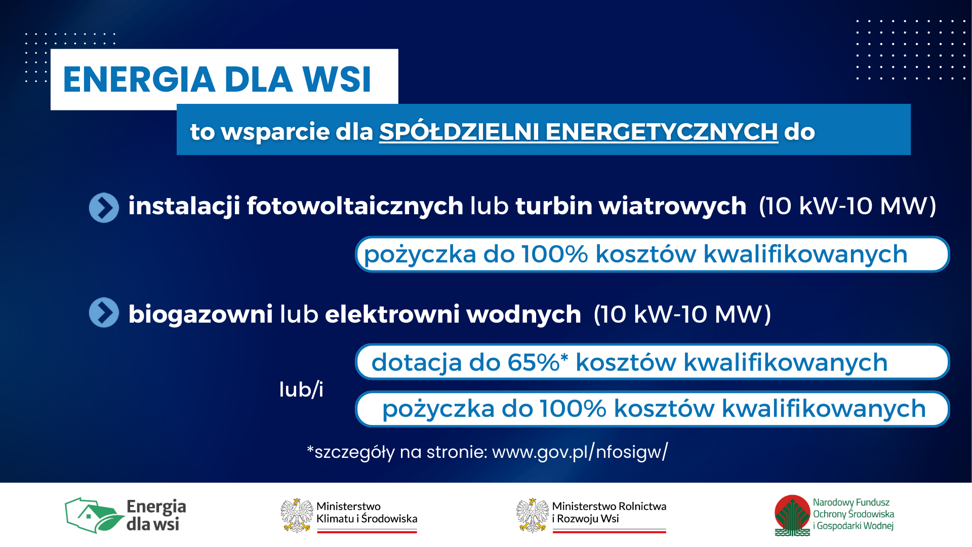 Szczegółowe informacje o programie „Energia dla wsi” są dostępne pod adresem: Strona programu "Energia dla wsi"