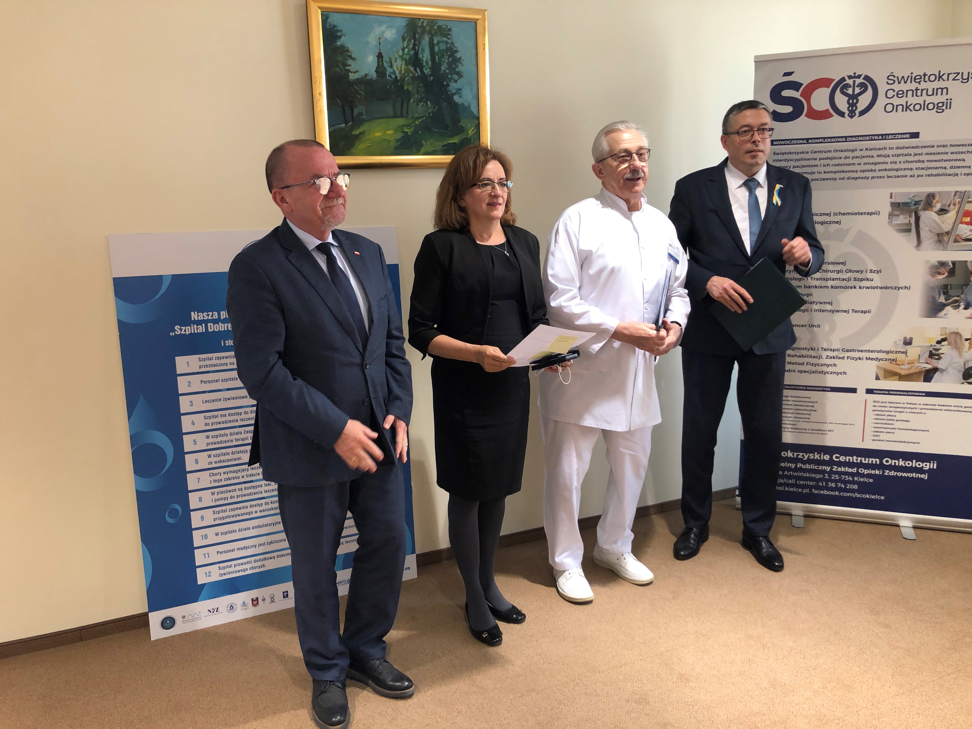 Umowę w sprawie przekazania środków podpisali w siedzibie beneficjenta 4 maja br. wiceprezes NFOŚiGW Artur Michalski oraz Dyrektor ŚCO w Kielcach dr hab. n. med. Stanisław Góźdź. W uroczystości wziął udział wicemarszałek Województwa Świętokrzyskiego Marek Bogusławski.
