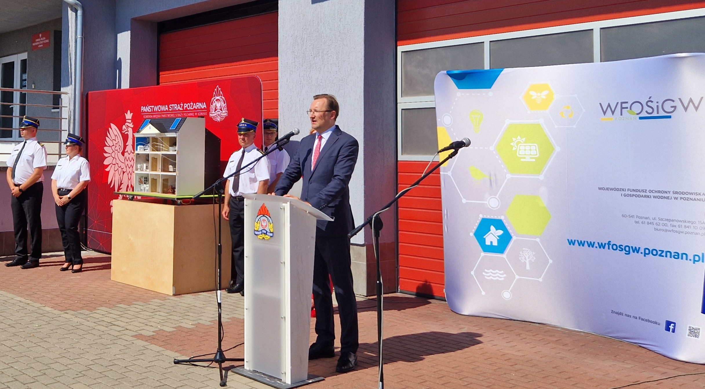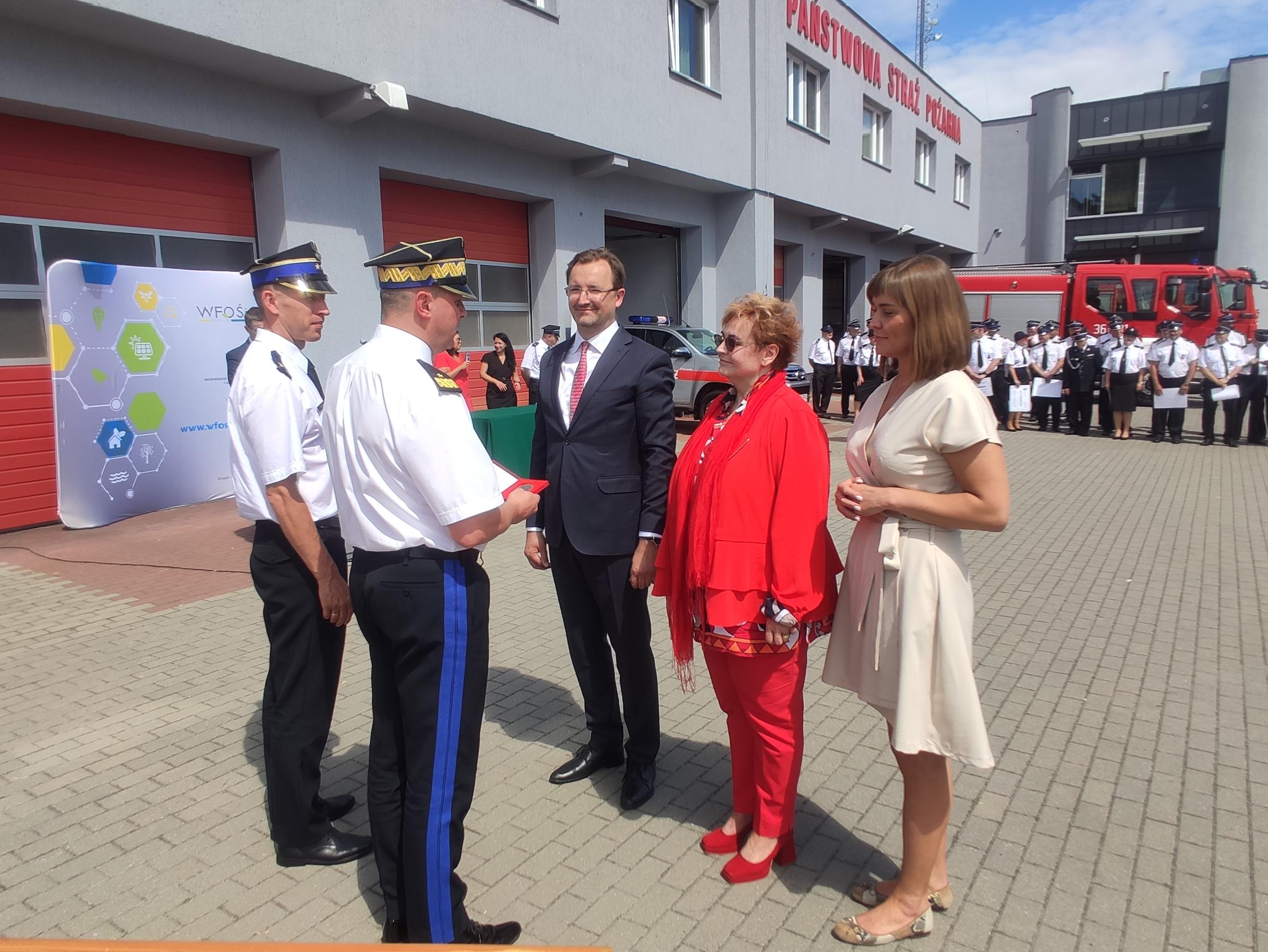 Po wręczeniu promes pani Jolanta Ratajczak – prezes Wojewódzkiego Funduszu Ochrony Środowiska i Gospodarki Wodnej w Poznaniu, pani Aleksandra Durkowska – wiceprezes Wojewódzkiego Funduszu Ochrony Środowiska i Gospodarki Wodnej w Poznaniu oraz pan Sławomir Mazurek - zastępca prezesa Zarządu Narodowego Funduszu Ochrony Środowiska i Gospodarki Wodnej odebrali okolicznościowe medale Komendy Wojewódzkiej PSP w Poznaniu. Wyróżnienia wręczyli wielkopolski komendant wojewódzki PSP nadbryg. Dariusz Matczak oraz zastępca bryg. Tomasz Grelak.