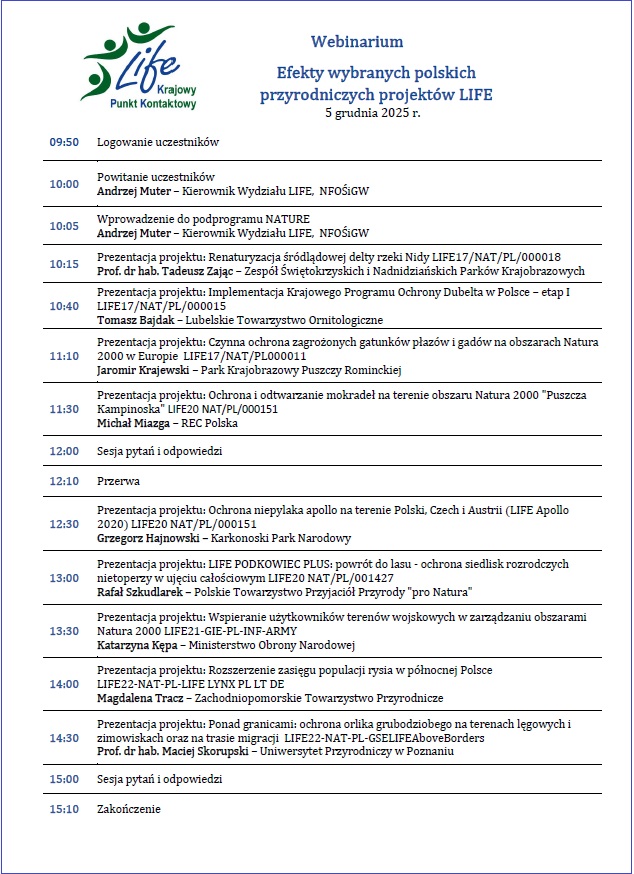 Webinar „Efekty wybranych polskich przyrodniczych projektów LIFE”, piątek 05 grudnia 2025 r.